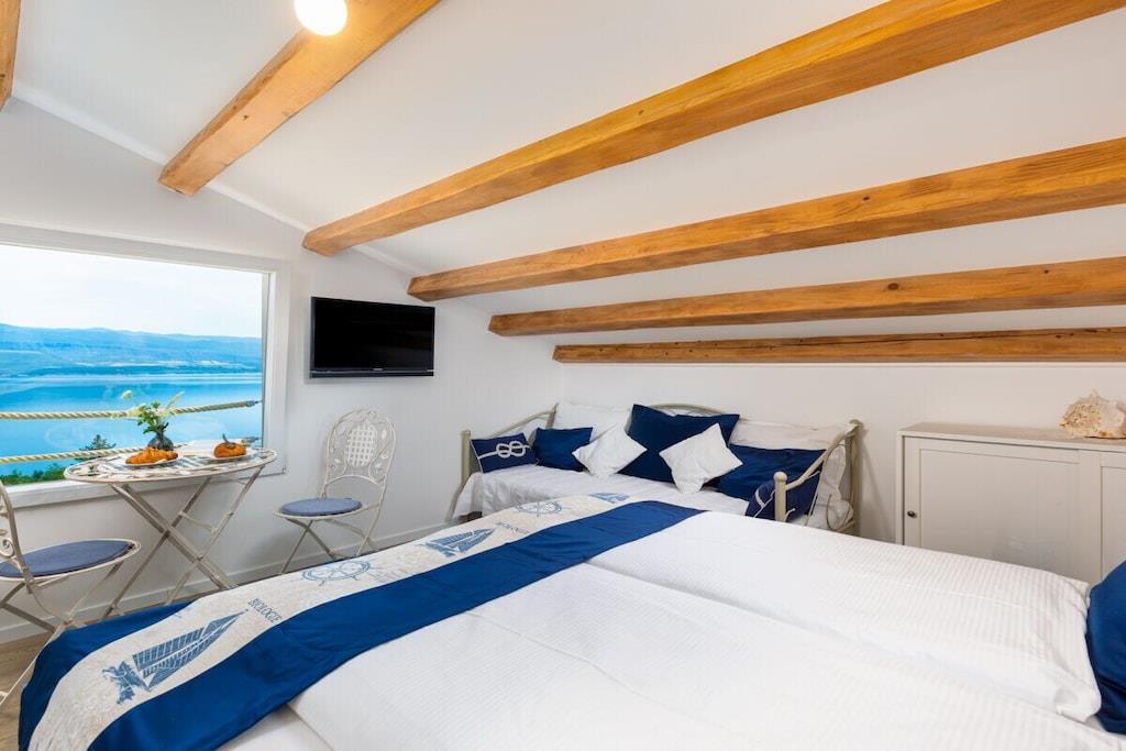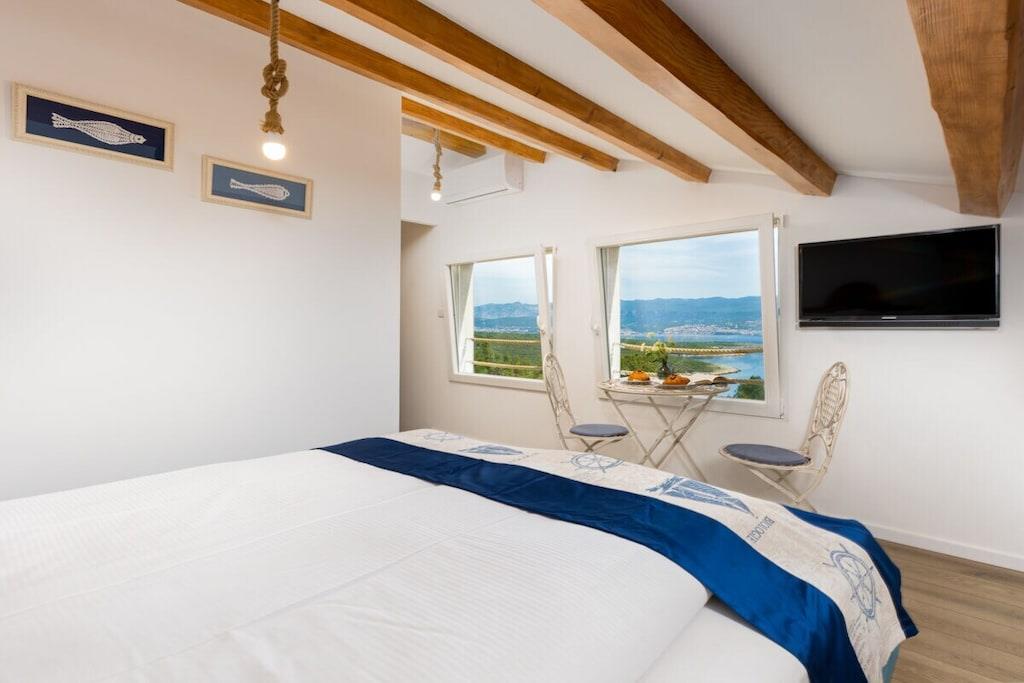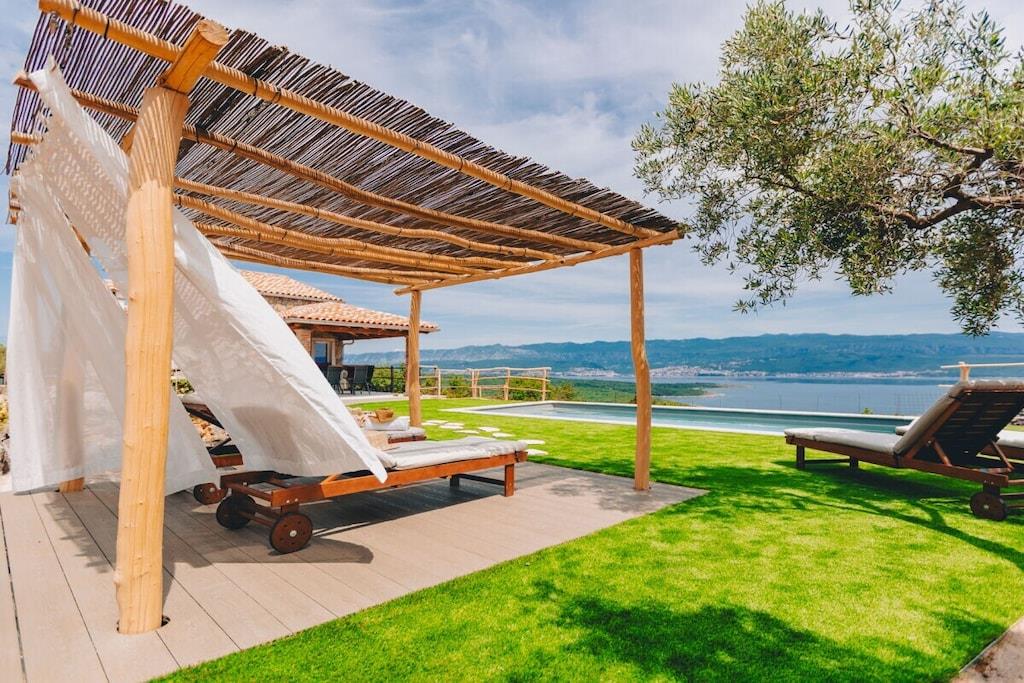 Die Villa Mare erstreckt sich über zwei Etagen und vereint Funktionalität mit Komfort. Im Erdgeschoss befindet sich ein Wohnzimmer mit Küche und Essbereich. Im Obergeschoss befindet sich ein Schlafzimmer für drei Personen mit einem Doppelbett und einem Einzelbett. Vom Schlafzimmer aus gelangt man in ein Badezimmer mit Dusche. Zusätzlich steht den Gästen eine separate Toilette im Garten zur Verfügung. Vom großzügigen Außenbereich mit einer Fläche von 5.000 m² bietet sich ein atemberaubender Blick auf das Meer. Den Gästen stehen ein Pool, Tischtennis, Fußballtore und ein Volleyballfeld zur Verfügung.