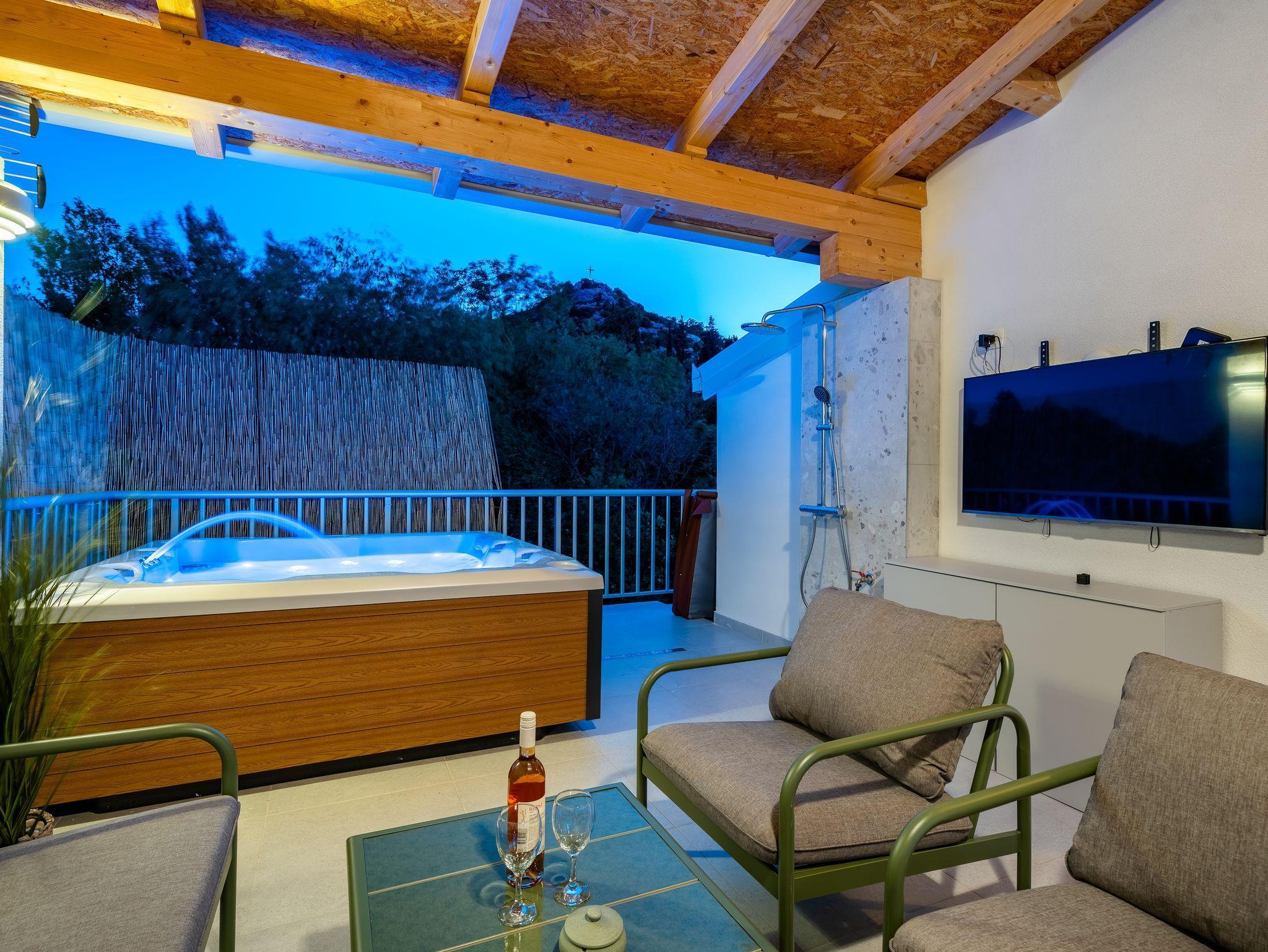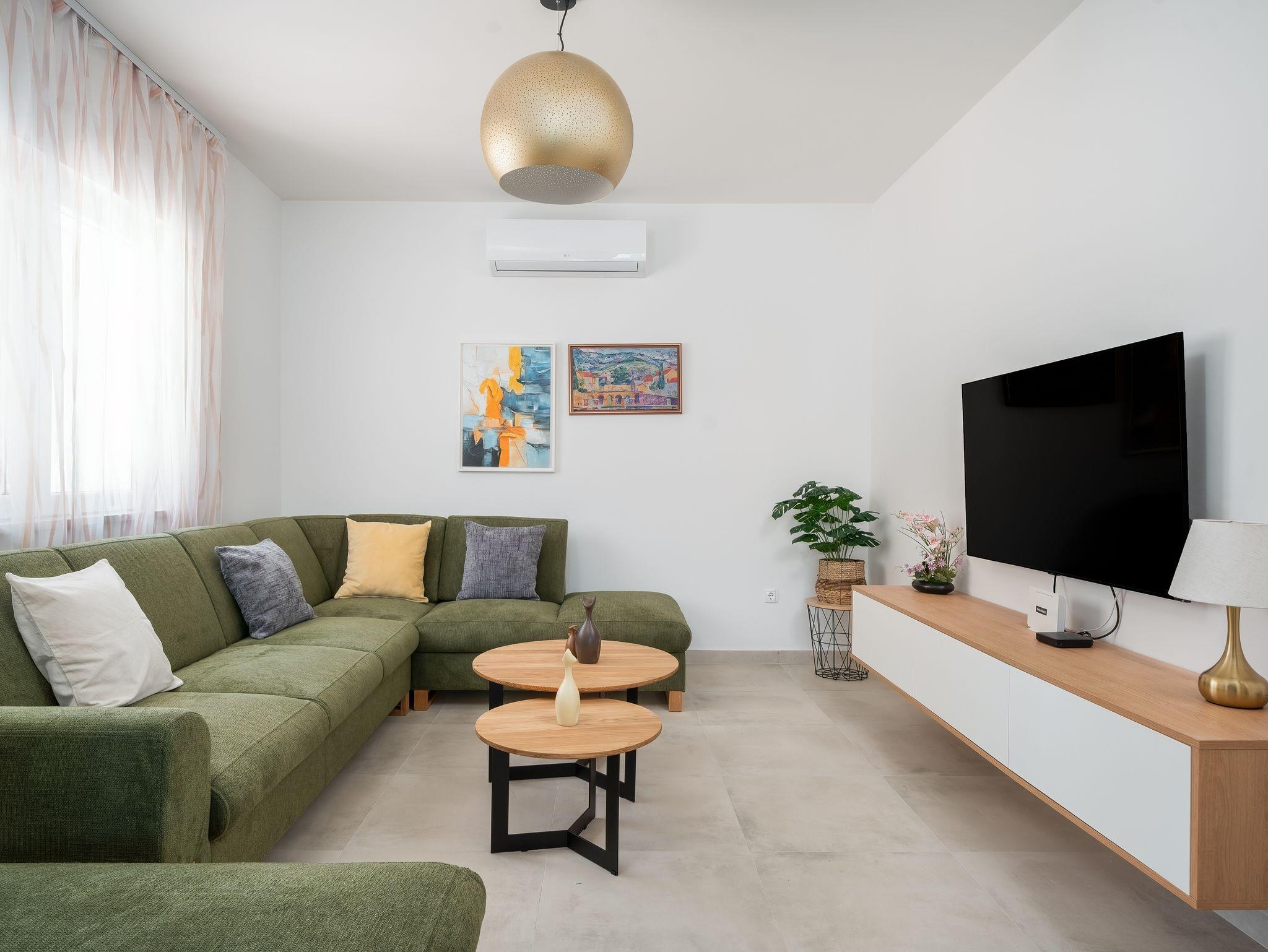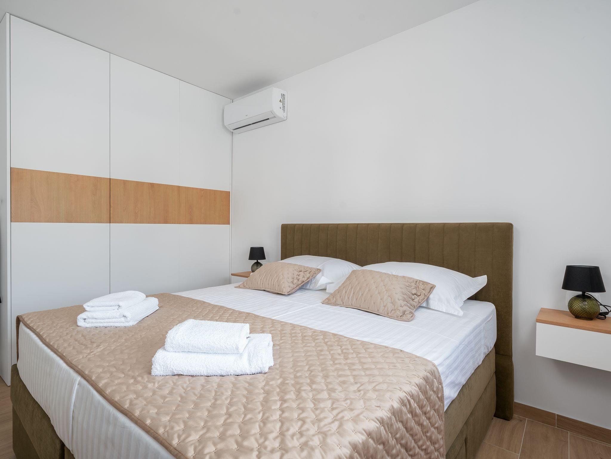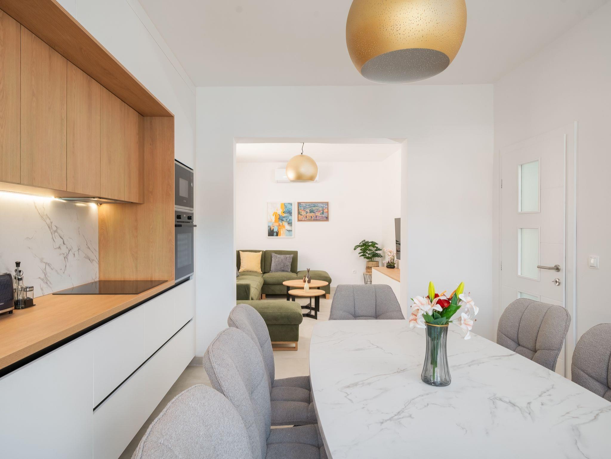 Haus bietet Platz für 8 Gäste. Die Betten sind in Schlafzimmern, die es 4 gibt, innerhalb einer Gesamtfläche von 150m2, angeordnet. Die Gäste haben eine eigene Terrasse zur Verfügung, auf der sie in warmen Sommernächten genießen können. Das Haus bietet Meerblick. Für vollen Genuss und Entspannung gibt es einen privaten Grill für Gäste dieser Unterkunft. IM PREIS INBEGRIFFEN: Kurtaxe, Endreinigung, Klimatisierung, Parkplatz, Internet, Kinderbett, Bügeleisen, Bügelbrett, Föhn. Die Verfügbarkeit zusätzlicher Dienstleistungen in Ihrem reservierten Termin und die Preise derselben (falls nicht aufgeführt) müssen im Voraus überprüft werden. Zusätzliche Dienstleistungen die in der Zahlungsaufforderung nicht aufgeführt sind werden direkt beim Vermieter bezahlt, angenommen der Gast nutzt auch diese. Ermäßigung auf den Grundpreis: Gratistag 14=13 (bei einem Aufenthalt von 14 Tagen oder mehr erhalten Sie einen Gratistag für den Aufenthalt bis 31.12.26).