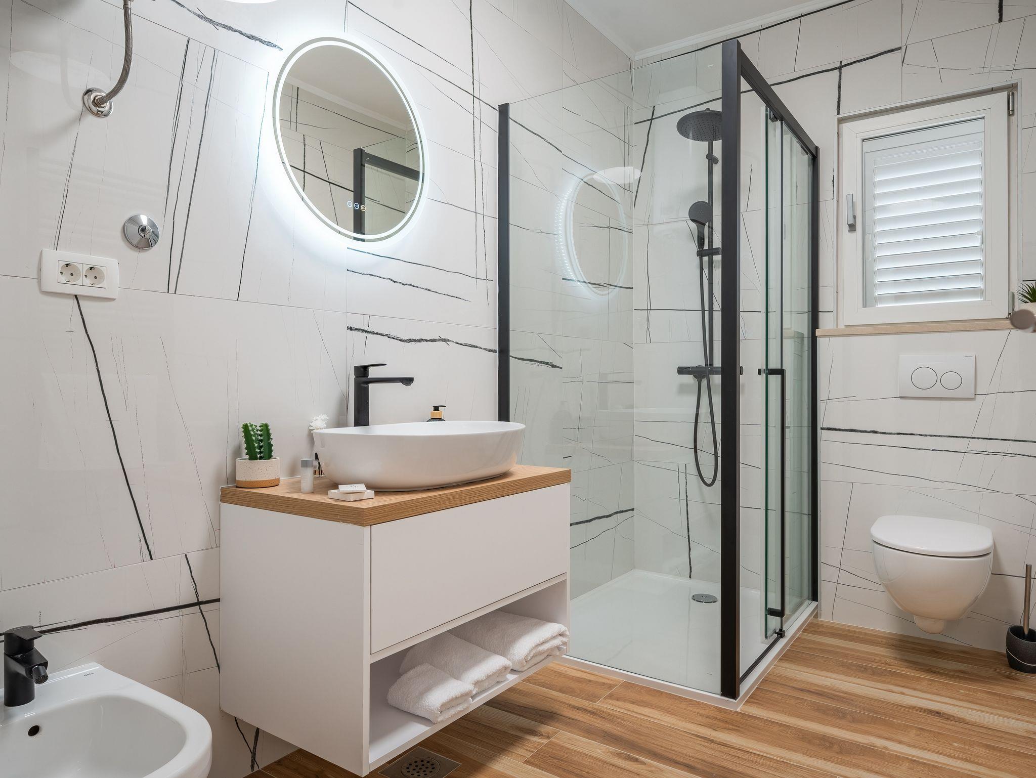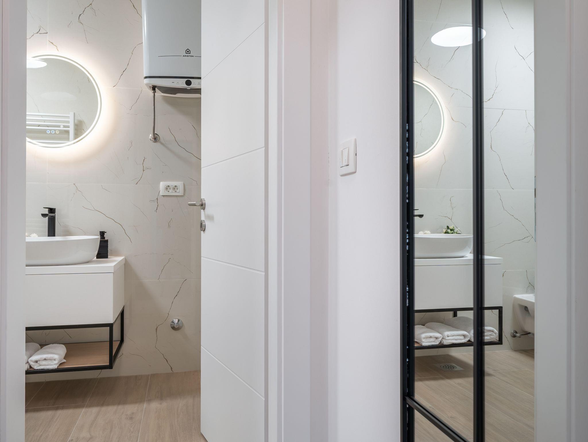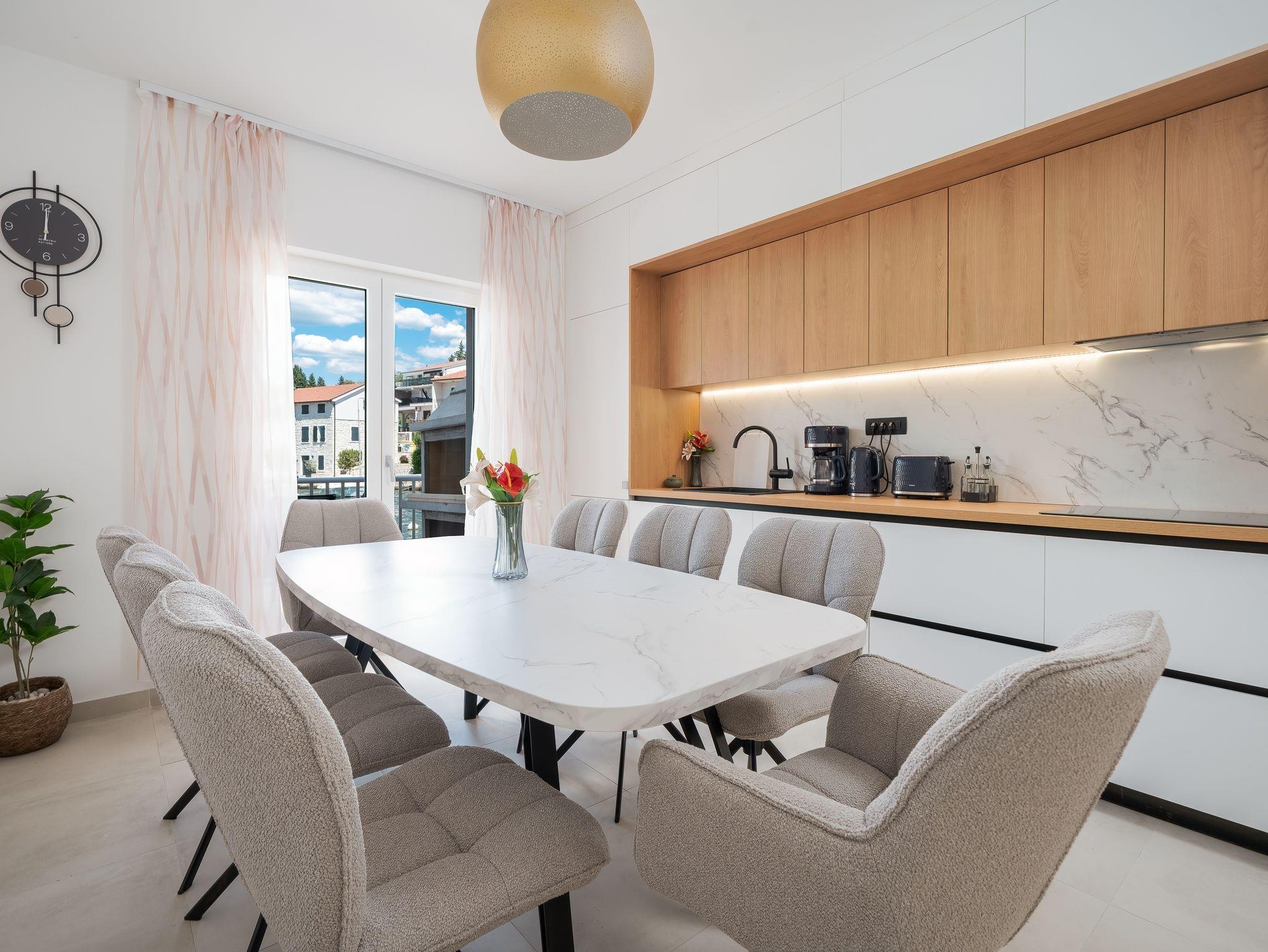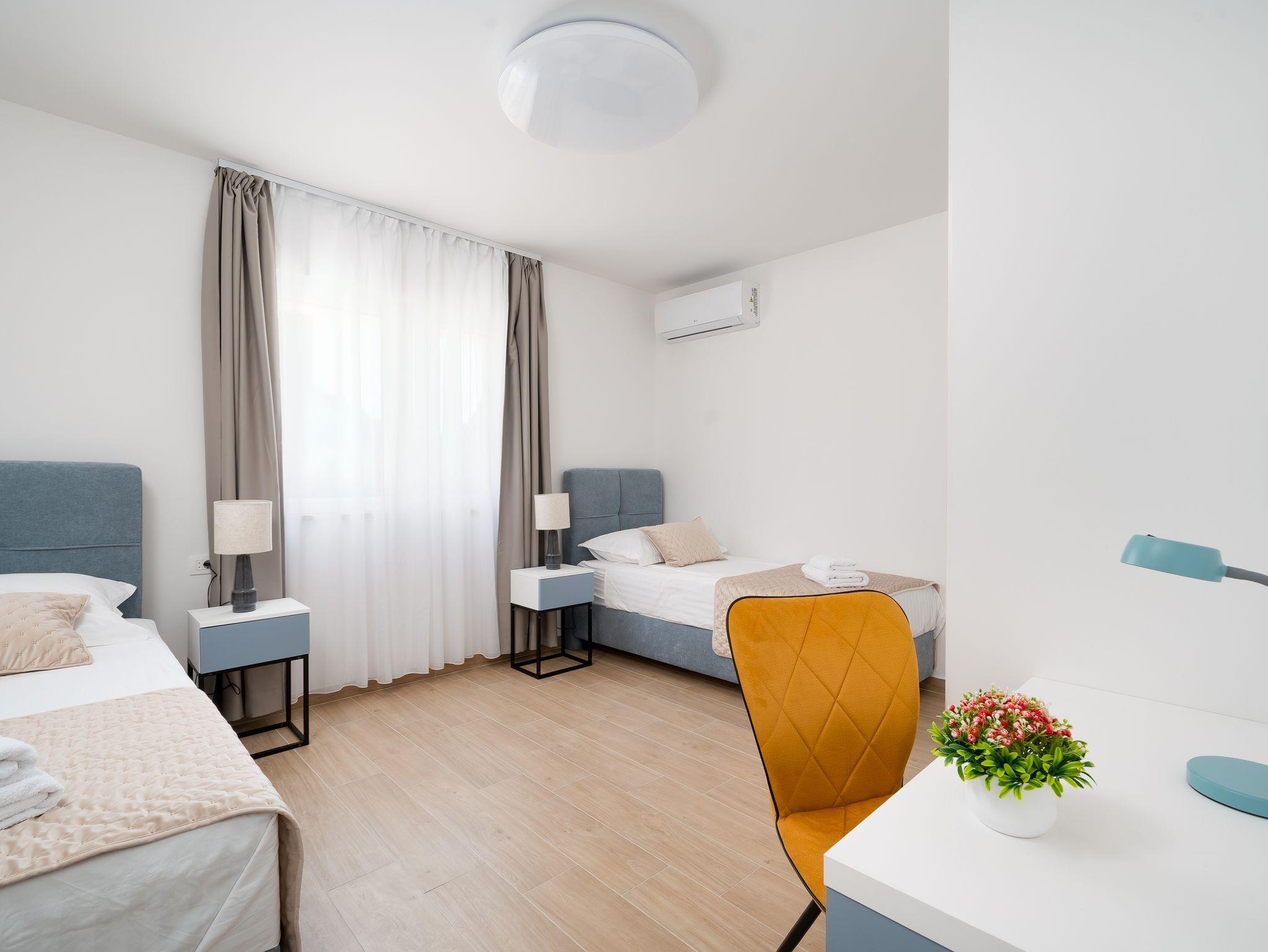 Haus bietet Platz für 8 Gäste. Die Betten sind in Schlafzimmern, die es 4 gibt, innerhalb einer Gesamtfläche von 150m2, angeordnet. Die Gäste haben eine eigene Terrasse zur Verfügung, auf der sie in warmen Sommernächten genießen können. Das Haus bietet Meerblick. Für vollen Genuss und Entspannung gibt es einen privaten Grill für Gäste dieser Unterkunft. IM PREIS INBEGRIFFEN: Kurtaxe, Endreinigung, Klimatisierung, Parkplatz, Internet, Kinderbett, Bügeleisen, Bügelbrett, Föhn. Die Verfügbarkeit zusätzlicher Dienstleistungen in Ihrem reservierten Termin und die Preise derselben (falls nicht aufgeführt) müssen im Voraus überprüft werden. Zusätzliche Dienstleistungen die in der Zahlungsaufforderung nicht aufgeführt sind werden direkt beim Vermieter bezahlt, angenommen der Gast nutzt auch diese. Ermäßigung auf den Grundpreis: Gratistag 14=13 (bei einem Aufenthalt von 14 Tagen oder mehr erhalten Sie einen Gratistag für den Aufenthalt bis 31.12.26).