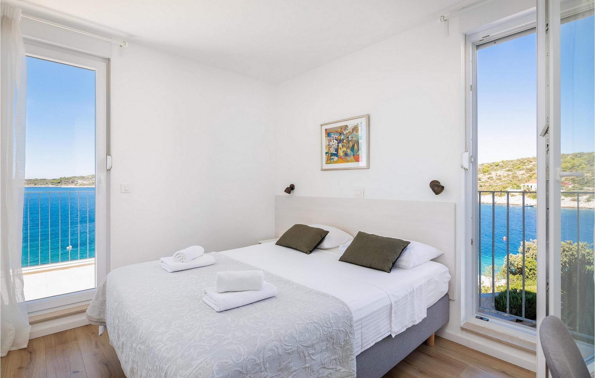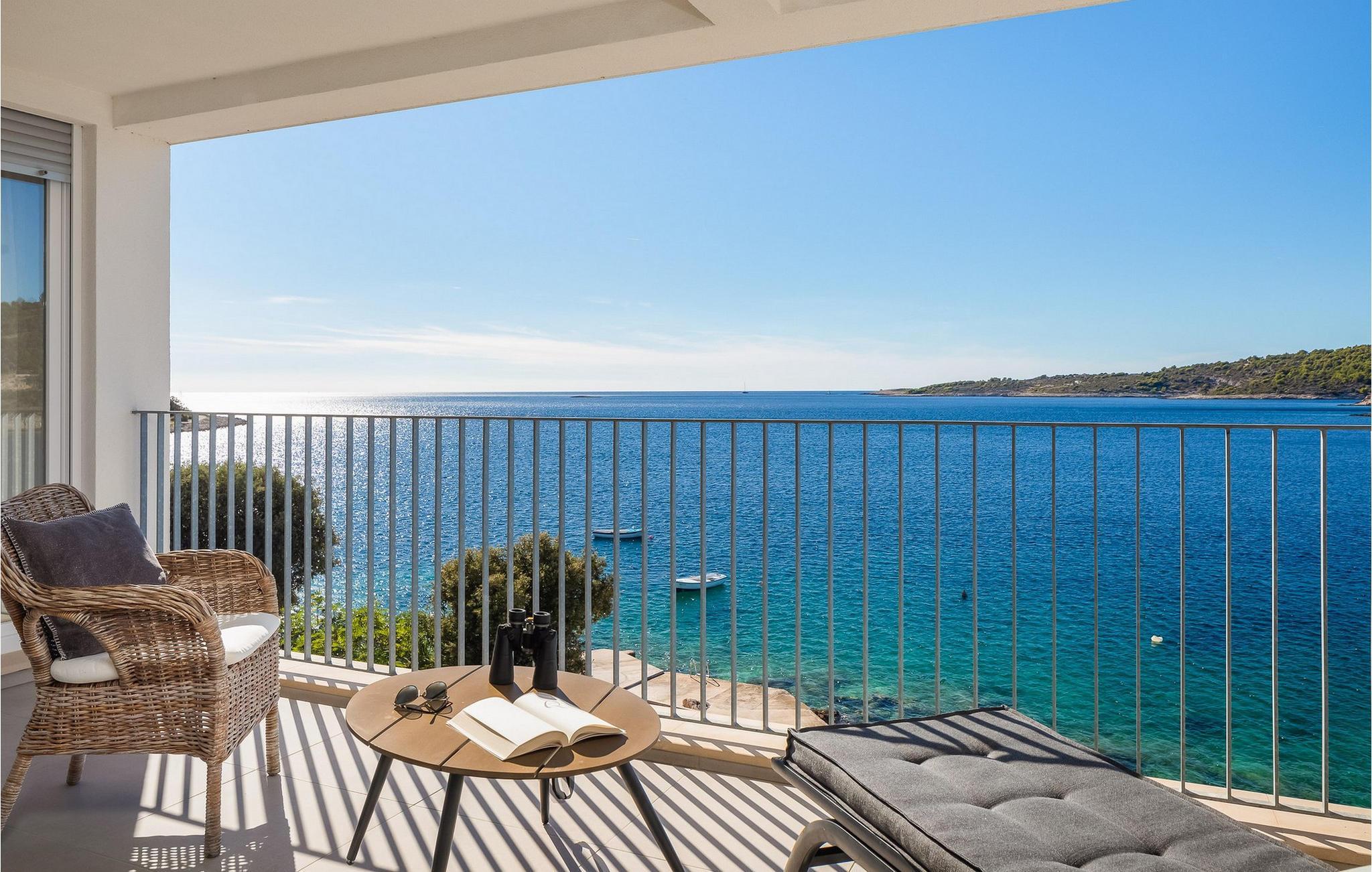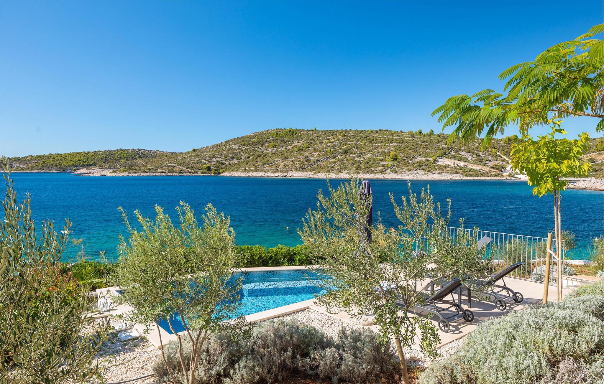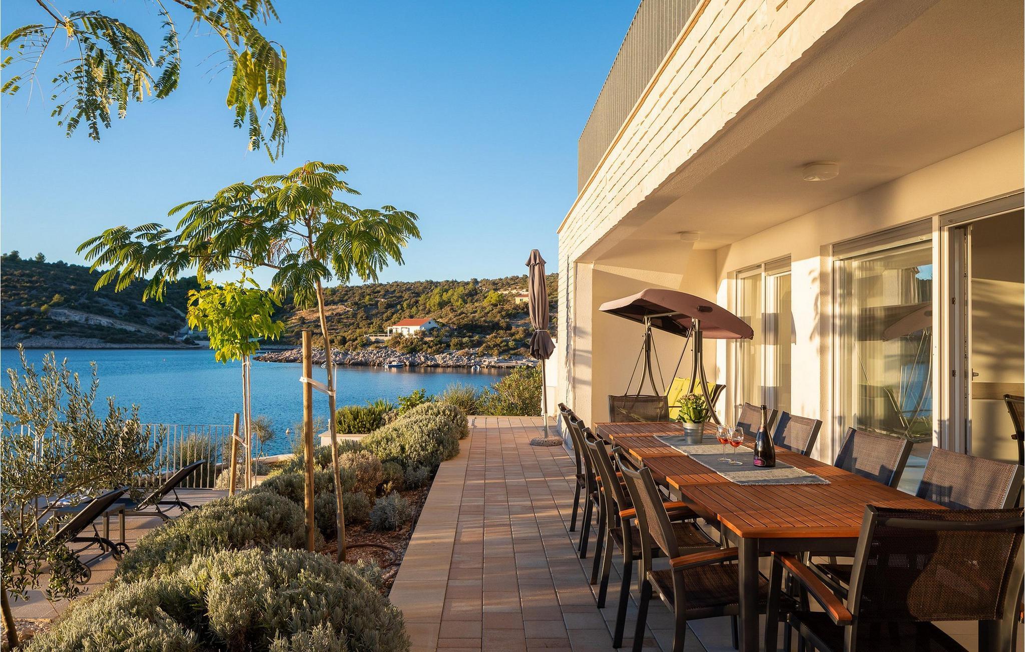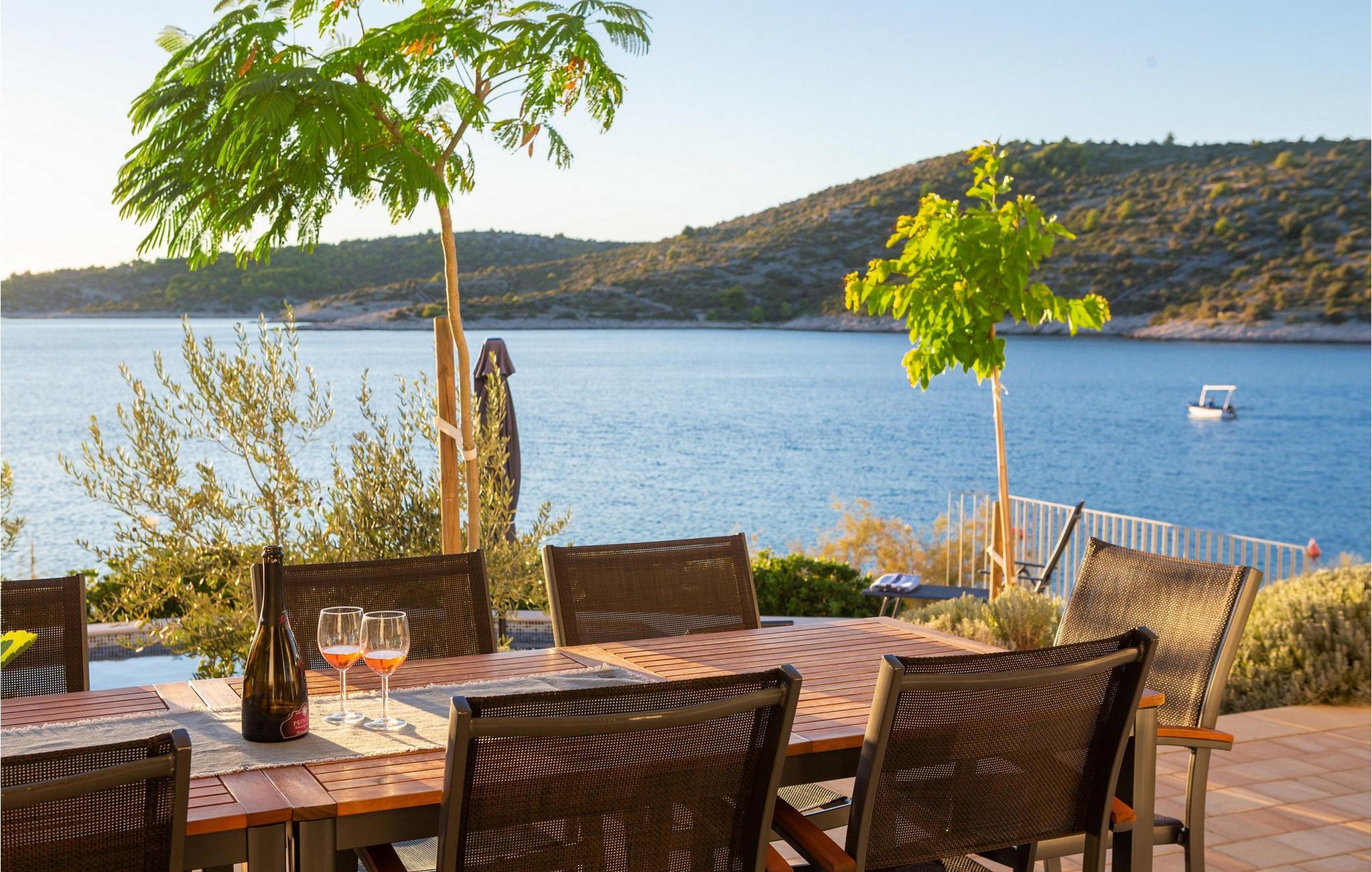 Die moderne Villa Karolina in Kanica, einem idyllischen Fischer- und Touristendorf, lädt Sie mit stilvoller Eleganz und klarem Design zu einem unvergesslichen Aufenthalt ein. Lichtdurchflutete Räume, hochwertig eingerichtete Wohnbereiche und mehrere Terrassen bieten Ihnen eine komfortable Wohlfühlatmosphäre. Ob gemeinsame Mahlzeiten in der voll ausgestatteten Küche oder entspannte Stunden auf den Sonnenliegen am Pool – hier erleben Sie pure Erholung. Erleben Sie den traumhaften Panoramablick auf das glitzernde Meer direkt von Ihrer großzügigen Terrasse aus oder gehen die Stufen hinab zur Badeplattform, wo Sie auch ein kleineres Boot anlegen können.
