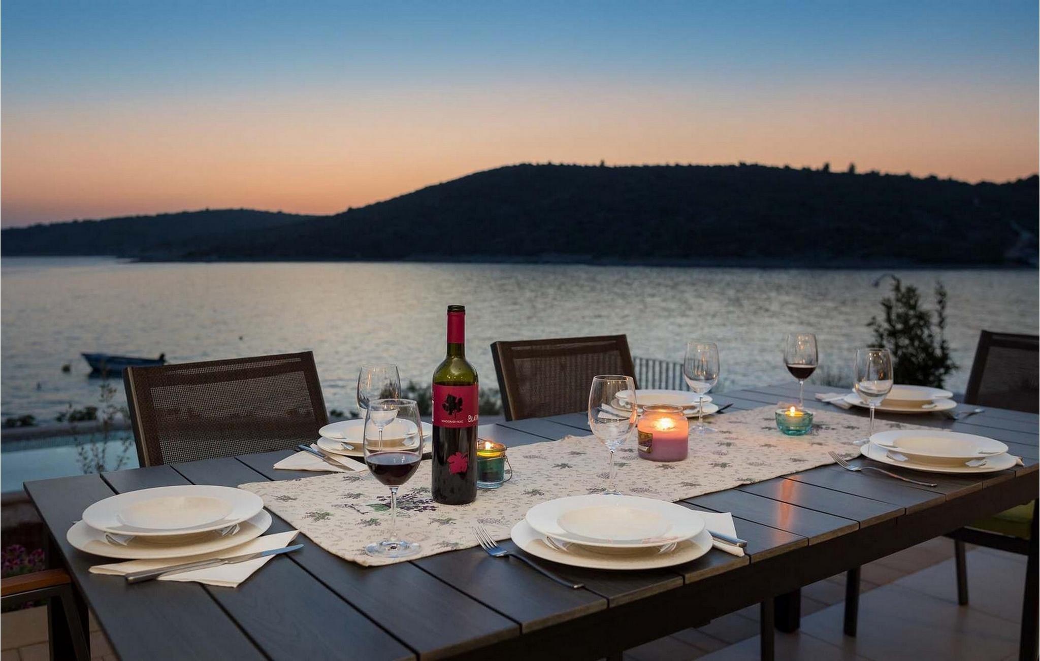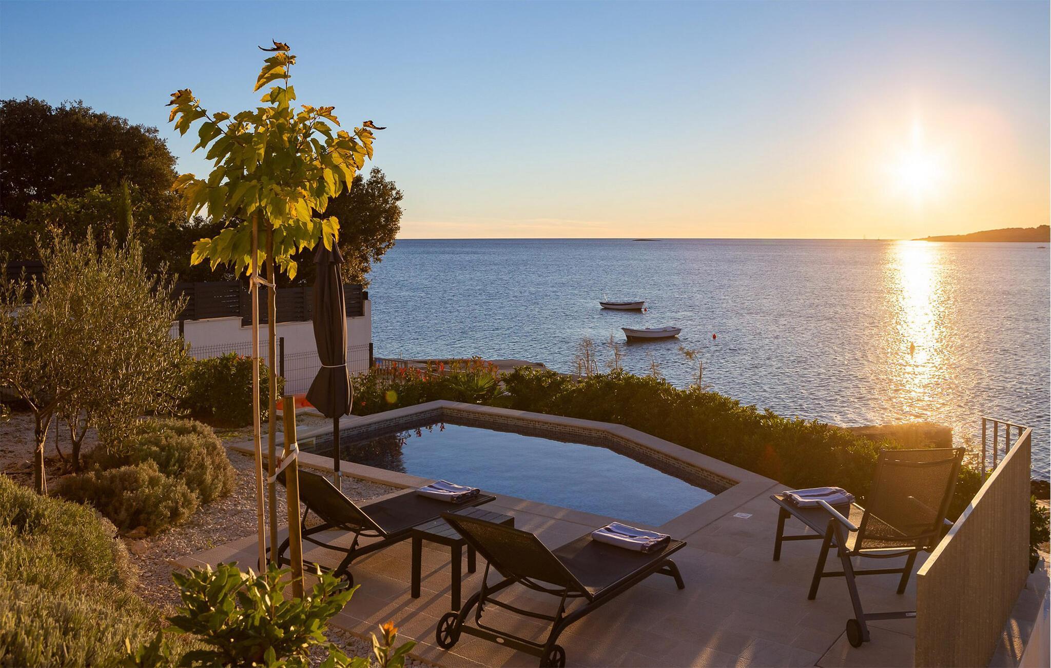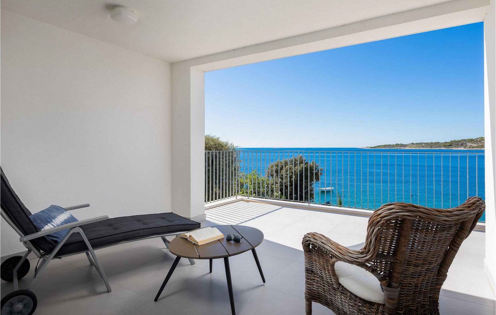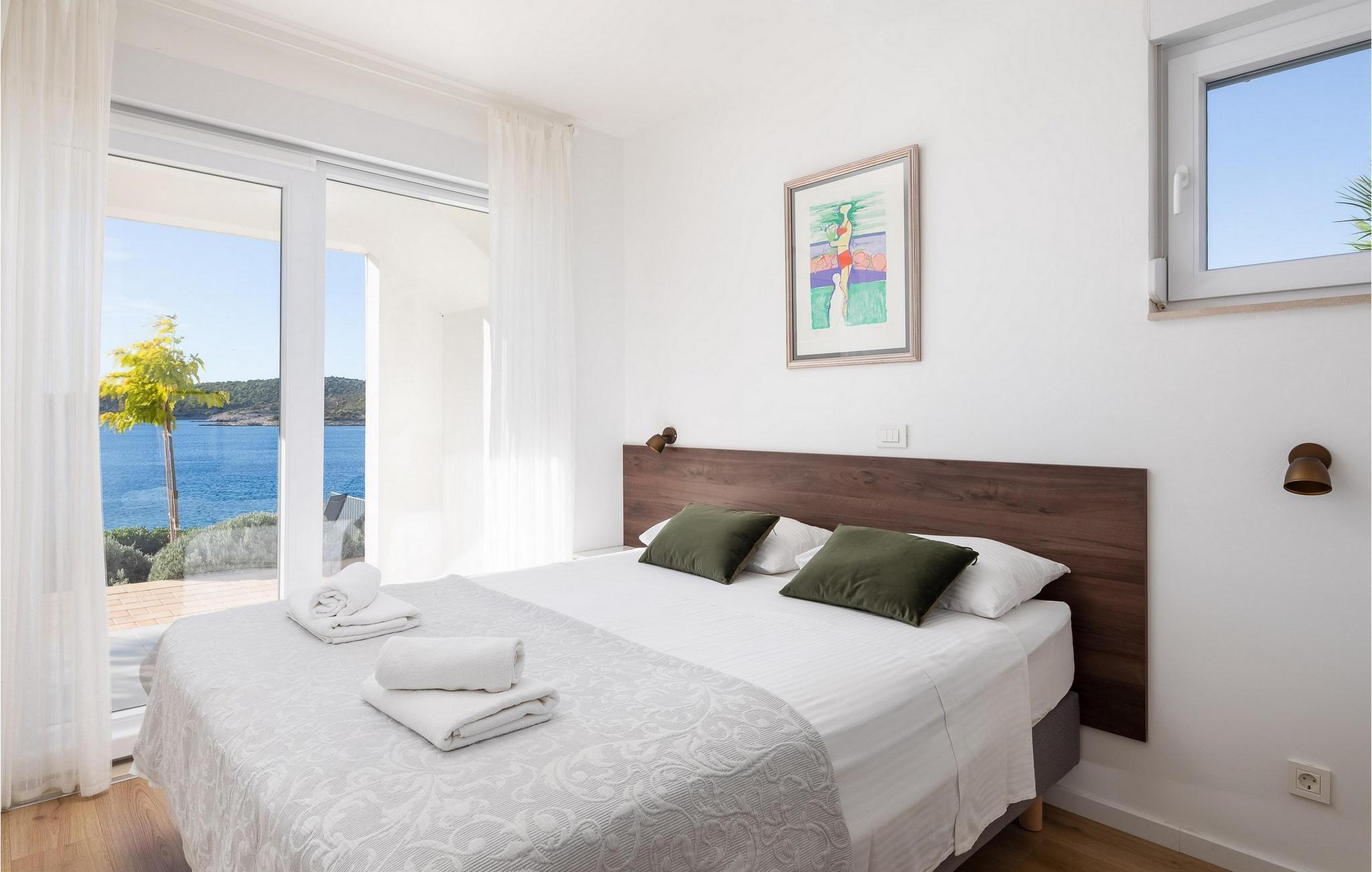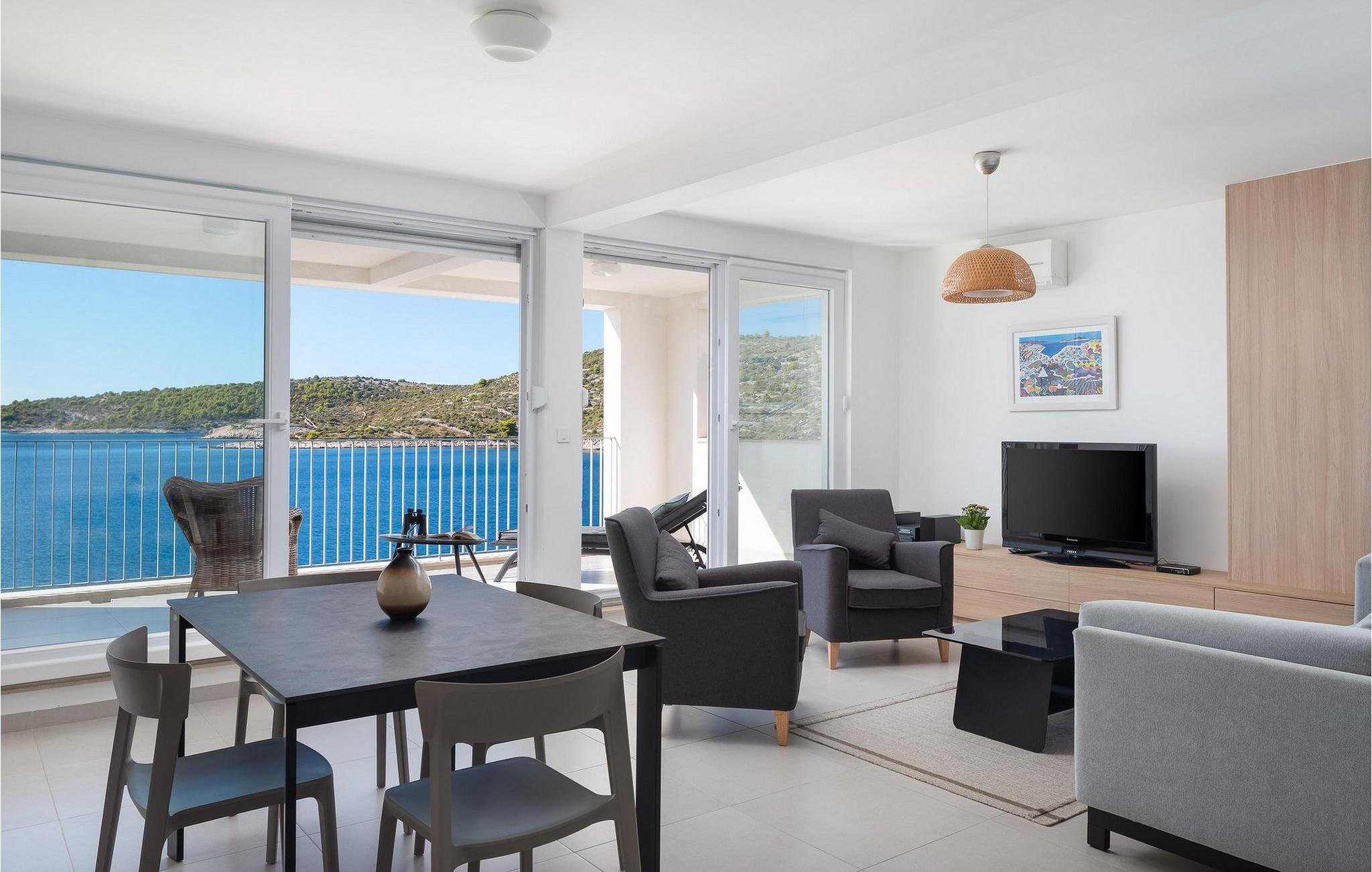 Die moderne Villa Karolina in Kanica, einem idyllischen Fischer- und Touristendorf, lädt Sie mit stilvoller Eleganz und klarem Design zu einem unvergesslichen Aufenthalt ein. Lichtdurchflutete Räume, hochwertig eingerichtete Wohnbereiche und mehrere Terrassen bieten Ihnen eine komfortable Wohlfühlatmosphäre. Ob gemeinsame Mahlzeiten in der voll ausgestatteten Küche oder entspannte Stunden auf den Sonnenliegen am Pool – hier erleben Sie pure Erholung. Erleben Sie den traumhaften Panoramablick auf das glitzernde Meer direkt von Ihrer großzügigen Terrasse aus oder gehen die Stufen hinab zur Badeplattform, wo Sie auch ein kleineres Boot anlegen können.