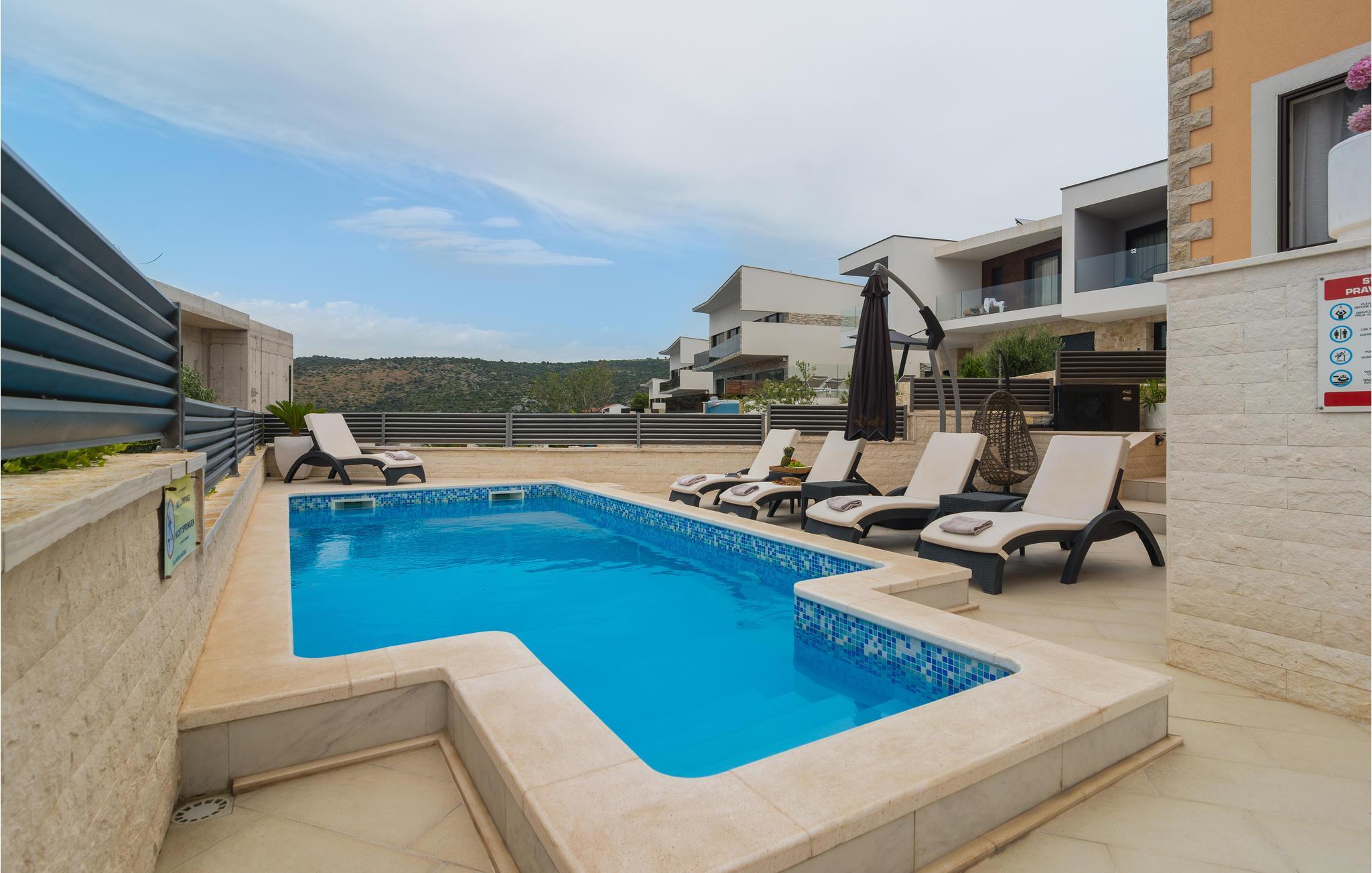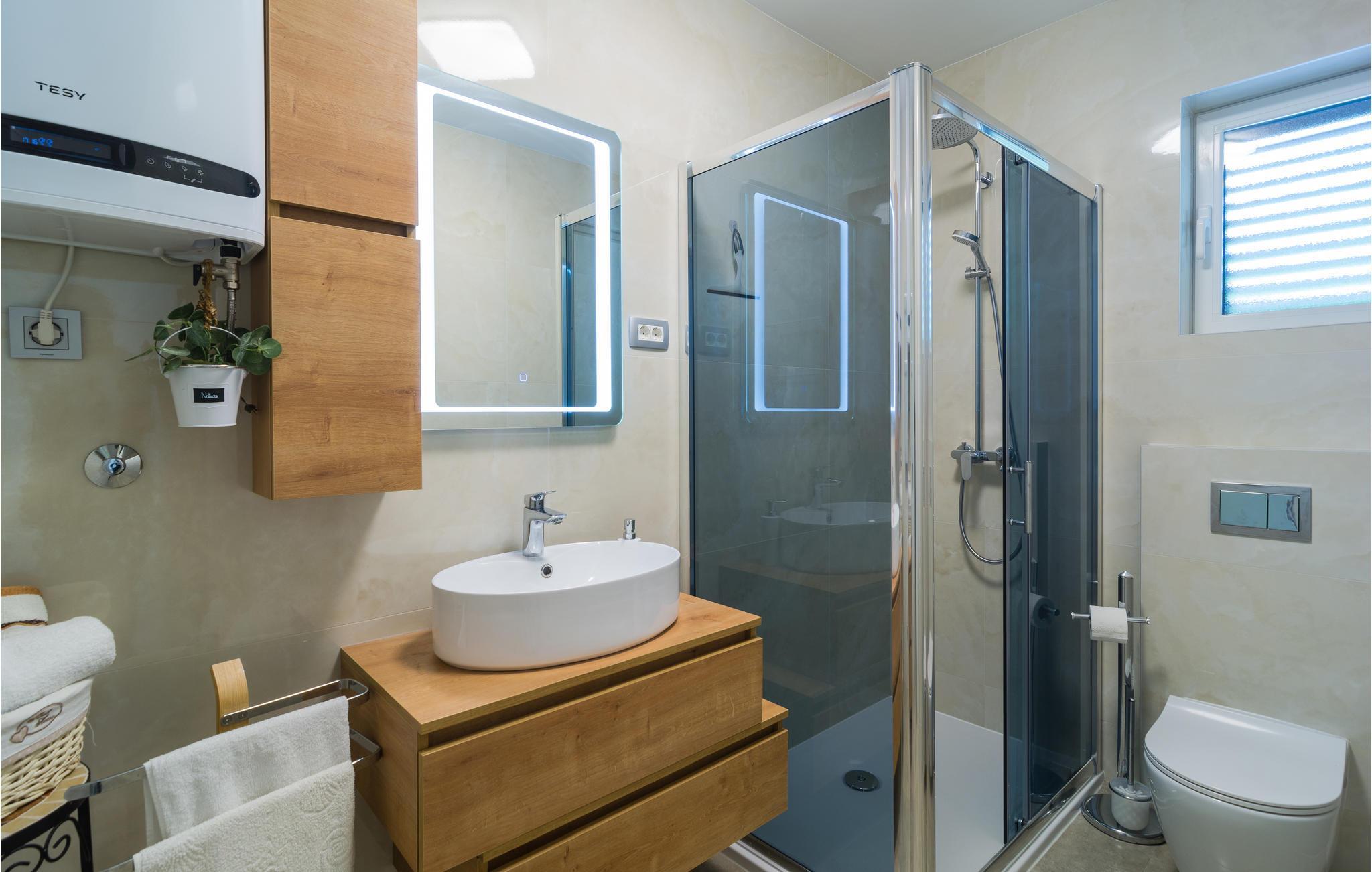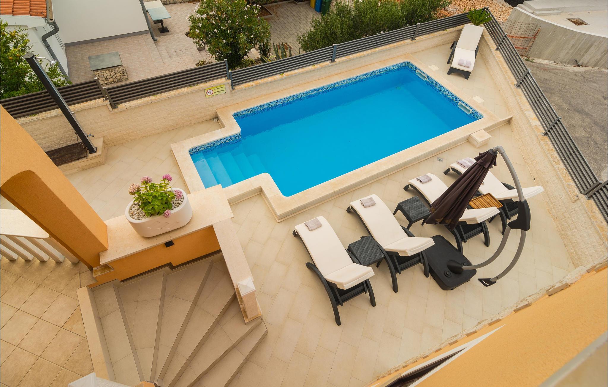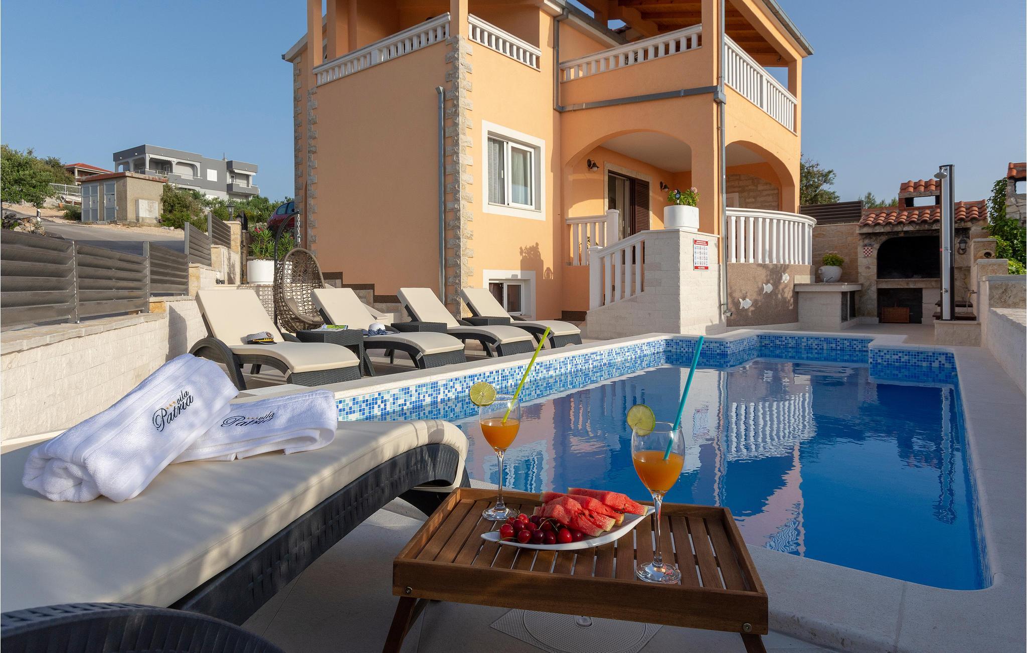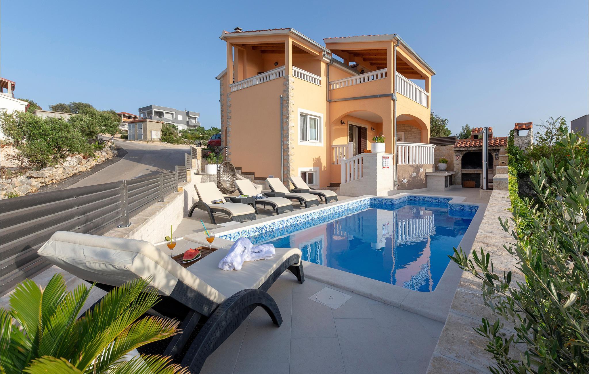 Willkommen in Razanj und diesem schönen Ferienhaus, das Ihnen auf zwei Etagen eine wunderbare Atmosphäre zum Wohnen verspricht. Freuen Sie sich im Inneren auf Komfort, liebevolles Design und gemütliche Ecken zum Entspannen. Die moderne und helle Einrichtung schafft einen tollen Rahmen und lässt die Unterkunft schnell zu Ihrem zweiten Zuhause werden. Neben den Koch- und Spielabenden können Sie in Ihrem privaten Fitnessraum Ihren täglichen Sportübungen nachgehen. Sie können frei wählen auf welchem Balkon Sie den herrlichen Ausblick auf das Meer und die abendlichen Sonnenuntergänge genießen wollen, zudem können Sie im Garten leckere Grillspeisen zubereiten und Ihren Kindern beim Baden im Pool zuschauen.