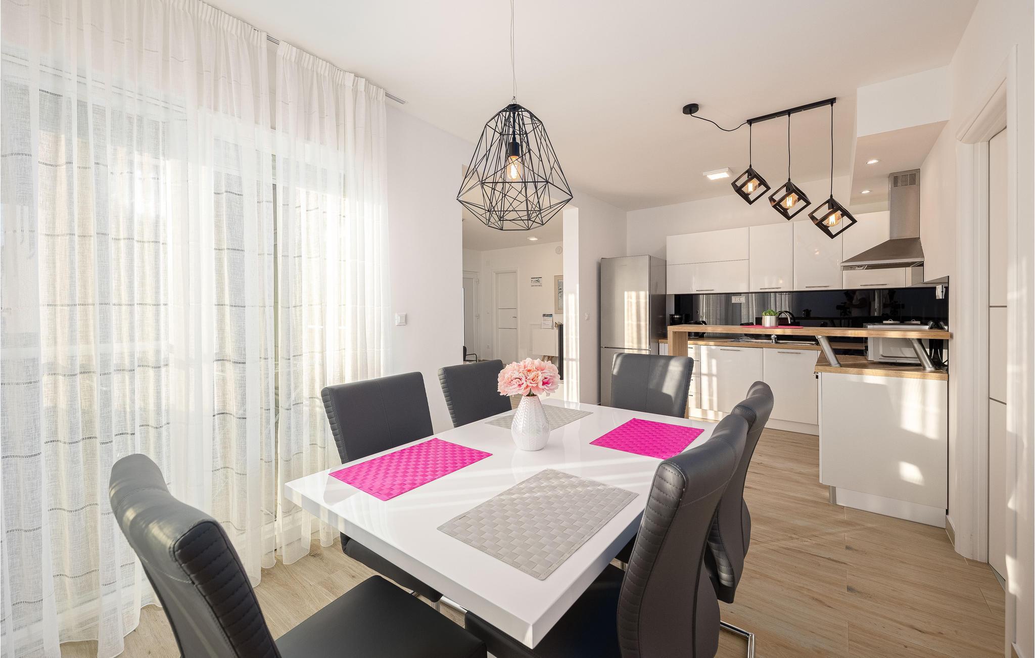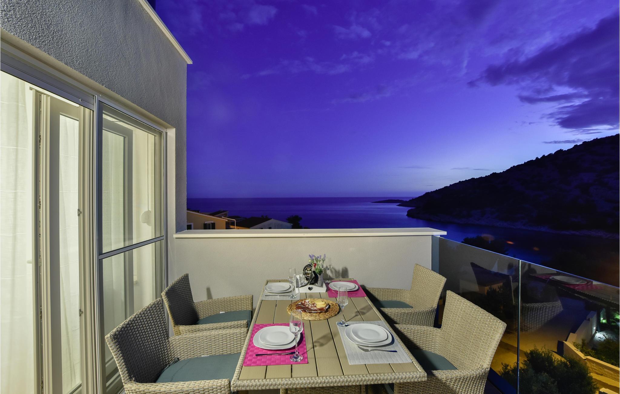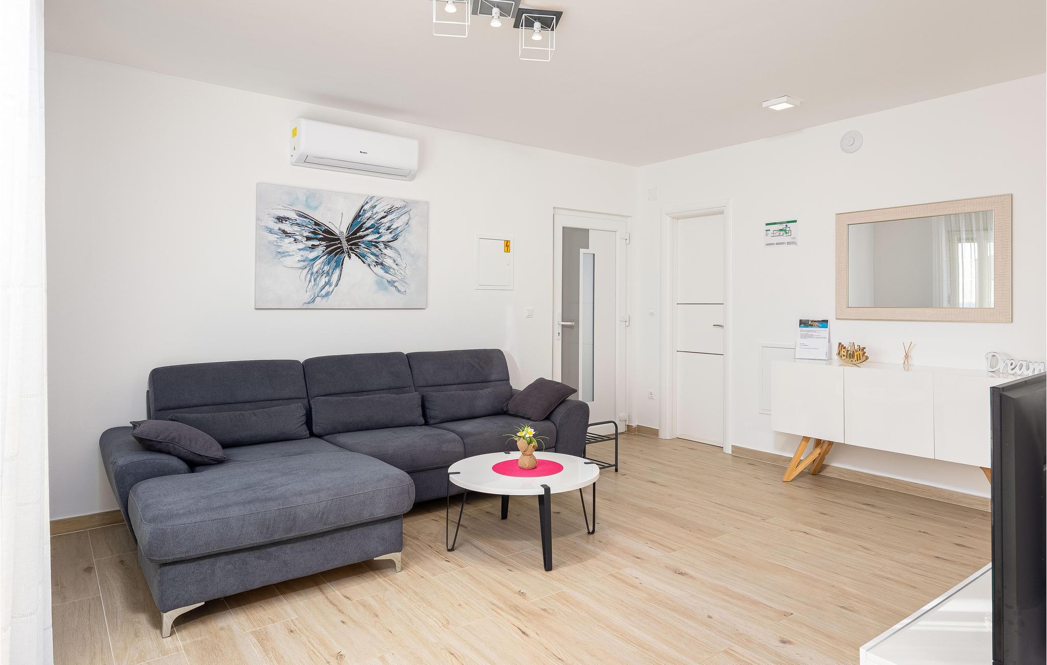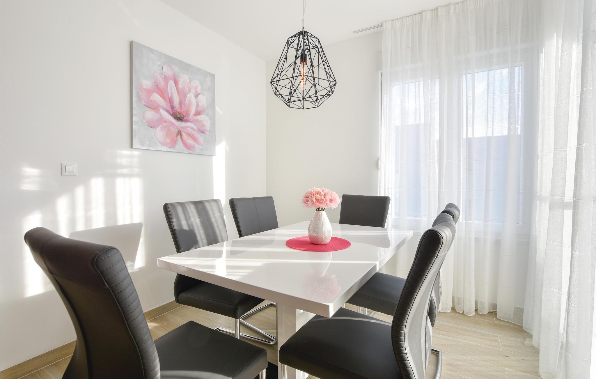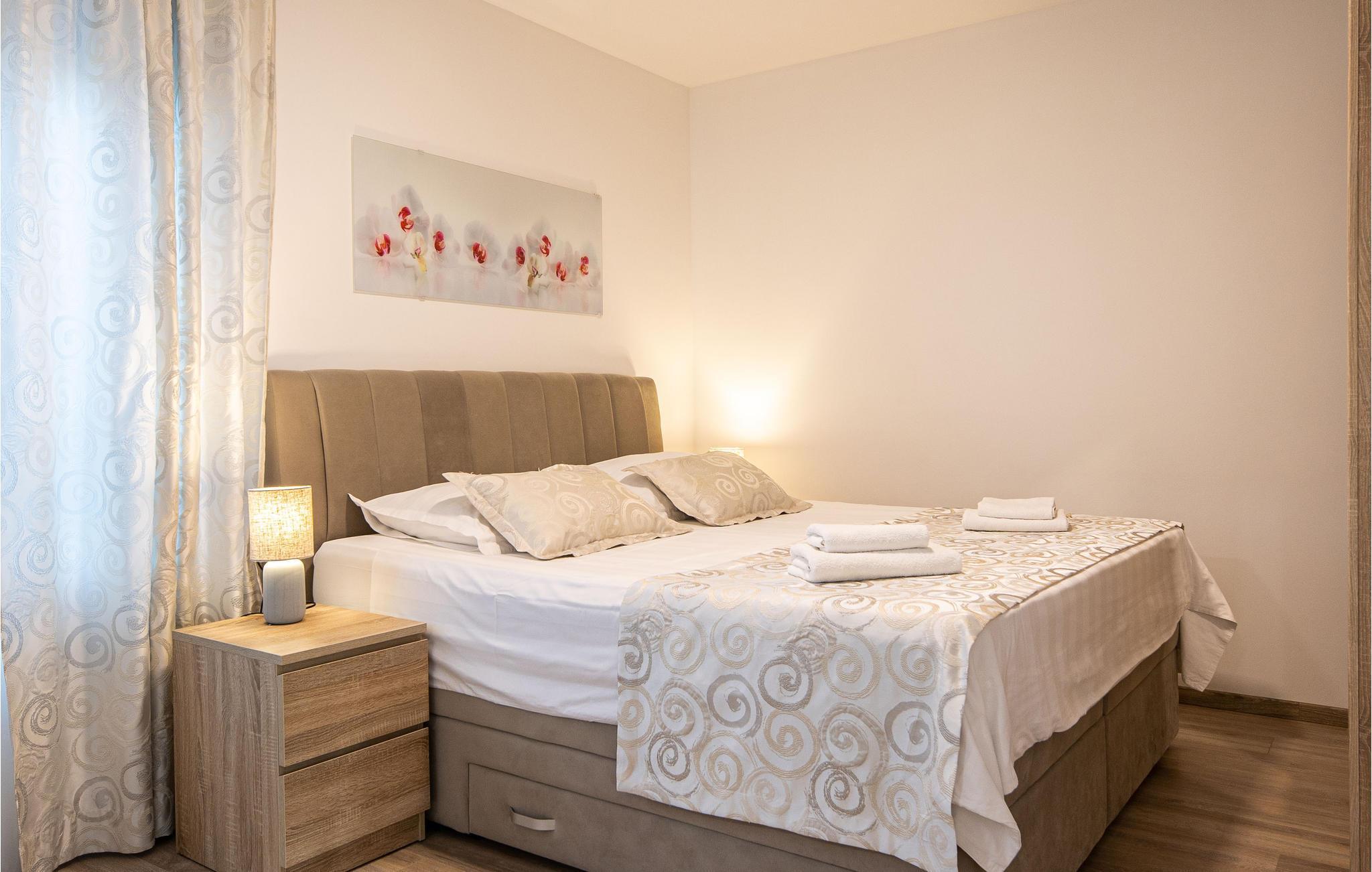 Nur ca. 60 m vom Meer entfernt befindet sich dieses luxuriöse Haus mit Pool. Das Haus verfügt über 5 Ferienwohnungen mit Meerblick. Jede Wohneinheit besteht aus 2 geräumigen Zimmern mit eigenem Bad und zusätzlicher Toilette, Küche, Esszimmer, Wohnzimmer und großem Balkon mit Meerblick. Im Souterrain befinden sich die Sauna und der Fitnessbereich sowie das Badezimmer und ein großes Esszimmer mit Küche. Das Haus liegt in einer ruhigen Bucht und wurde für den Familientourismus umgebaut. Nur 15 Autominuten entfernt befinden sich die unter dem Schutz der UNESCO stehenden Städte Trogir und Primosten. Wir empfehlen außerdem, die nahe gelegenen Nationalparks Krk und Kornati zu besuchen.
