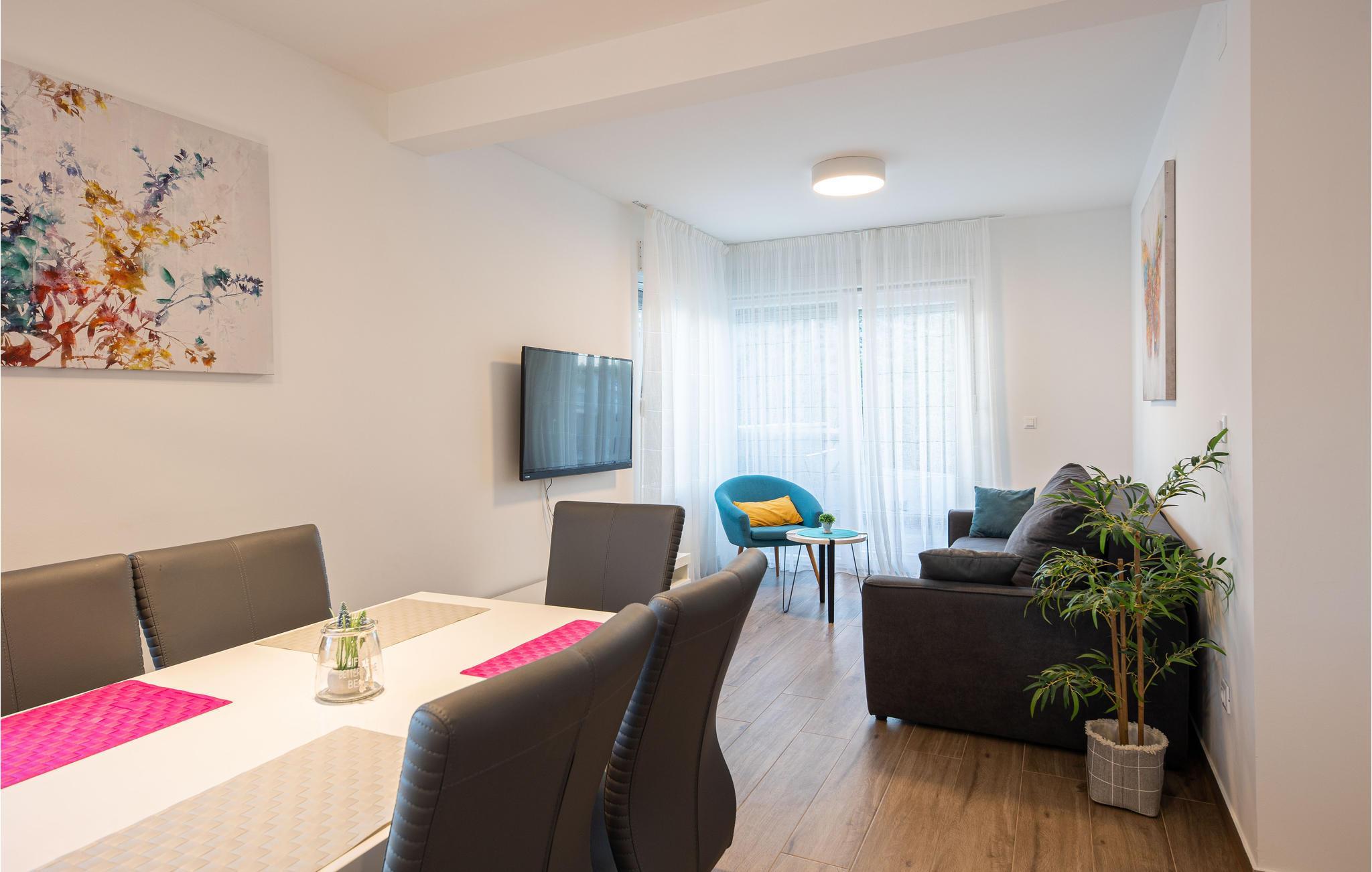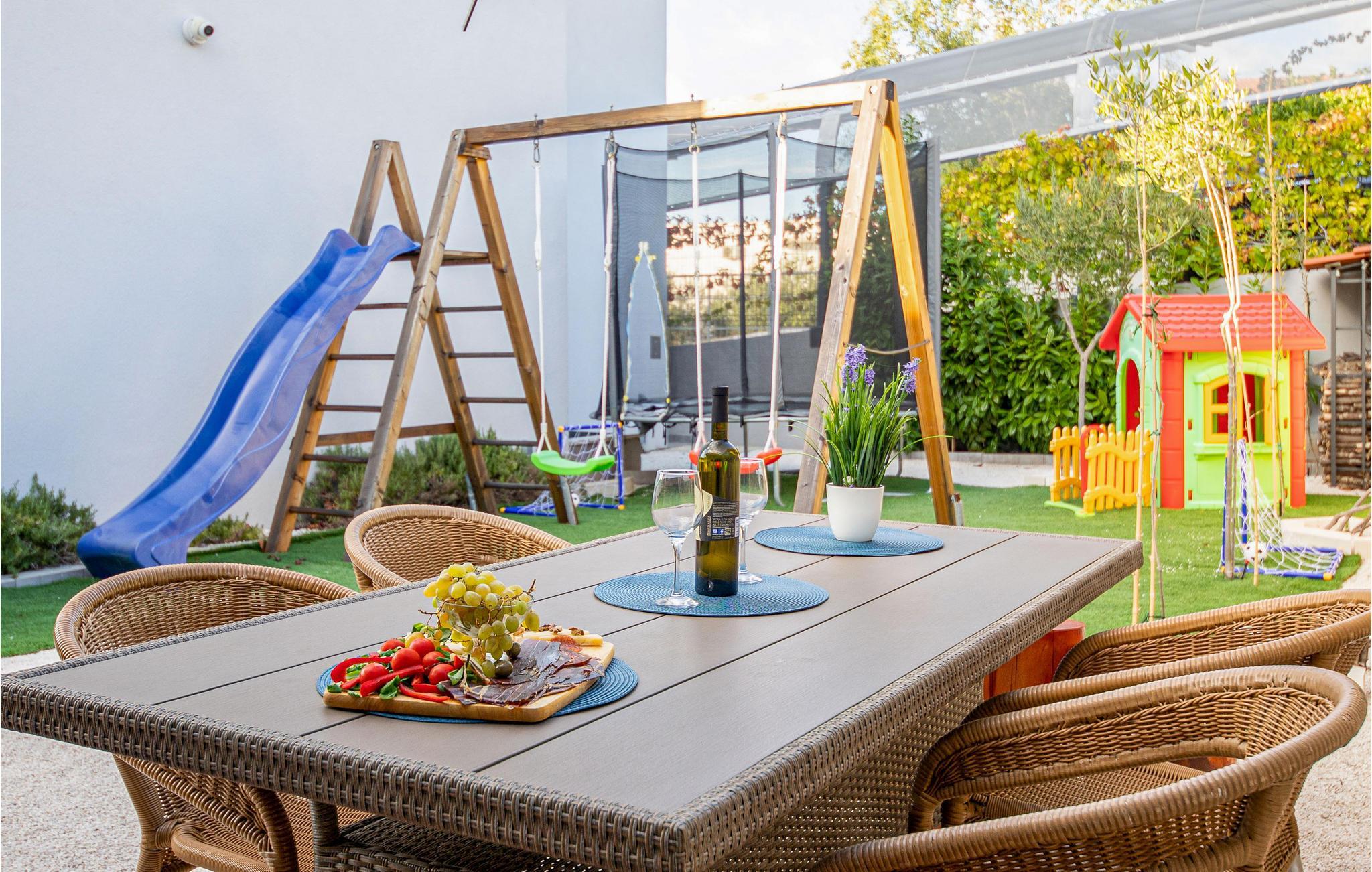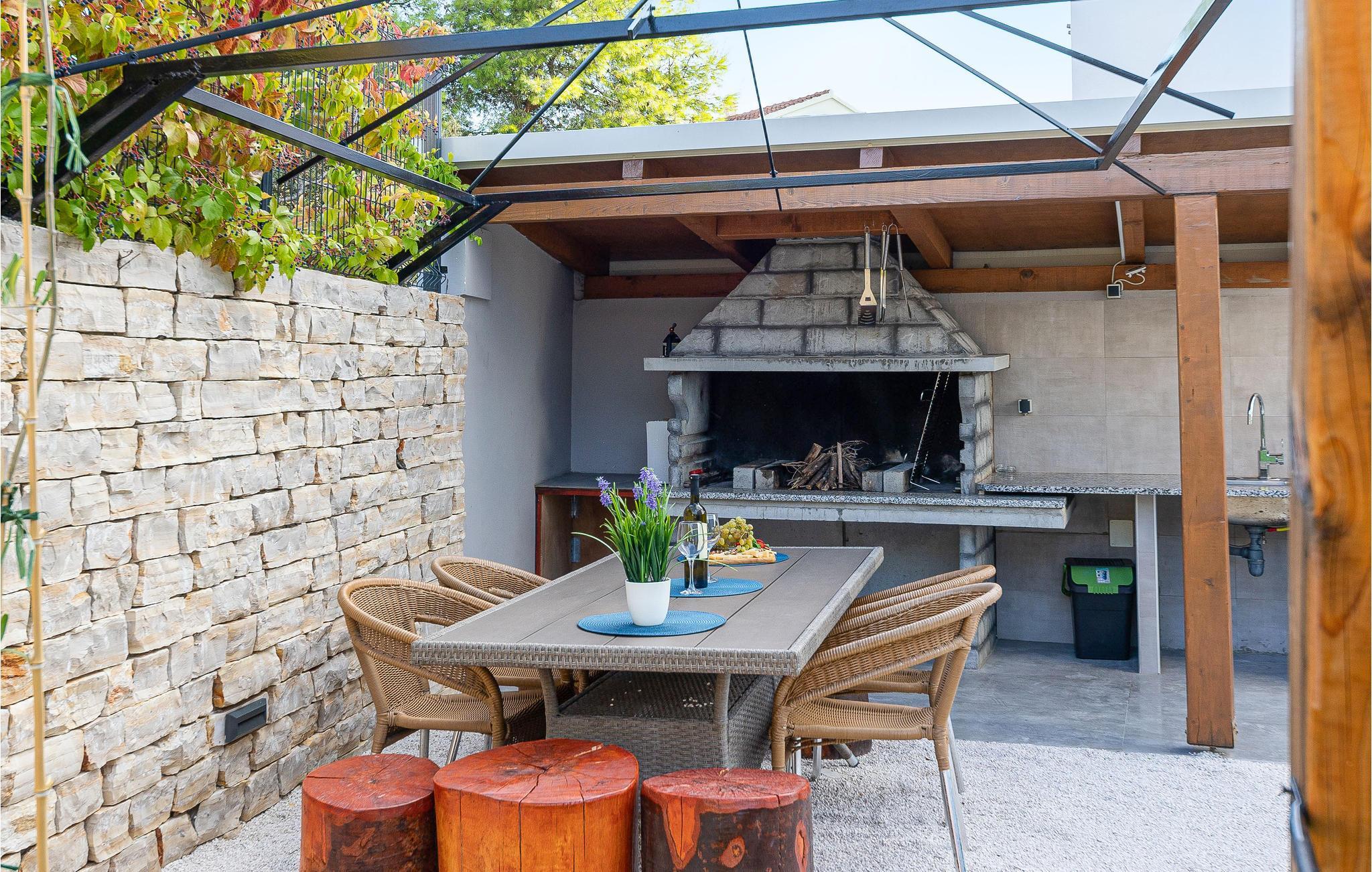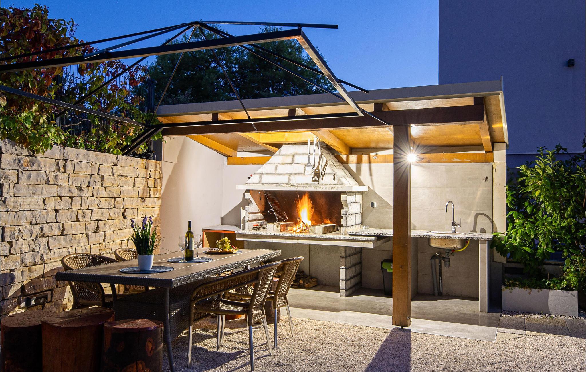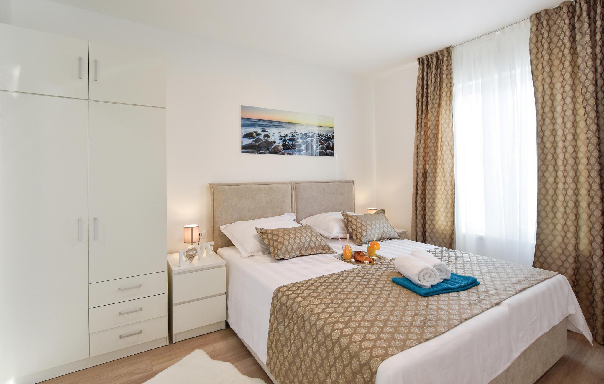 Nur ca. 60 m vom Meer entfernt befindet sich dieses luxuriöse Haus mit Pool. Das Haus verfügt über 5 Ferienwohnungen mit Meerblick. Jede Wohneinheit besteht aus 2 geräumigen Zimmern mit eigenem Bad und zusätzlicher Toilette, Küche, Esszimmer, Wohnzimmer und großem Balkon mit Meerblick. Im Souterrain befinden sich die Sauna und der Fitnessbereich sowie das Badezimmer und ein großes Esszimmer mit Küche. Das Haus liegt in einer ruhigen Bucht und wurde für den Familientourismus umgebaut. Nur 15 Autominuten entfernt befinden sich die unter dem Schutz der UNESCO stehenden Städte Trogir und Primosten. Wir empfehlen außerdem, die nahe gelegenen Nationalparks Krk und Kornati zu besuchen.