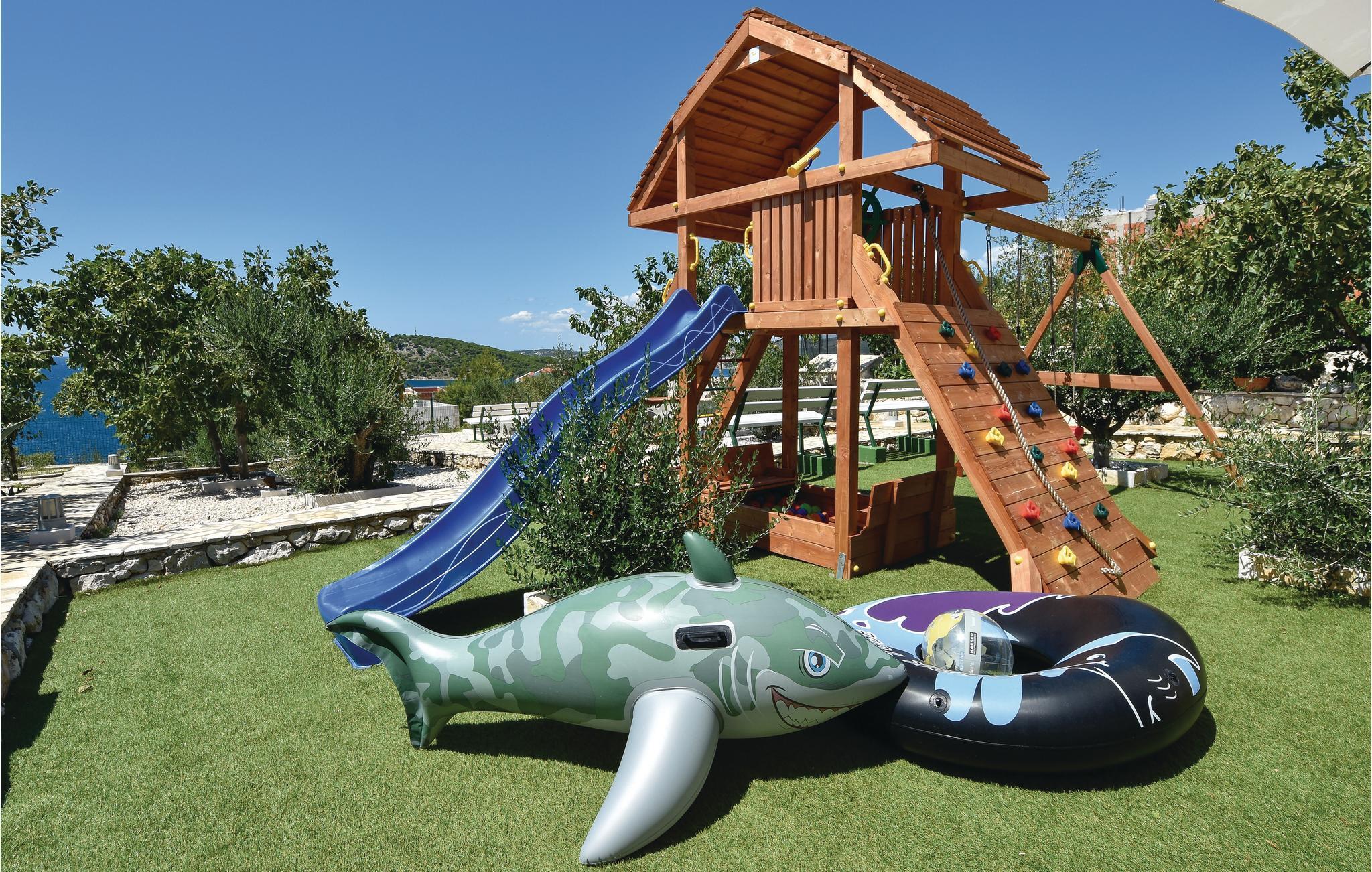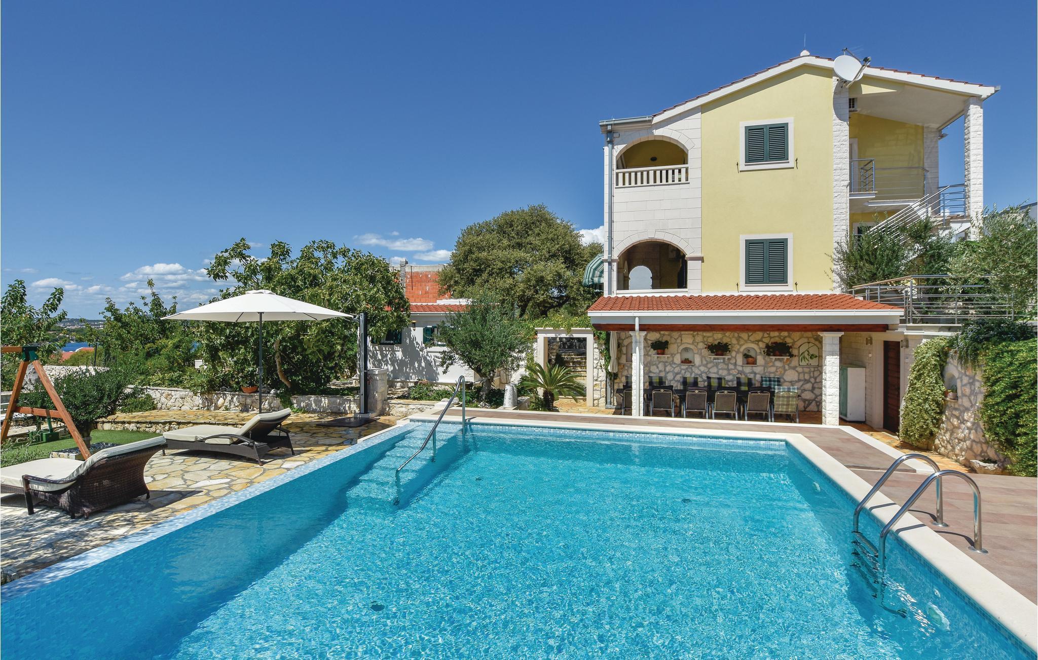 Dieses Grundstück mit zwei Häusern ist ideal für einen schönen Urlaub. In einem Haus gibt es drei voll ausgestattete Apartments, während im zweiten zwei Tavernen im dalmatinischen Stil eingerichtet sind. Die Taverne im Erdgeschoss fungiert als Aufenthaltsraum. Eine große Terrasse mit Pool liegt vor der Taverne im Erdgeschoss. Von mehreren Terrassen aus bietet sich ein atemberaubender Panoramablick auf das Meer. Die Lage des Hauses ist ideal für Tagesausflüge nach Sibenik und Trogir, zu den alten dalmatinischen Städten unter dem Schutz von UNESCO mit Spaß für alle Altersgruppen im Sommer.