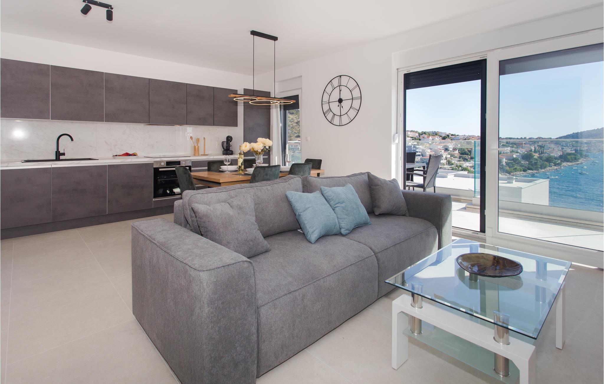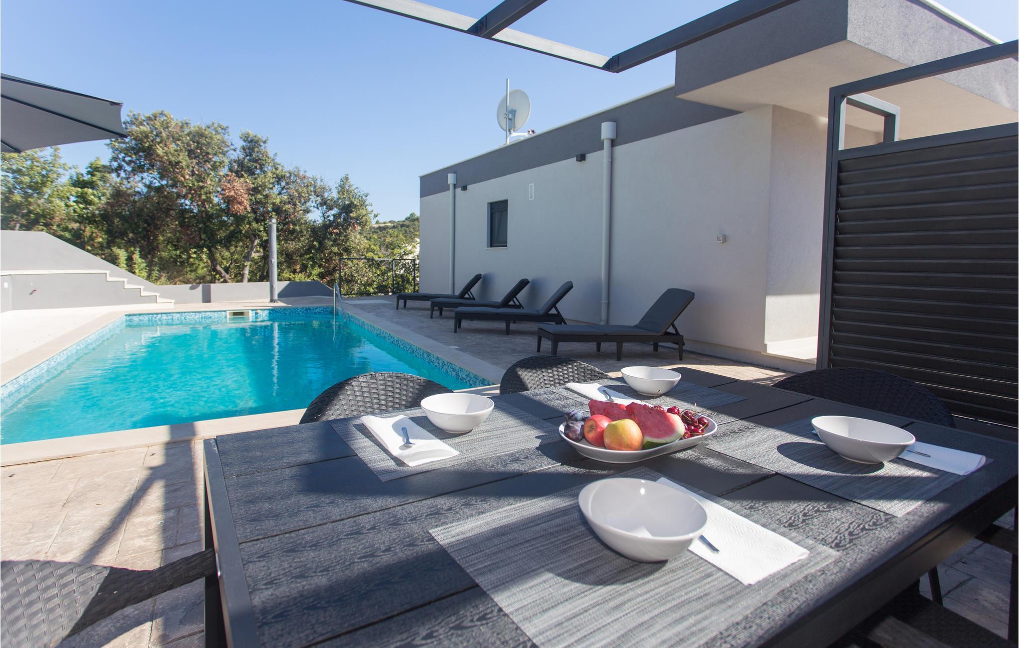 Genießen Sie eine fantastische Aussicht auf das Meer in diesem attraktiven Ferienhaus mit Pool.