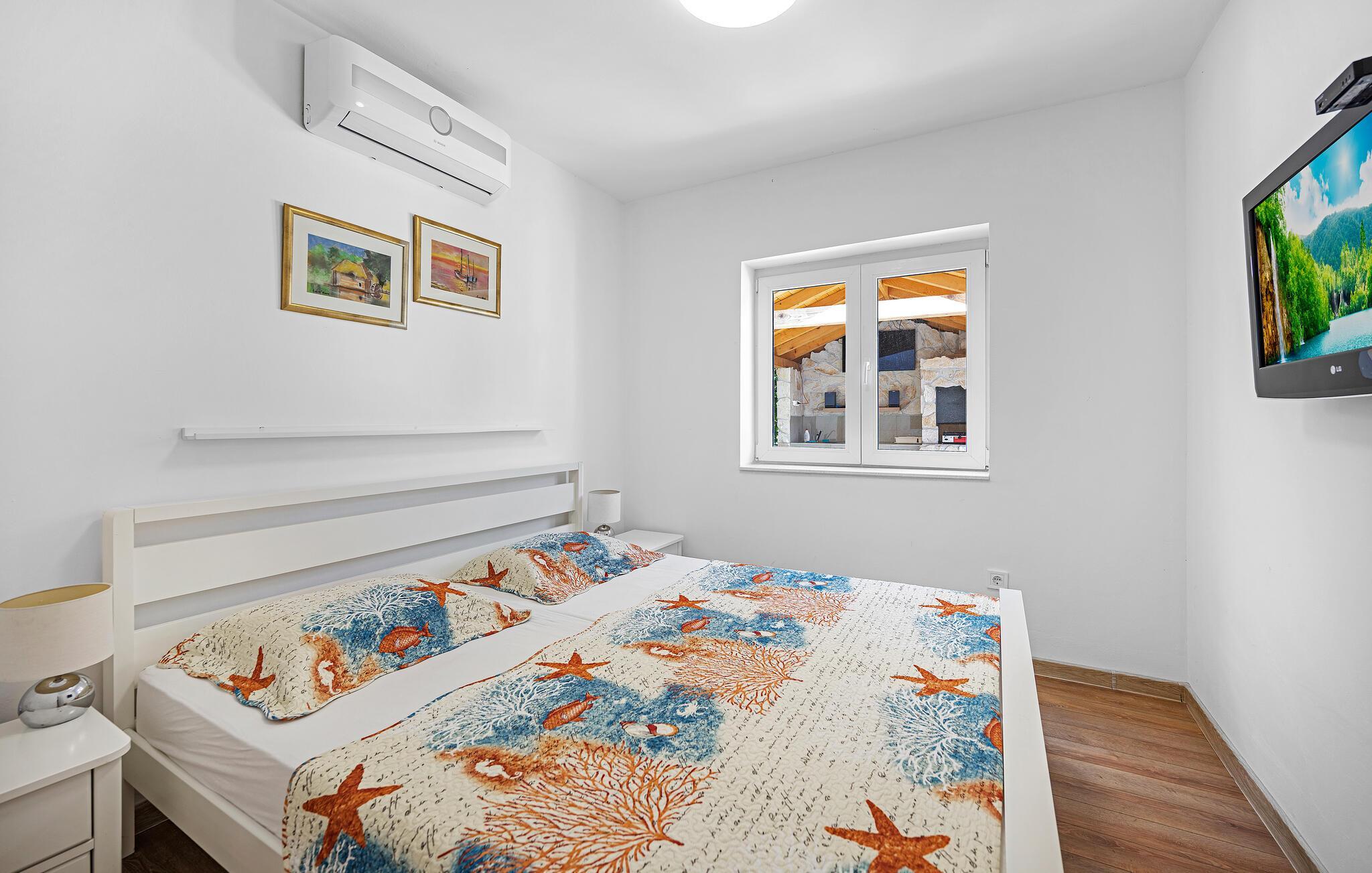 Spazieren Sie zum Meer und baden Sie am Plateau- oder am Kiesstrand. Unternehmen Sie einen Ausflug nach Trogir, spazieren Sie über die Brücke in die Altstadt und erkunden Sie die Bauwerke, die von der reichen Vergangenheit dieser beeindruckenden Stadt zeugen, darunter der Cipiko Palast, die Kirche Sveti Petar und die Gebäude am Platz Johannes Paul II.