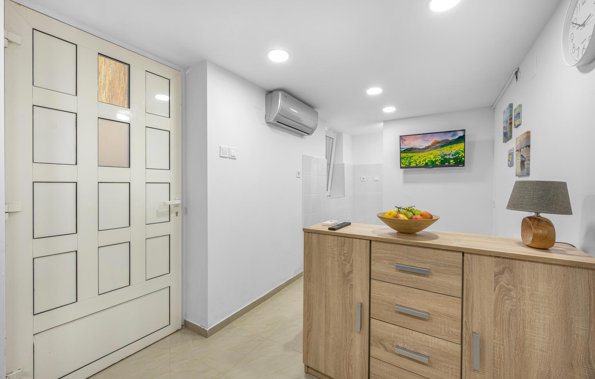 Spazieren Sie zum Meer und baden Sie am Plateau- oder am Kiesstrand. Unternehmen Sie einen Ausflug nach Trogir, spazieren Sie über die Brücke in die Altstadt und erkunden Sie die Bauwerke, die von der reichen Vergangenheit dieser beeindruckenden Stadt zeugen, darunter der Cipiko Palast, die Kirche Sveti Petar und die Gebäude am Platz Johannes Paul II.