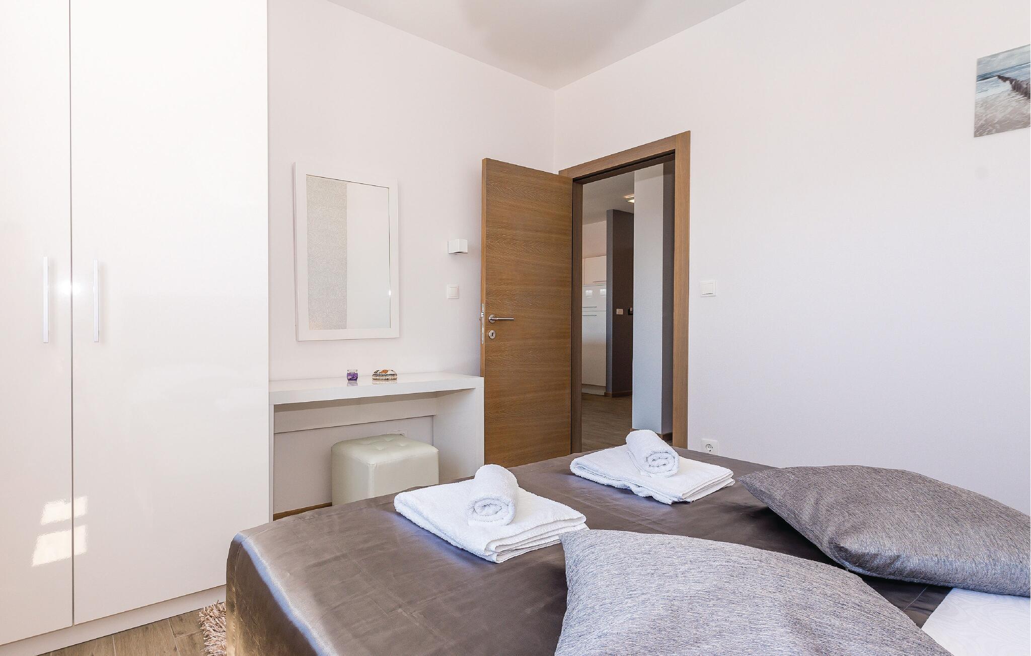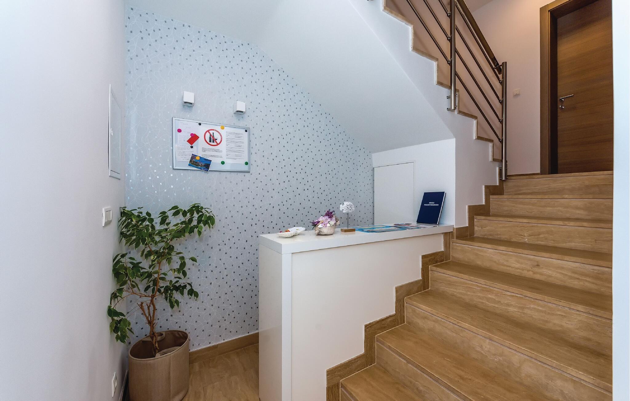 Schlendern Sie zum nahegelegenen Strand und genießen Sie Sonne und Meer in vollen Zügen. Starten Sie Ihren Tag mit einem Spaziergang entlang der malerischen Küste, die von kristallklarem Wasser und charmanten Buchten gesäumt ist. Die Gegend bietet zahlreiche Wander- und Radwege, die Sie zu atemberaubenden Aussichtspunkten führen. Spazieren Sie durch die engen Gassen der historischen Altstadt von Rogoznica und bewundern Sie die traditionelle Architektur.