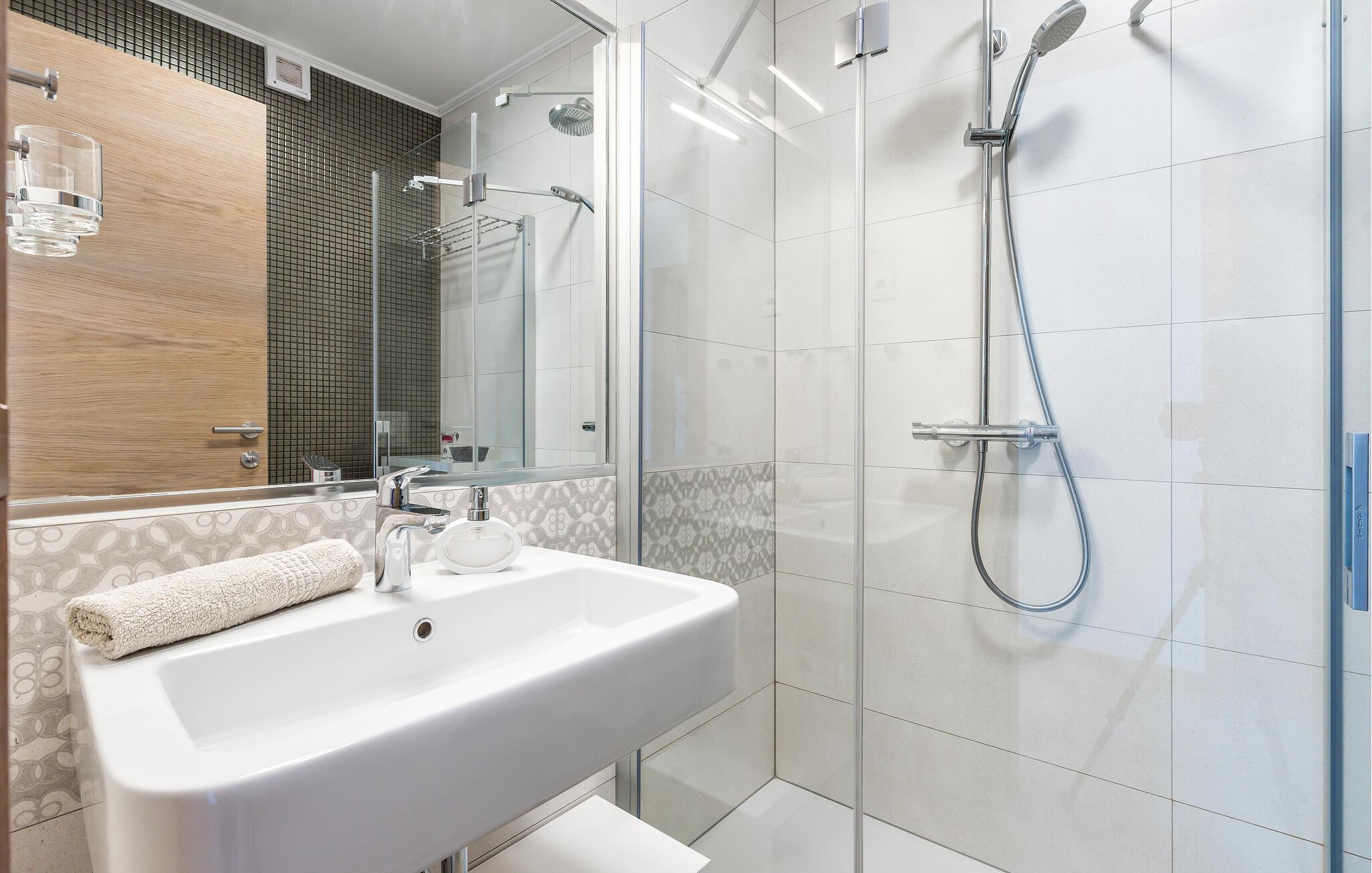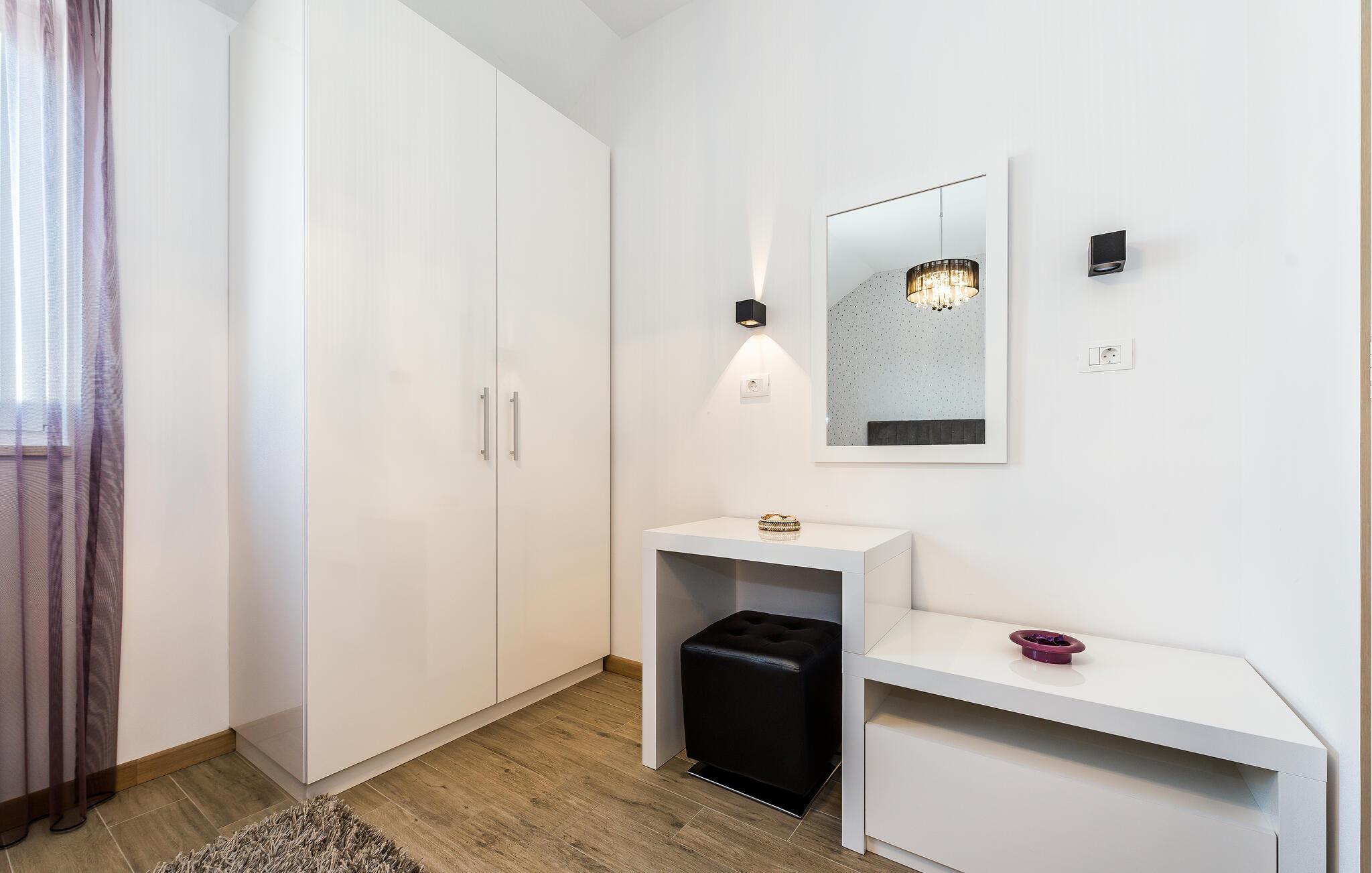 Schlendern Sie zum nahegelegenen Strand und genießen Sie Sonne und Meer in vollen Zügen. Starten Sie Ihren Tag mit einem Spaziergang entlang der malerischen Küste, die von kristallklarem Wasser und charmanten Buchten gesäumt ist. Die Gegend bietet zahlreiche Wander- und Radwege, die Sie zu atemberaubenden Aussichtspunkten führen. Spazieren Sie durch die engen Gassen der historischen Altstadt von Rogoznica und bewundern Sie die traditionelle Architektur.