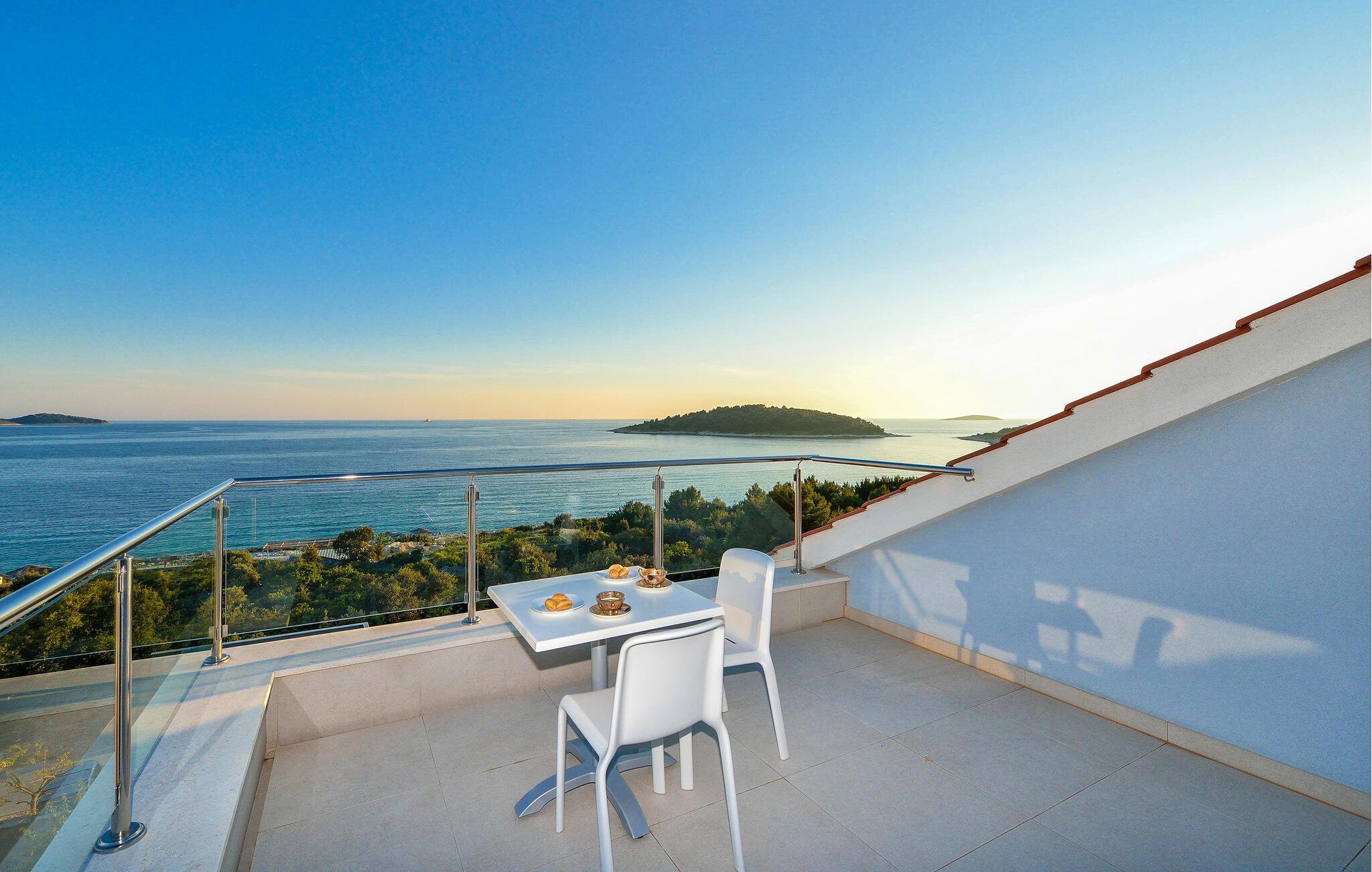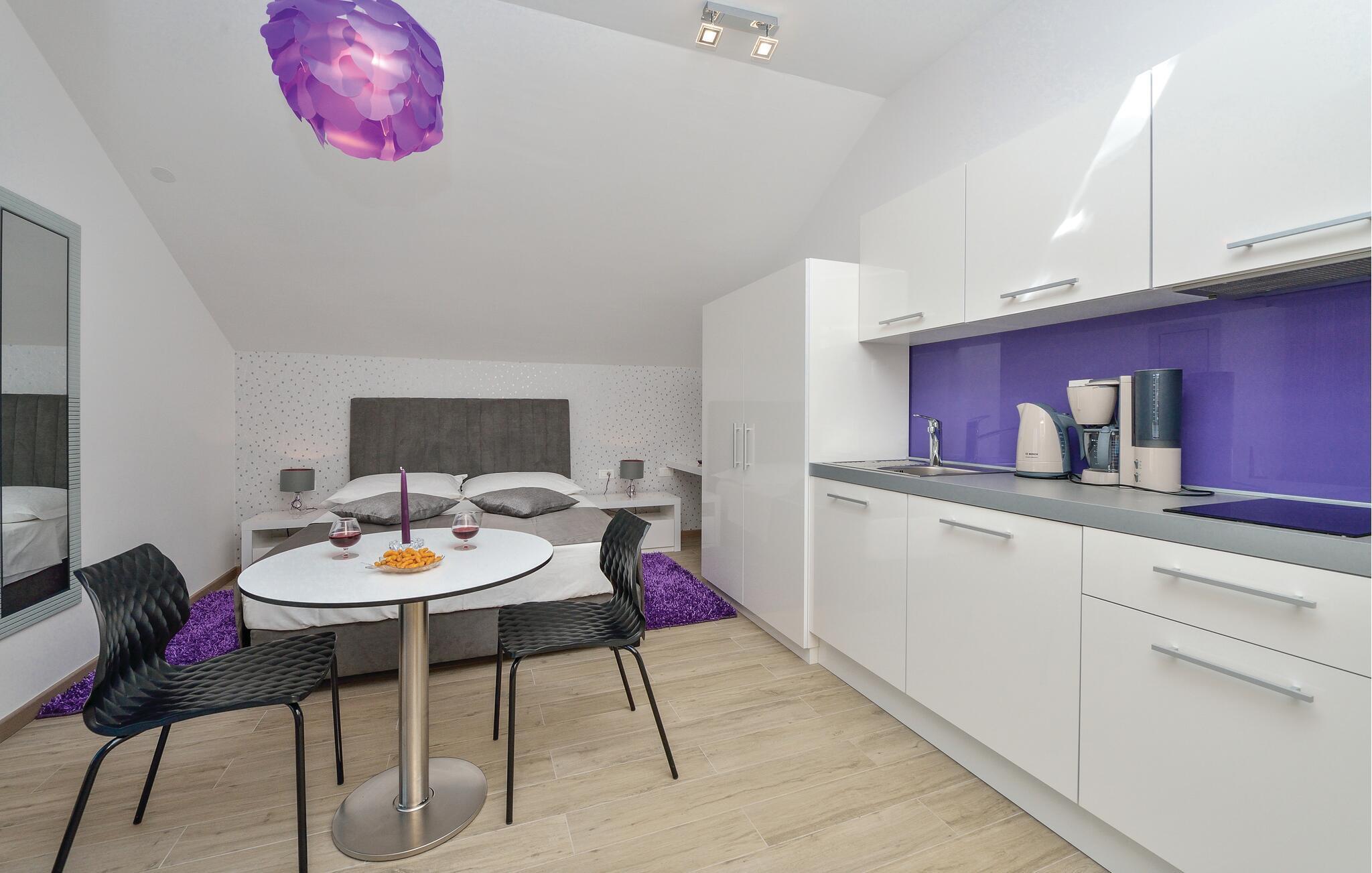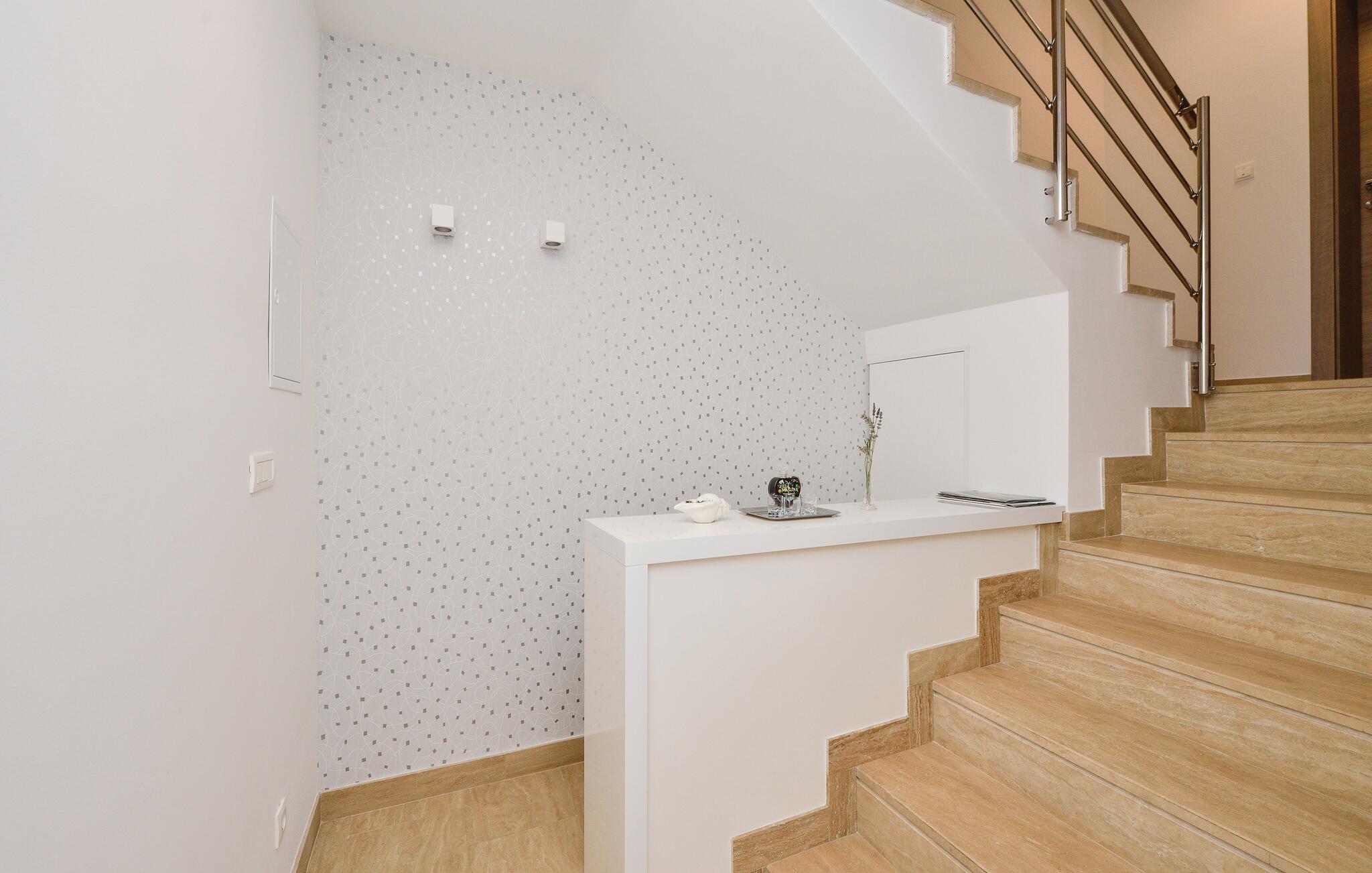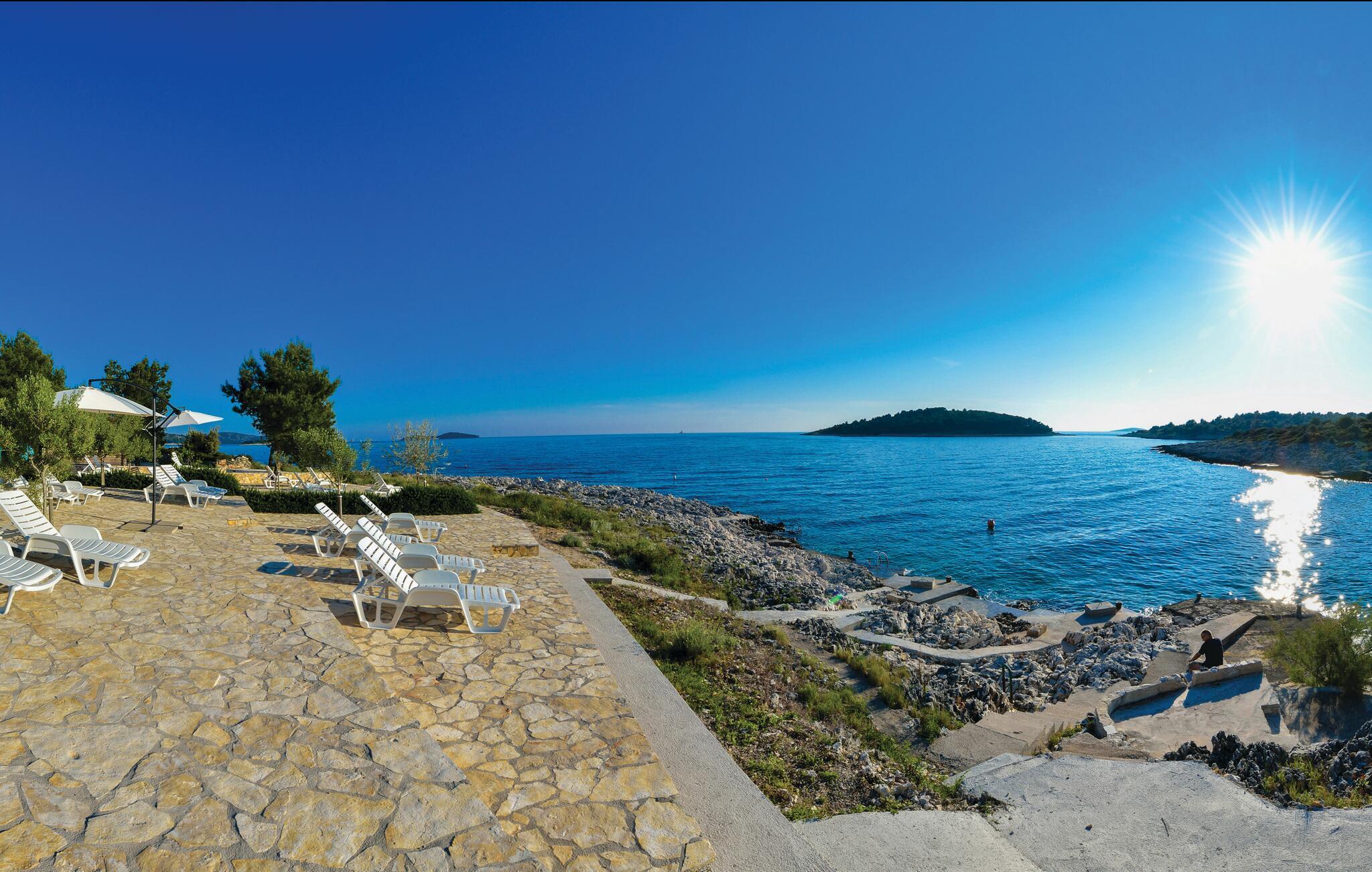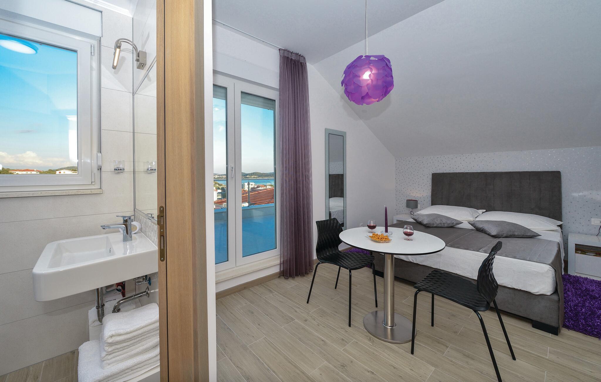 Schlendern Sie zum nahegelegenen Strand und genießen Sie Sonne und Meer in vollen Zügen. Starten Sie Ihren Tag mit einem Spaziergang entlang der malerischen Küste, die von kristallklarem Wasser und charmanten Buchten gesäumt ist. Die Gegend bietet zahlreiche Wander- und Radwege, die Sie zu atemberaubenden Aussichtspunkten führen. Spazieren Sie durch die engen Gassen der historischen Altstadt von Rogoznica und bewundern Sie die traditionelle Architektur.