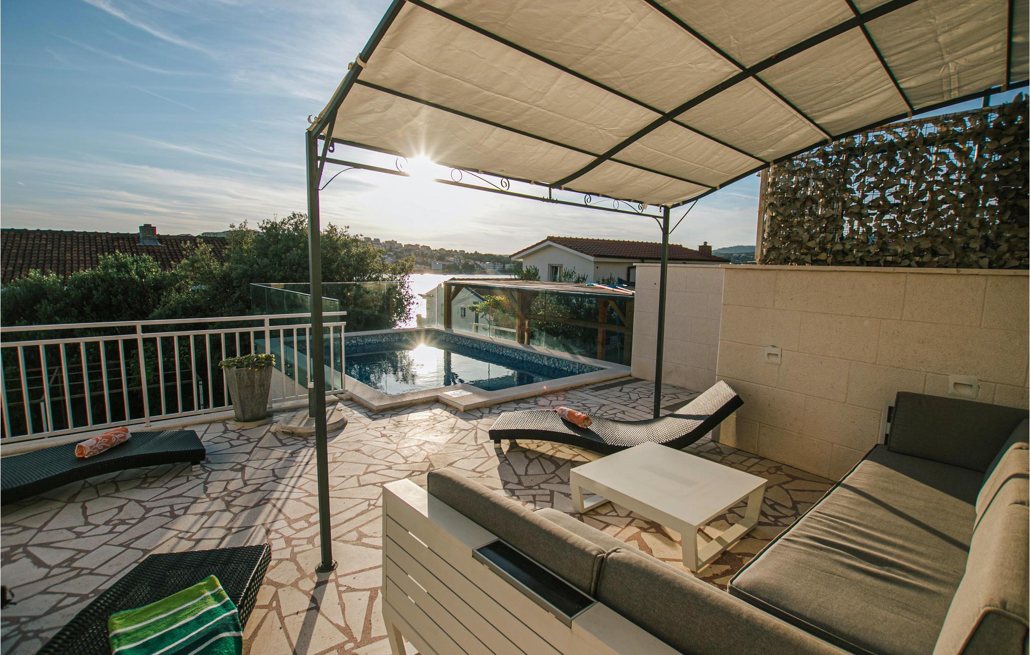Dieses elegante und komfortable Ferienhaus für 12 Personen mit Pool liegt in Zatoglav, nur wenige Schritte vom Meer entfernt und bietet Ihnen einen wunderschönen Meerblick. Im Erdgeschoss befindet sich ein Unterhaltungsbereich, in dem Sie Billard, Darts und Tischfußball finden. Auf dem Grundstück steht Ihnen auch ein Grill zur Verfügung, damit Sie köstliche Mahlzeiten für sich und Ihre Familie zubereiten können.