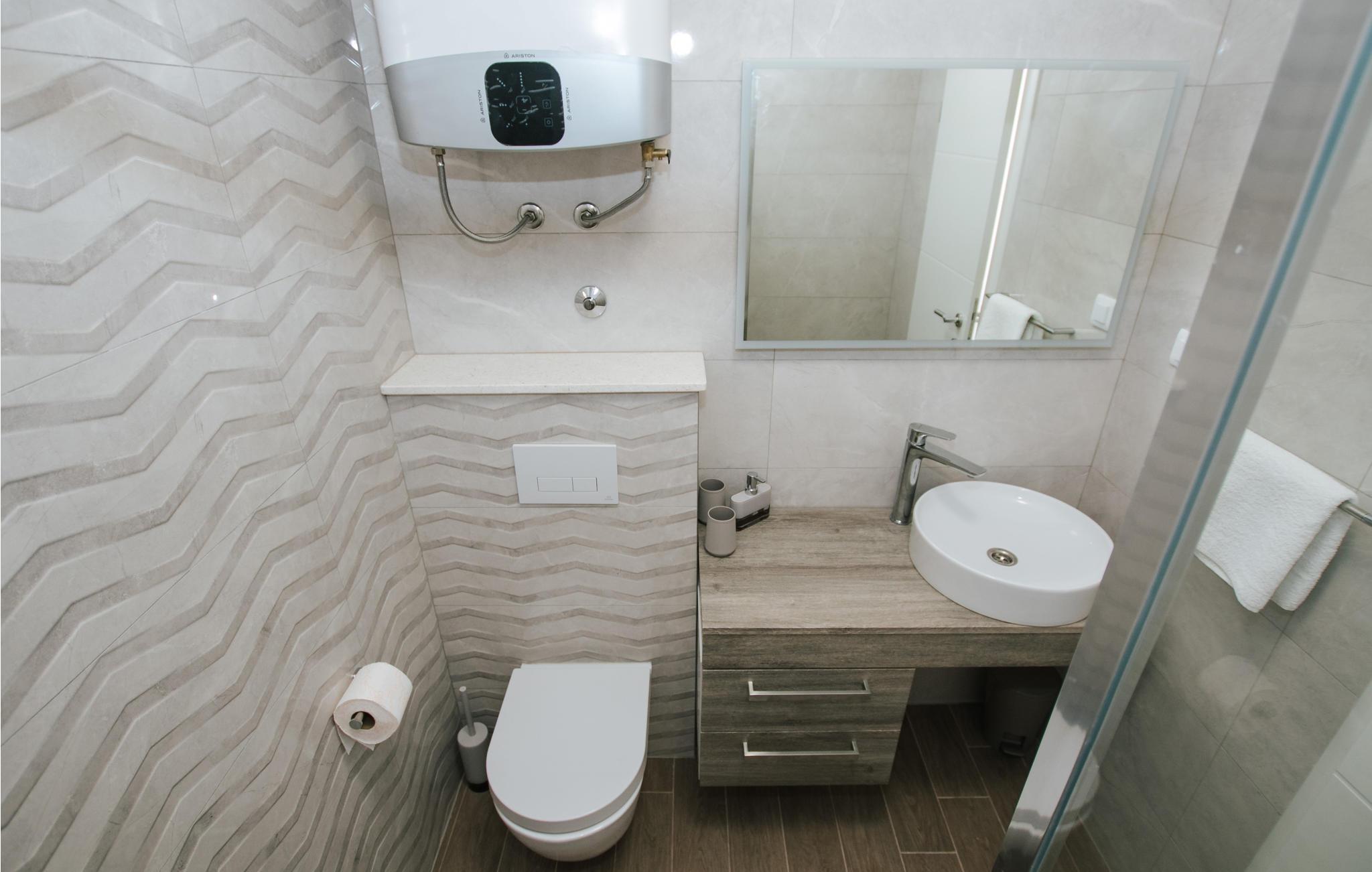 Badezimmer (nr. 5) - WC. Warmes und kaltes Wasser. Dusche