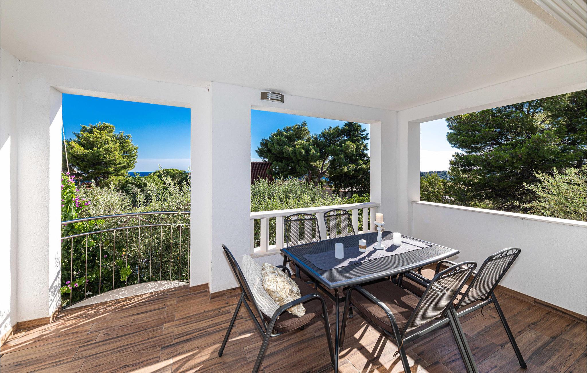 Das Haus besteht aus drei Wohnungen, die durch Außentreppen verbunden sind, somit ist es ideal für für eine große Freundesgruppe, oder mehrere Familien, die gemeinsam auf Urlaub fahren wollen. Die Innenräume sind modern und komfortabel eingerichtet, wobei jede einzelne über einen eigenen Balkon verfügt, von denen Sie einen Meerblick genießen können. Verbringen Sie einen unbeschwerten Urlaub in Stille und Ruhe, wo Sie zudem an heißen Tagen Erfrischung im Pool finden werden.