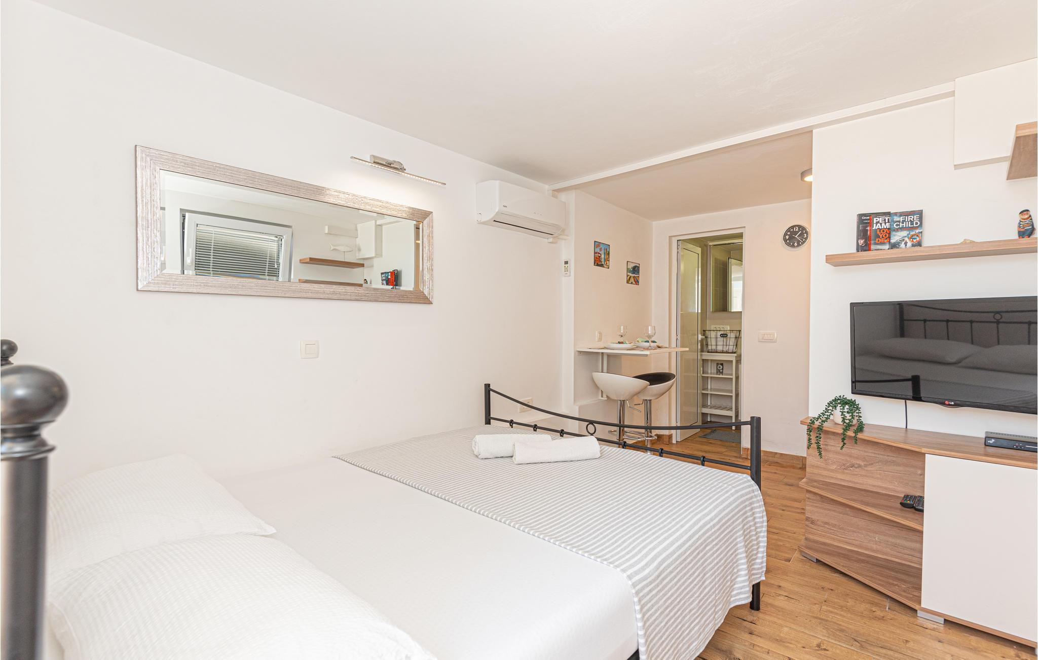 Fühlen Sie sich in der friedlichen Umgebung wohl und springen vom Plateaustrand direkt in das herrliche Meer. Erfrischen Sie sich im Wasser und sonnen Sie sich auf Ihrer Terrasse. Gemeinsam mit Ihren Kindern können Sie hier spielen und das herrliche mediterrane Leben genießen. Entdecken Sie den schönen Ort, in dem Sie frischen Fisch und andere dalmatinische Spezialitäten kaufen können. Besuchen Sie den Jachthafen, die vielen Cafés und Restaurants, Schwimmbäder oder Nachtclubs. Hier kommt keine Langeweile auf. Auch der marine Drachenaugesee und die umliegenden Naturschutzgebiete mit einigen sehenswürdigen Attraktionen wie das Lavendel-Labyrinth oder Ruinen sind eine Visite wert.