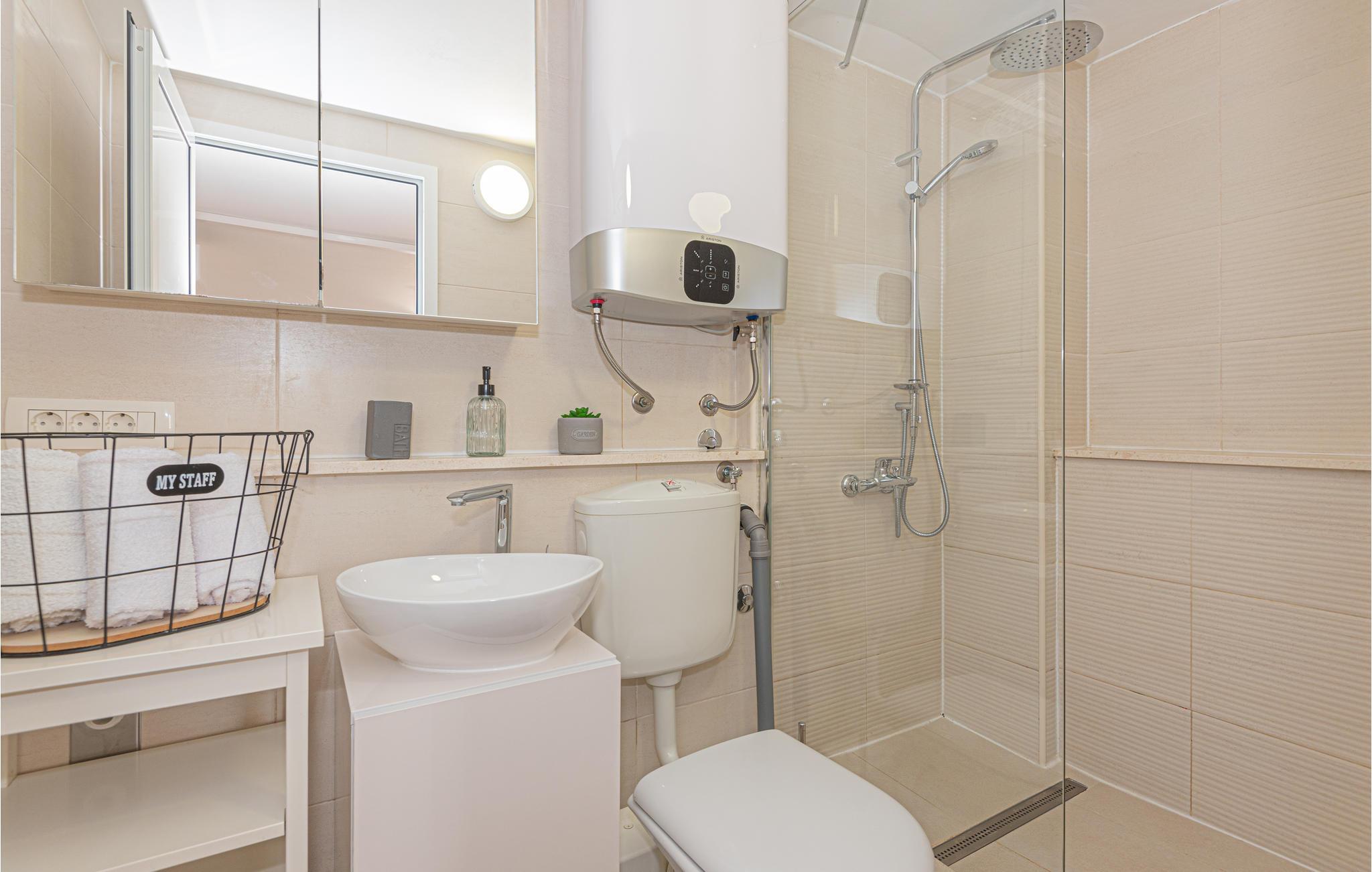 Badezimmer (nr. 2) - WC. Warmes und kaltes Wasser. Dusche