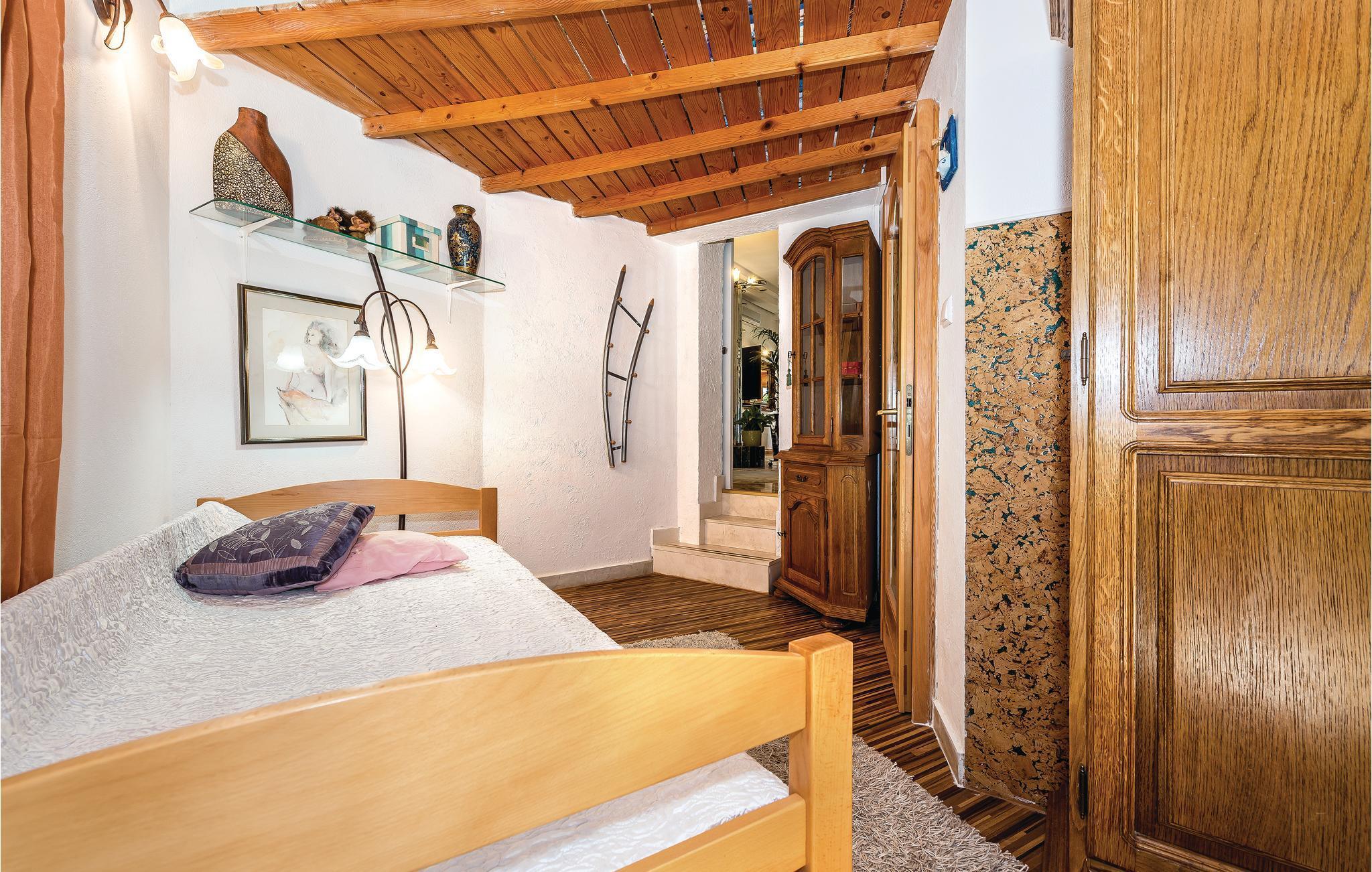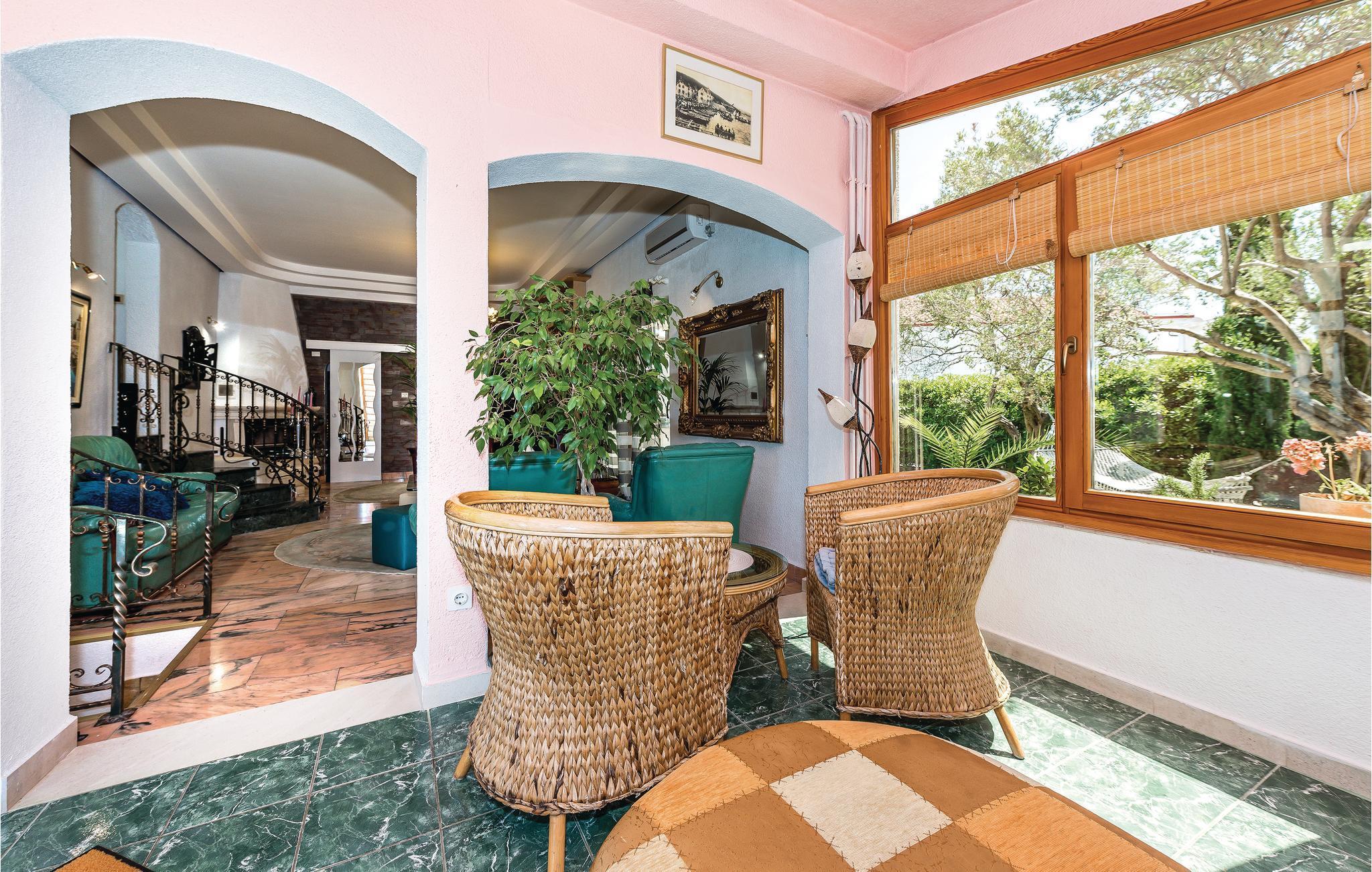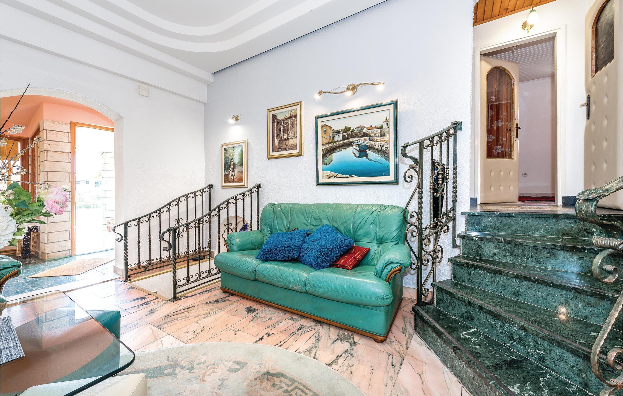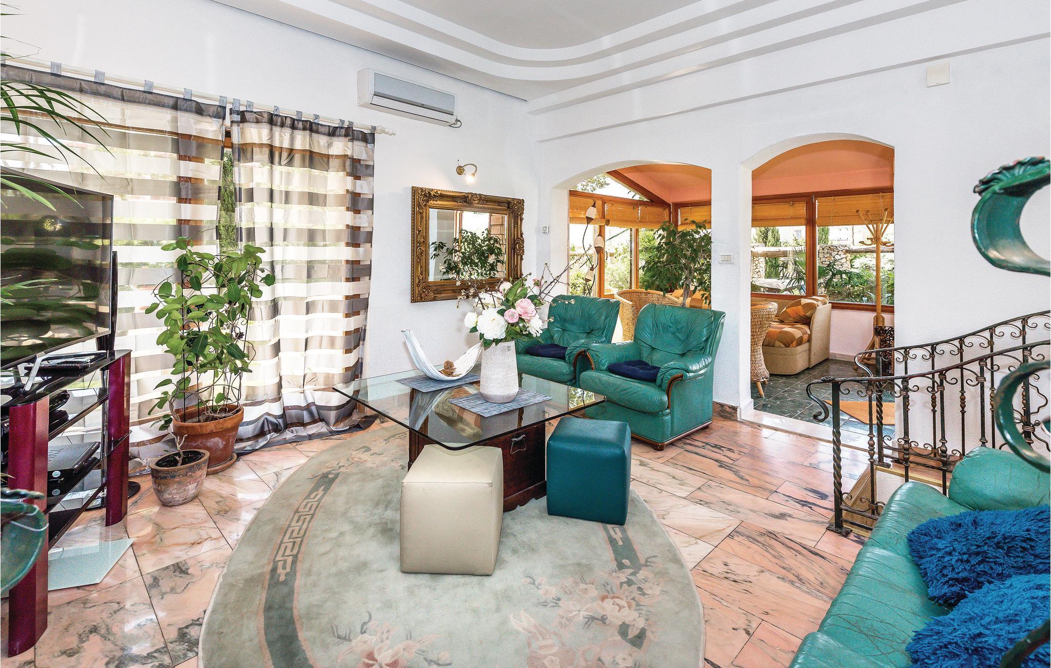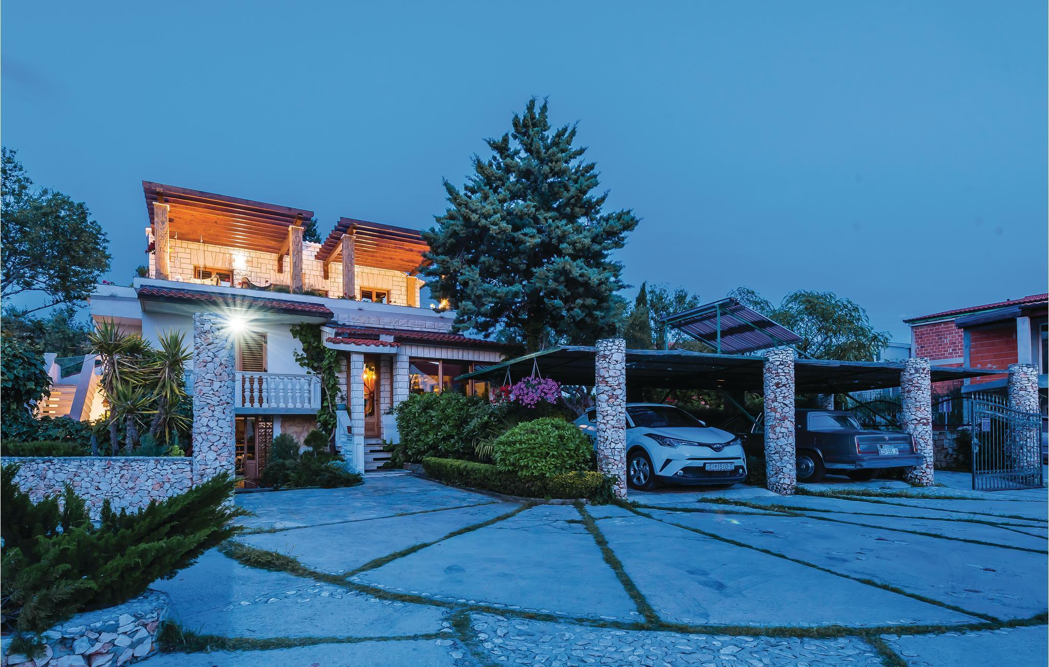 Rogoznica ist ein beliebter Ferienort zwischen den Städten Primošten und Trogir. Hier breitet sich dieses außergewöhnliche Ferienhaus auf mehreren Halbetagen aus (Außentreppe zur letzten Etage). Von allen Seiten des Hauses ist es möglich in den schönen mediterranen Garten mit Pool zu gelangen, neben dem eine überdachte Terrasse sowie ein Grill den Gästen mit Familie und Freunden Privatsphäre bietet. Die Badestrände in Rogoznica sind schön hergerichtet und eignen sich für Kinder. In der Nähe gibt es einen berühmten Yachthafen sowie das Restaurant Frape. Besichtigen Sie auf der Halbinsel Gradina den Salzsee Zmajevo Oko, er ist ein Karstphänomen.