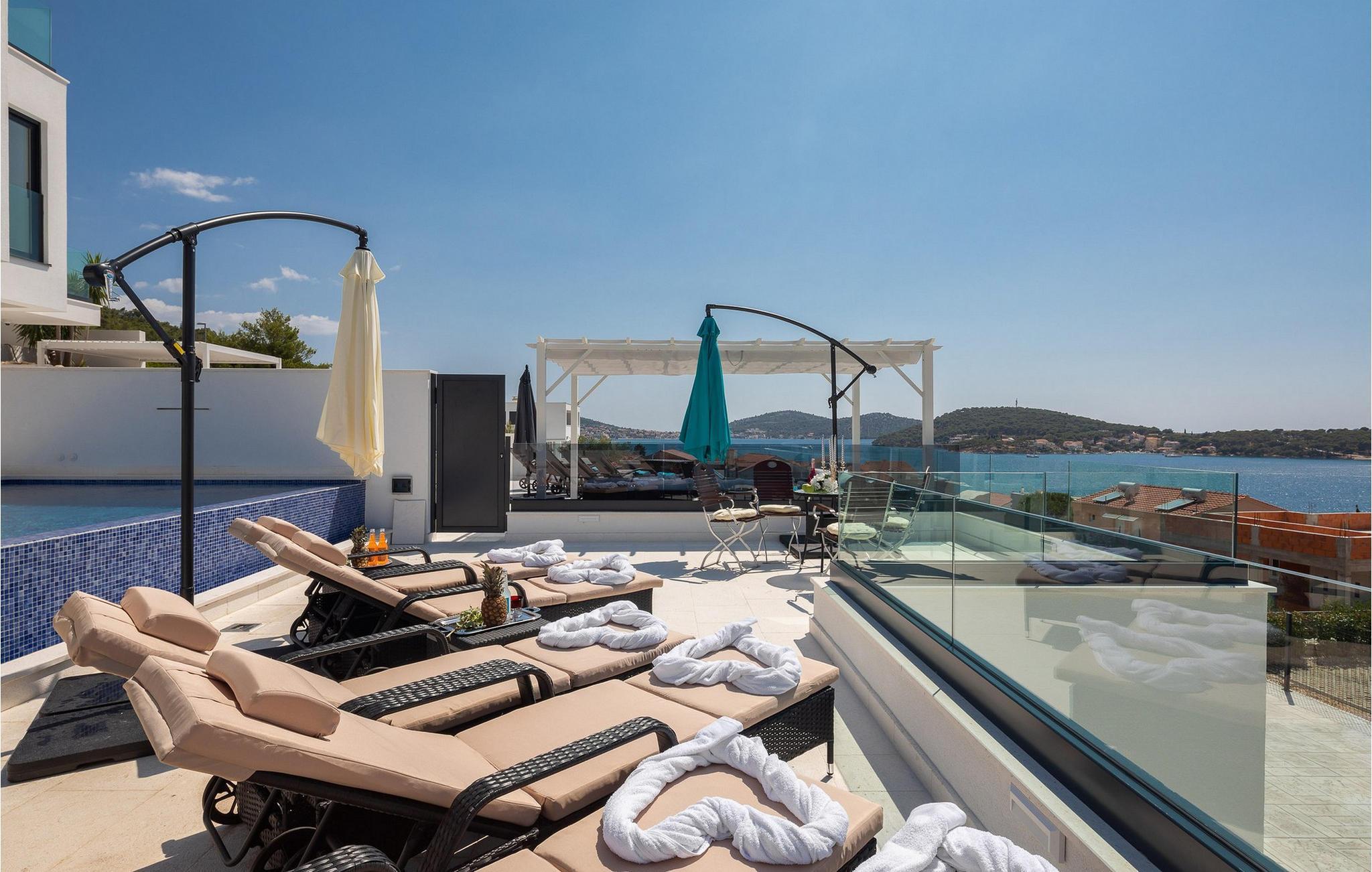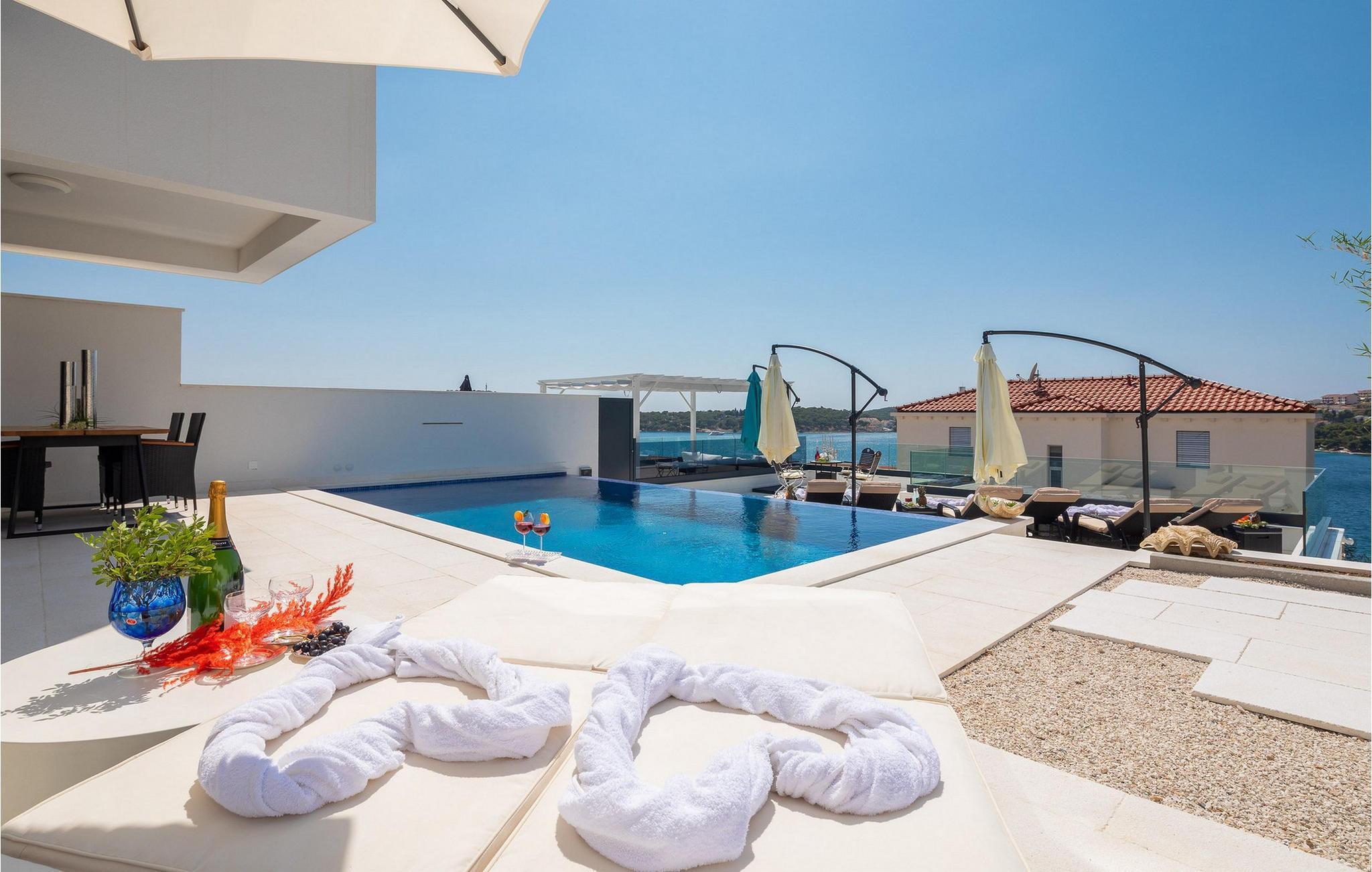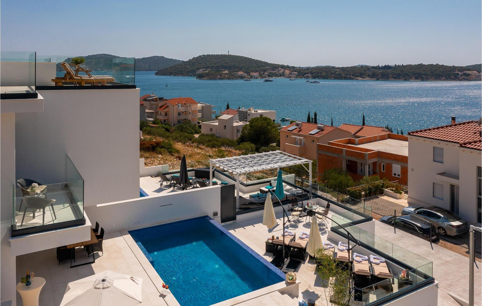 Genießen Sie einen Traumurlaub in diesem luxuriösen Ferienhaus mit Pool und wunderschönem Meerblick.
