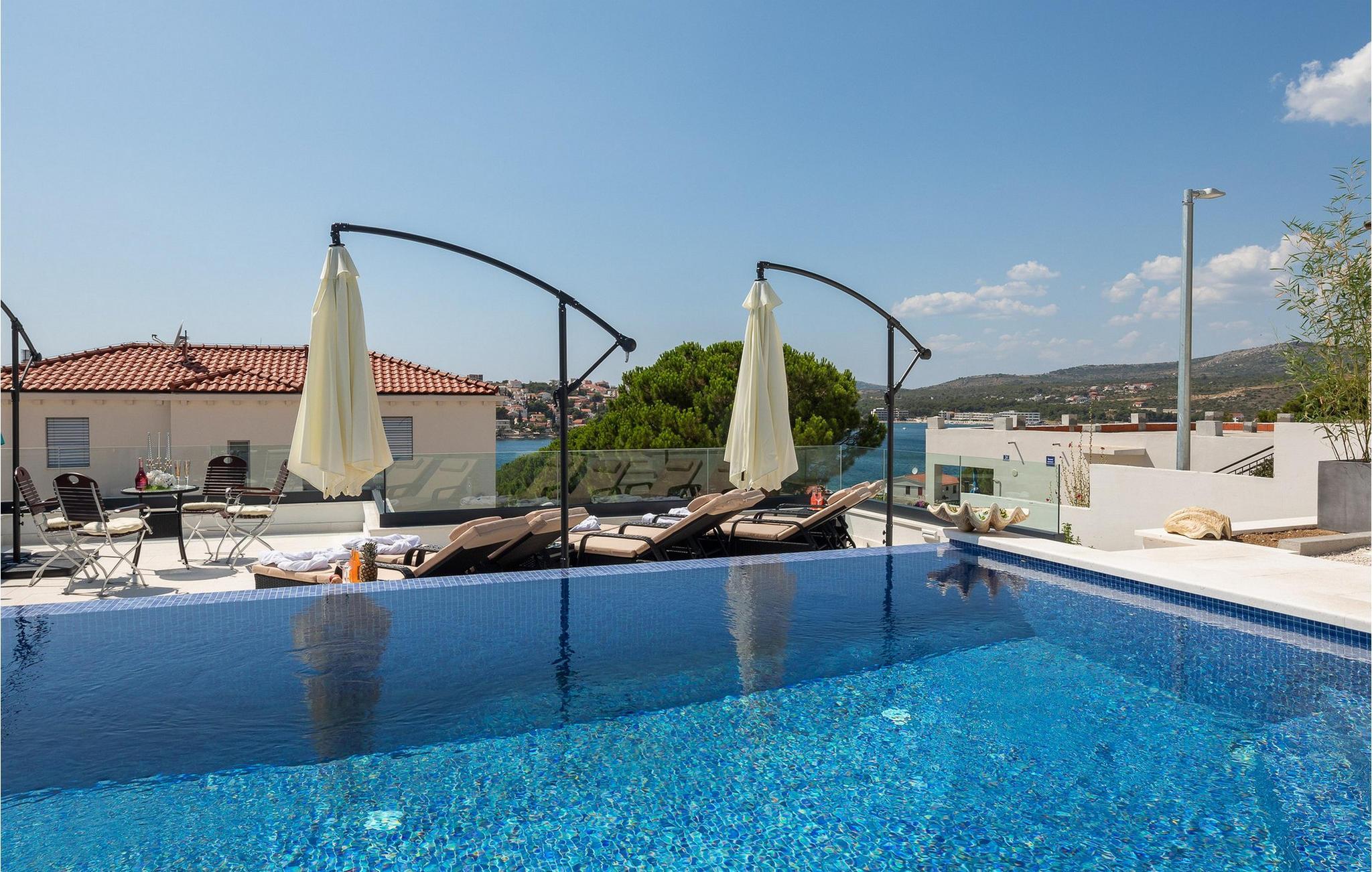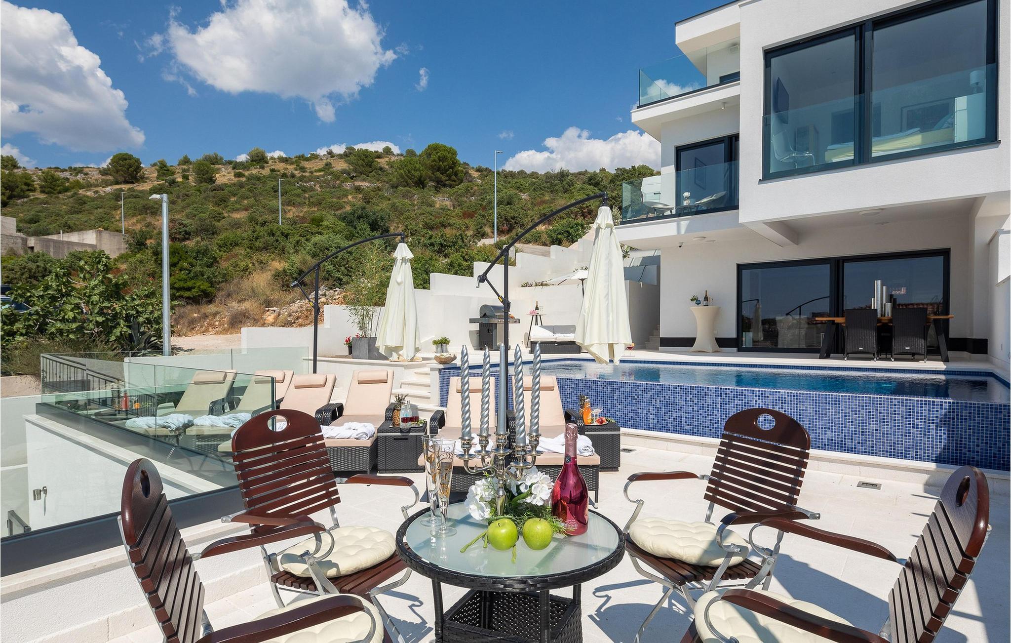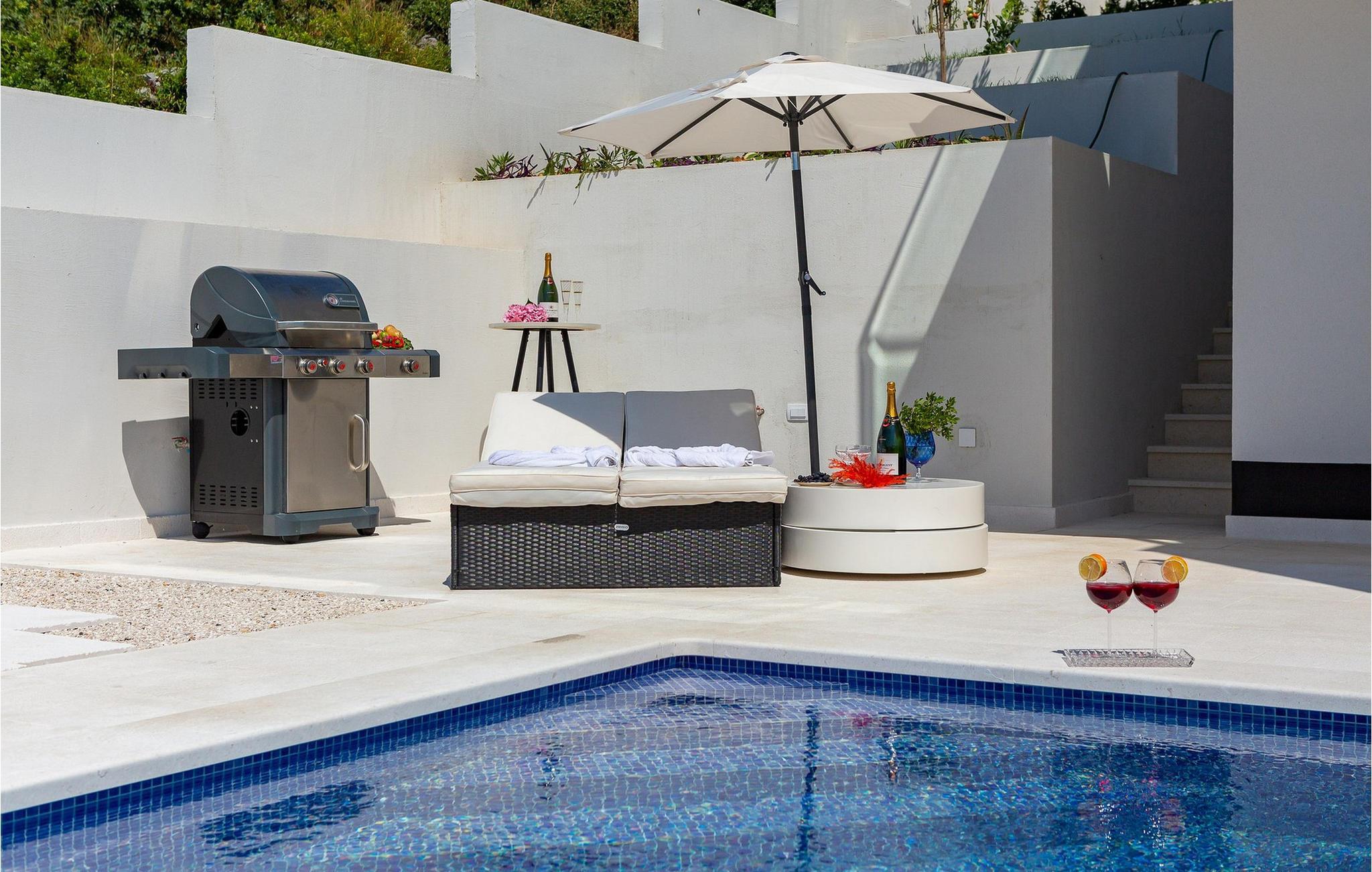 Genießen Sie einen Traumurlaub in diesem luxuriösen Ferienhaus mit Pool und wunderschönem Meerblick.