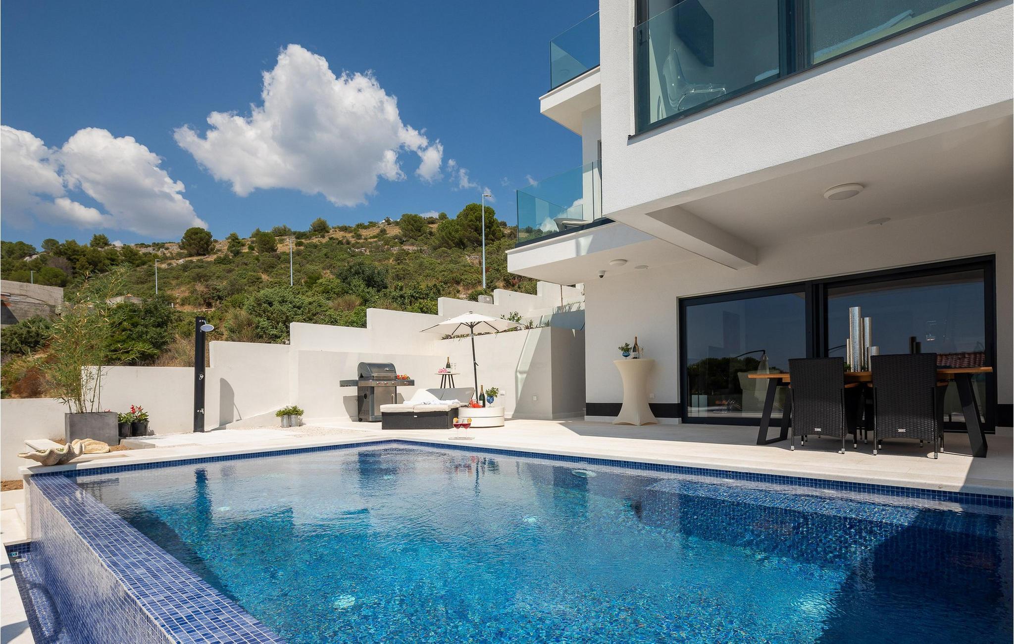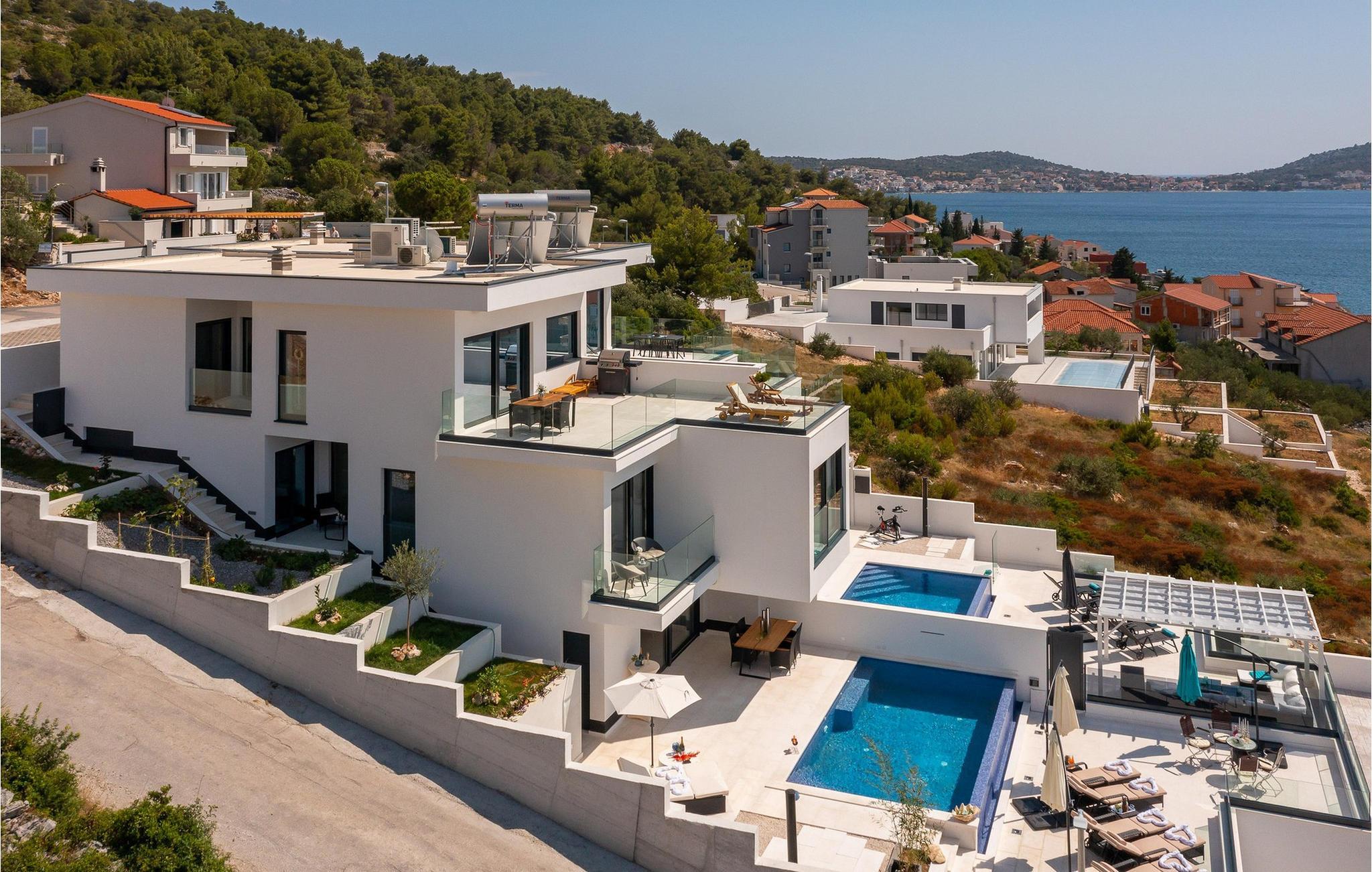 Die moderne Villa Paradise View heißt Sie in einem großzügigen und hochwertig ausgestatteten Interieur willkommen und lädt Sie zu erholsamen Tagen mit einem bezaubernden Blick aufs Meer ein. Zaubern Sie kulinarische Highlights, genießen Sie die angenehme Meeresbrise bei entspannten Mahlzeiten und nutzen Sie die gemeinsame Zeit für anregende Gespräche im geschmackvoll eingerichteten Wohnzimmer.