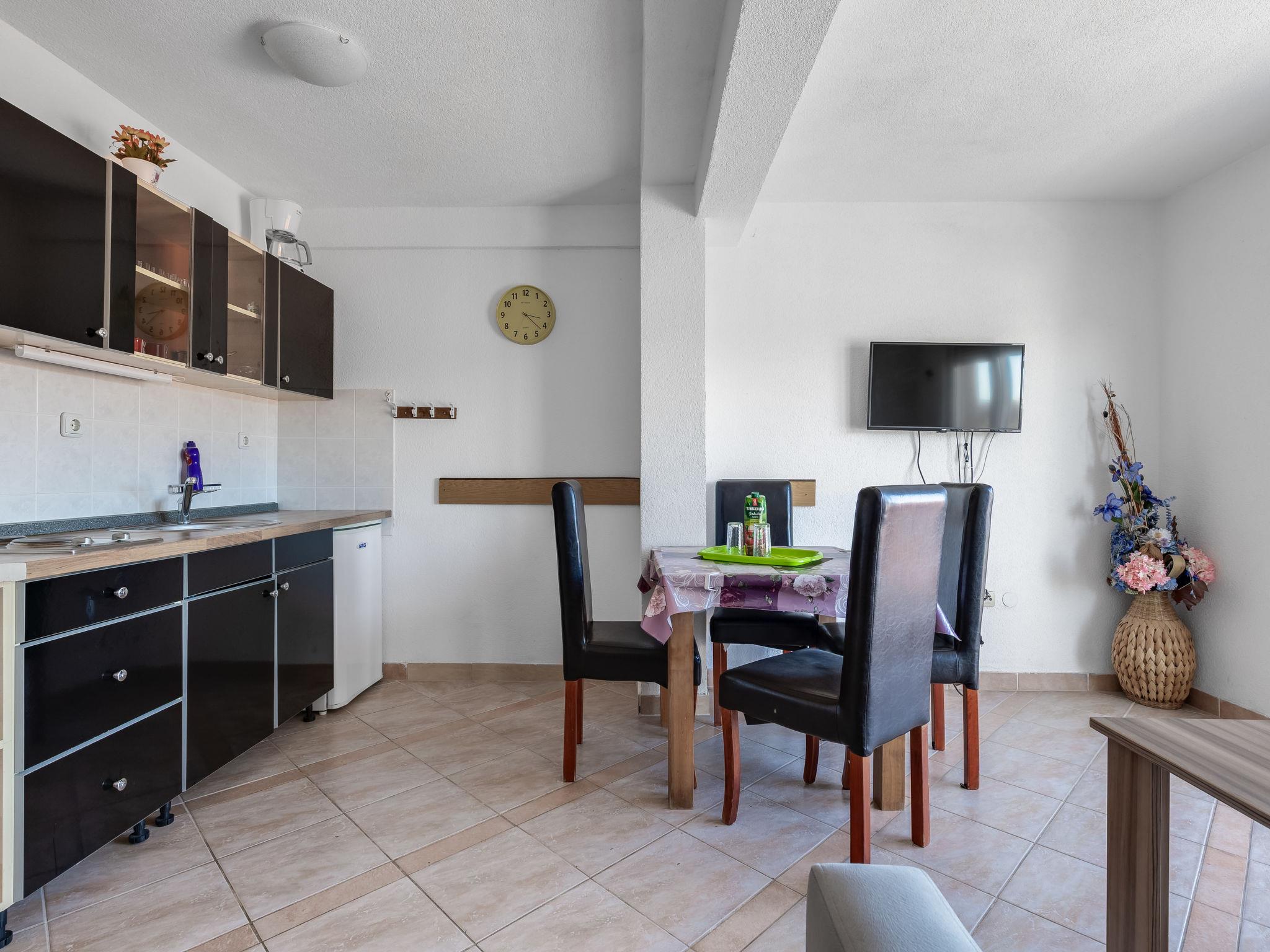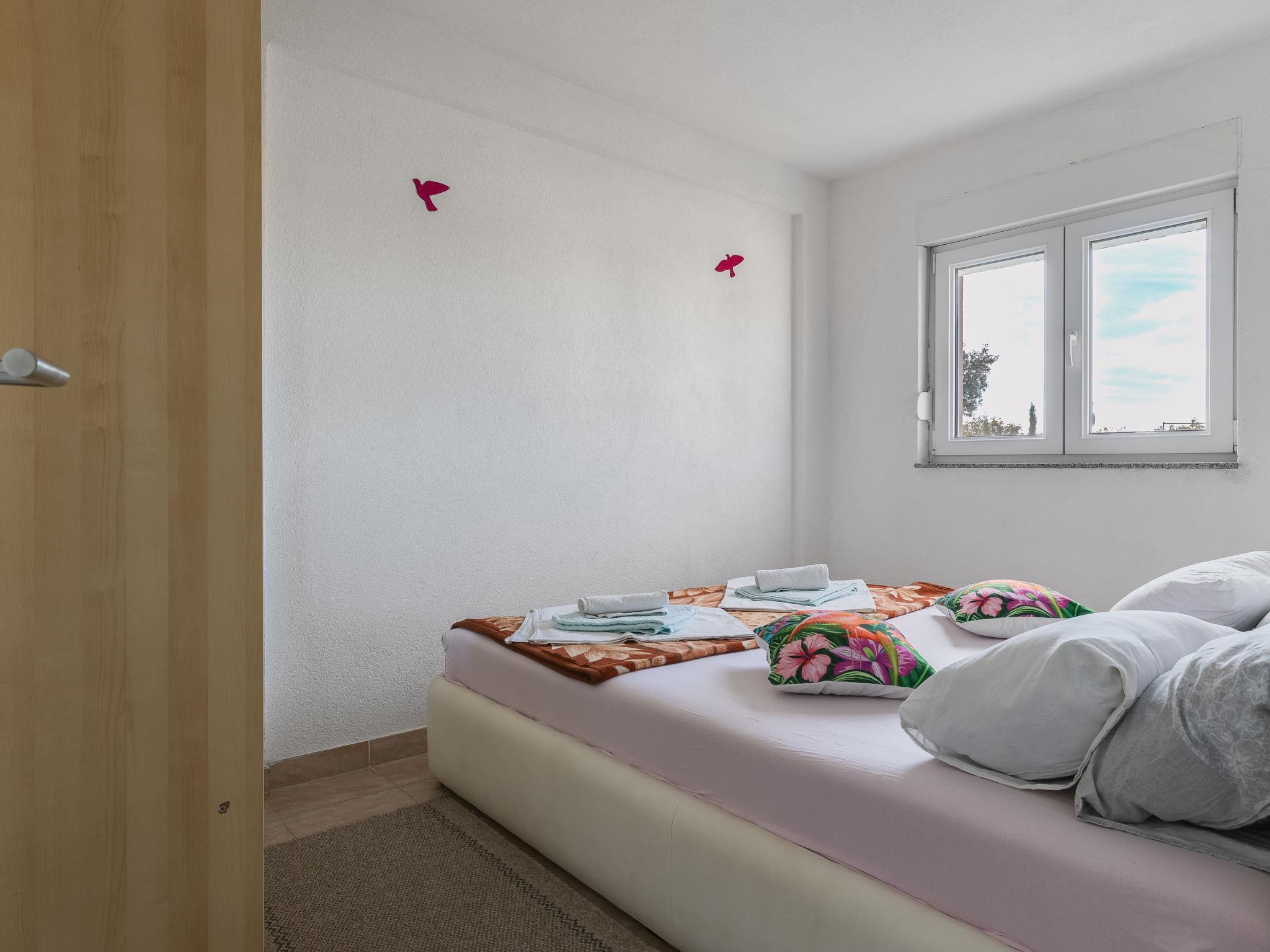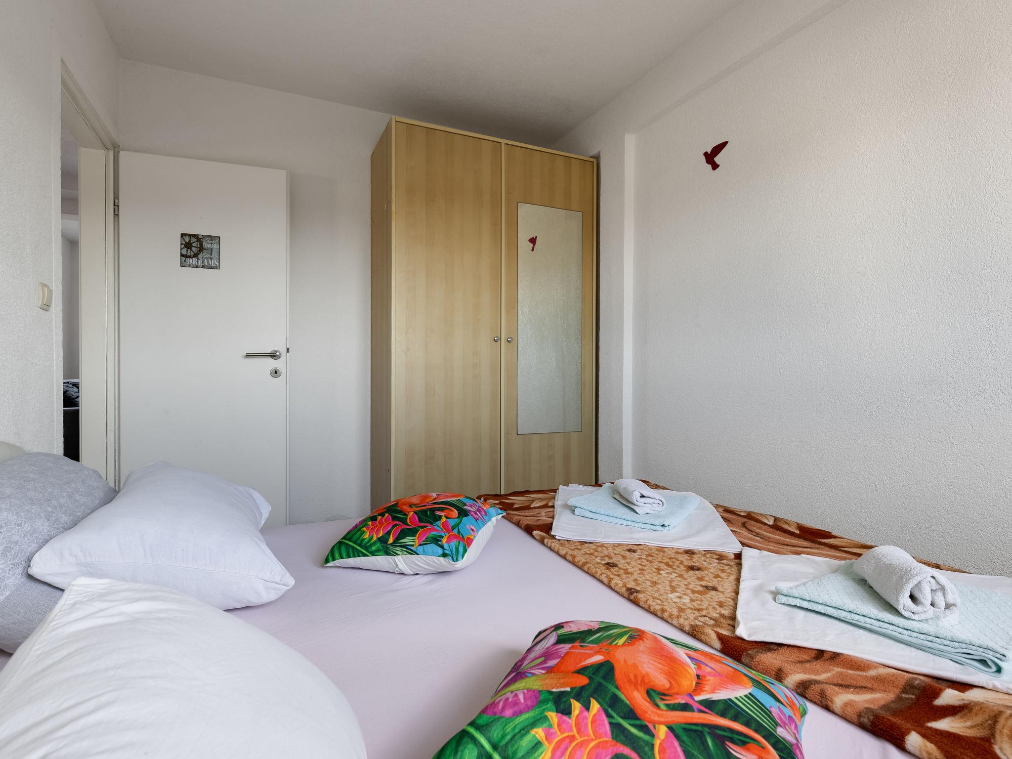 2-Zimmer-Wohnung 42 m2 im 2. Stock, Südostlage. Wohn-/Esszimmer mit 1 Doppeldiwanbett (160 cm, Länge 200 cm), Sat-TV (Flachbildschirm), Klimaanlage. Ausgang zum Balkon. 1 Zimmer mit 1 franz. Bett (160 cm, Länge 200 cm). Offene Küche (2 Kochplatten, Wasserkocher, elektrische Kaffeemaschine). Dusche/WC. Keine Heizmöglichkeit. Balkon 5 m2. Balkonmöbel. Schöne, auf das Meer. Zur Verfügung: Haartrockner. Internet (WLAN).