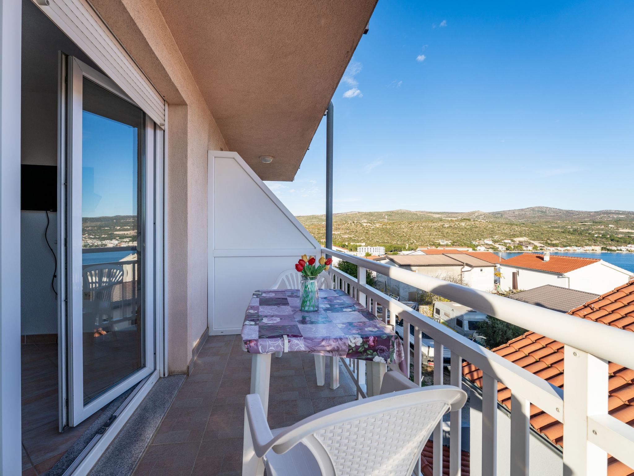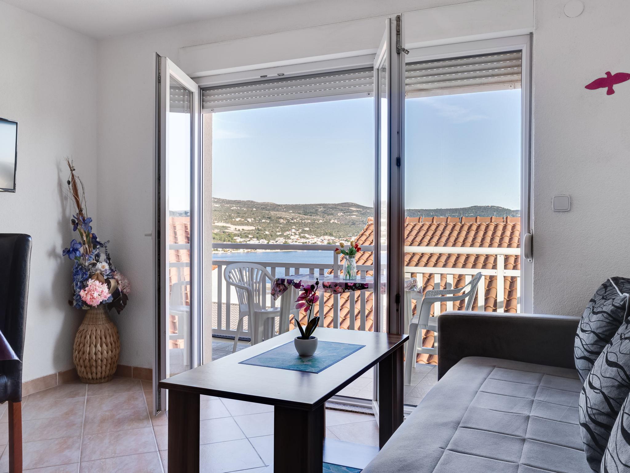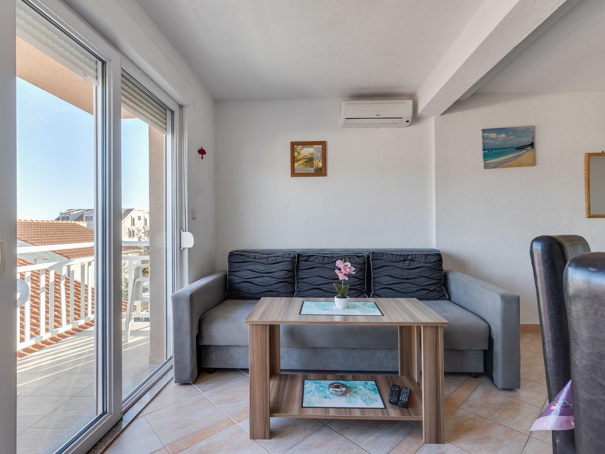2-Zimmer-Wohnung 42 m2 im 2. Stock, Südostlage. Wohn-/Esszimmer mit 1 Doppeldiwanbett (160 cm, Länge 200 cm), Sat-TV (Flachbildschirm), Klimaanlage. Ausgang zum Balkon. 1 Zimmer mit 1 franz. Bett (160 cm, Länge 200 cm). Offene Küche (2 Kochplatten, Wasserkocher, elektrische Kaffeemaschine). Dusche/WC. Keine Heizmöglichkeit. Balkon 5 m2. Balkonmöbel. Schöne, auf das Meer. Zur Verfügung: Haartrockner. Internet (WLAN).