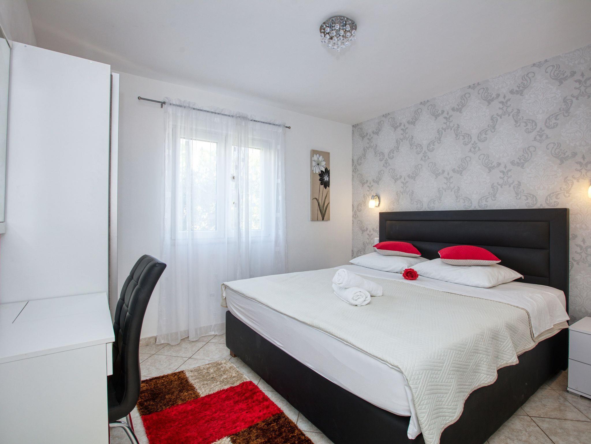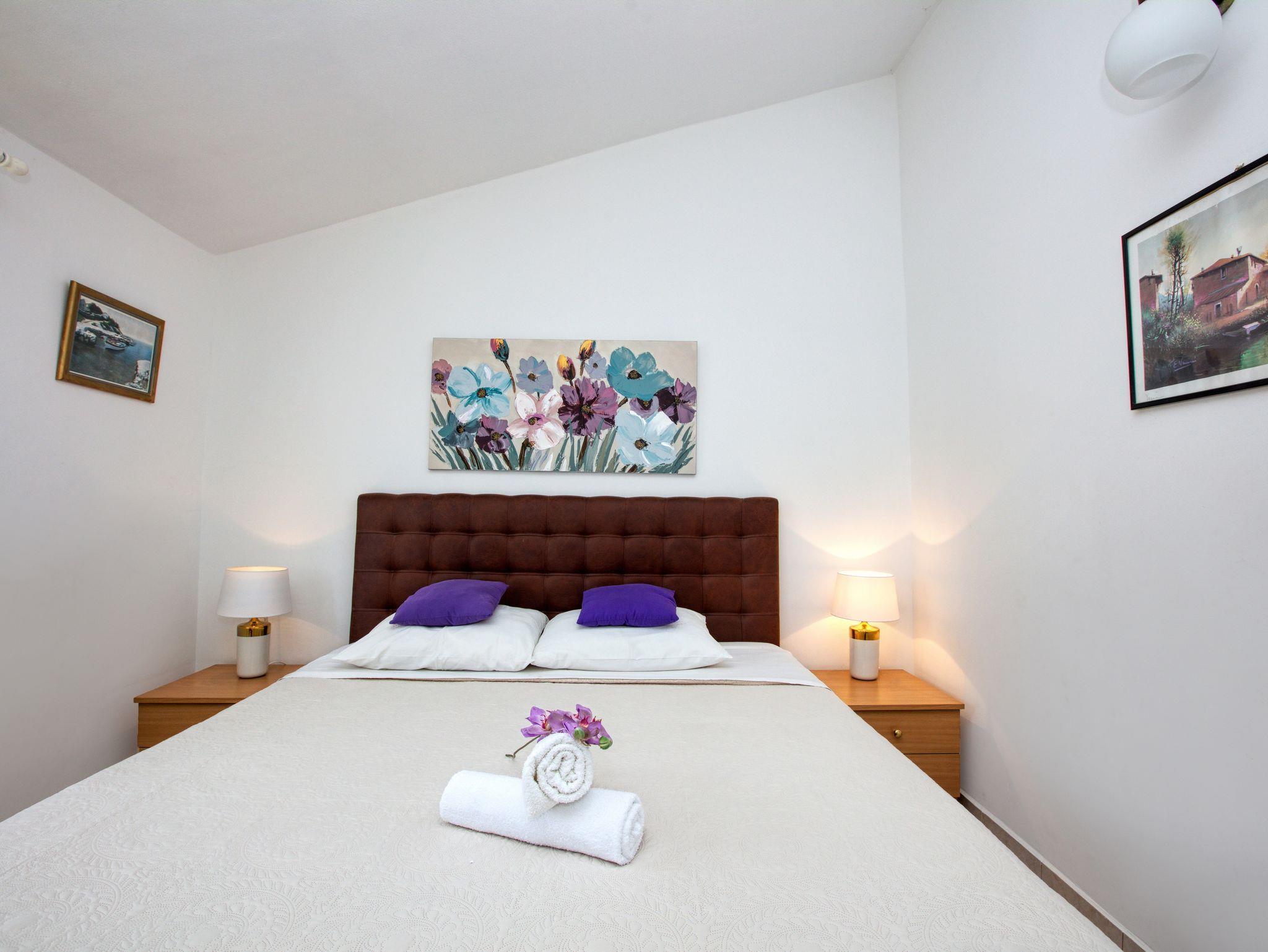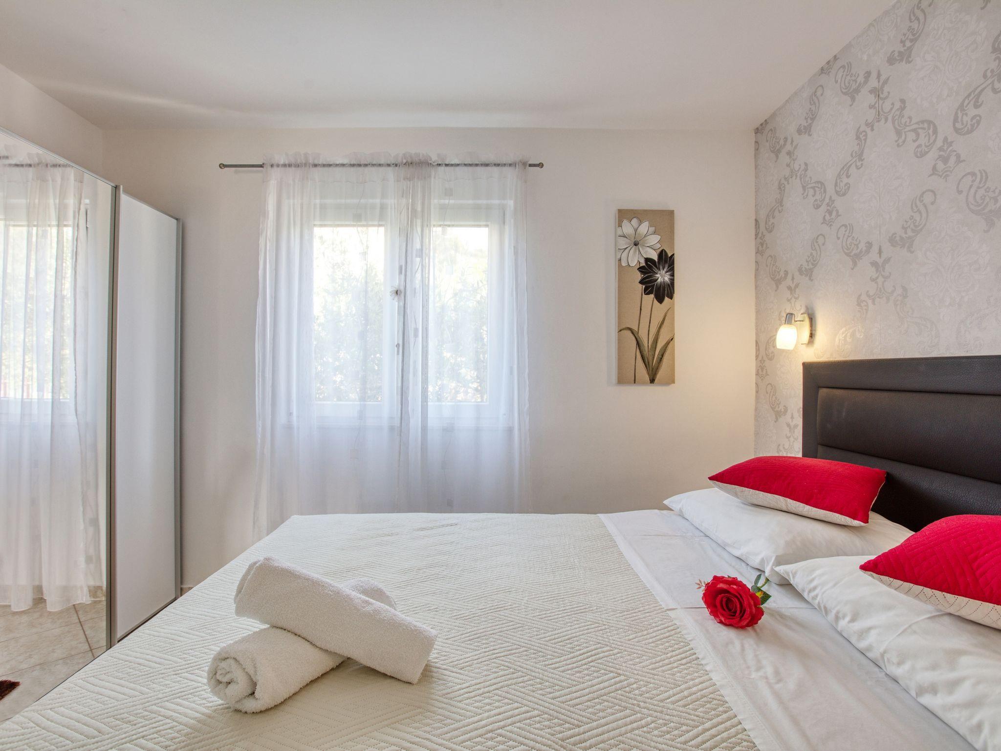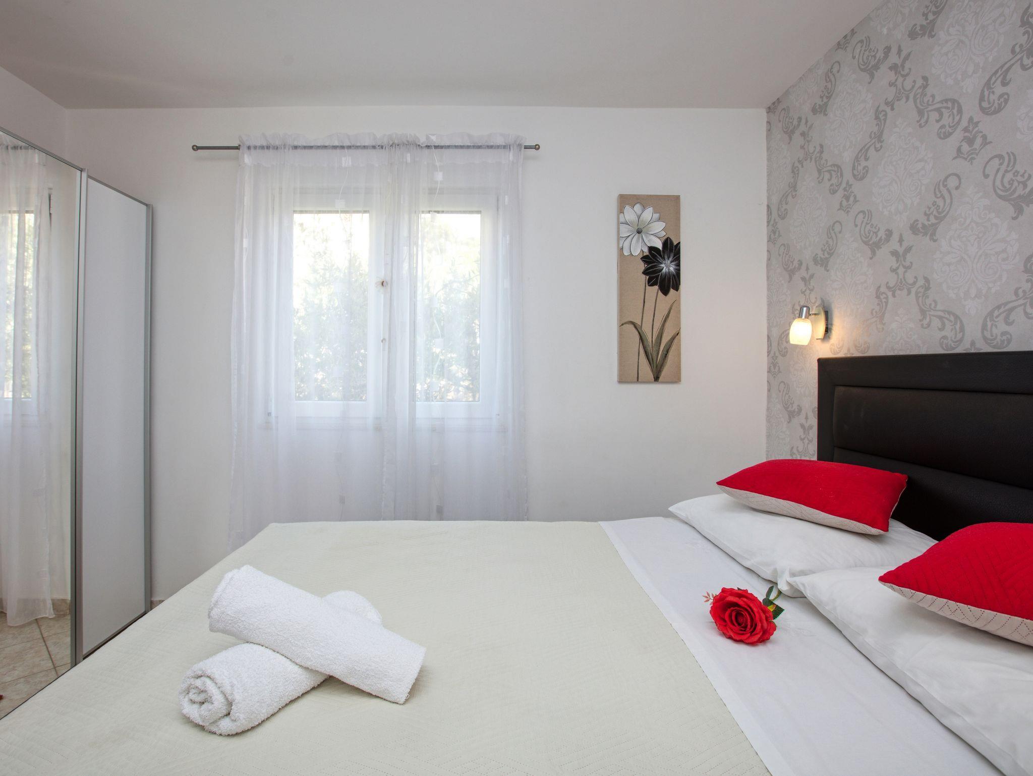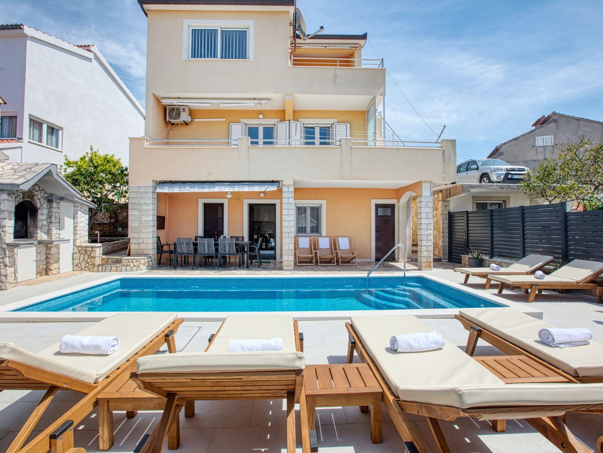 Haus bietet Platz für 10 Gäste. Die Betten sind in Schlafzimmern, die es 4 gibt, und in Wohnzimmer, innerhalb einer Gesamtfläche von 122m2, angeordnet. Die Gäste haben eine eigene Terrasse zur Verfügung, auf der sie in warmen Sommernächten genießen können. Das Haus bietet Meerblick. Für vollen Genuss und Entspannung gibt es einen privaten Grill für Gäste dieser Unterkunft. Während ihres Aufenthalts können sich Gäste im privaten Schwimmbad entspannen. IM PREIS INBEGRIFFEN: Kurtaxe, Endreinigung, Klimatisierung, Pool, Parkplatz, Internet, Kinderbett, Bügeleisen, Bügelbrett, Föhn, Sonnenschirm, Liegestühle. UNVERBINDLICHE ZUSÄTZLICHE KOSTEN: Bootsanlegeplatz (20,00 € pro Nacht). Die Verfügbarkeit zusätzlicher Dienstleistungen in Ihrem reservierten Termin und die Preise derselben (falls nicht aufgeführt) müssen im Voraus überprüft werden. Zusätzliche Dienstleistungen die in der Zahlungsaufforderung nicht aufgeführt sind werden direkt beim Vermieter bezahlt, angenommen der Gast nutzt auch diese. Ermäßigung auf den Grundpreis: Gratistag 14=13 (bei einem Aufenthalt von 14 Tagen oder mehr erhalten Sie einen Gratistag für den Aufenthalt bis 31.12.26).