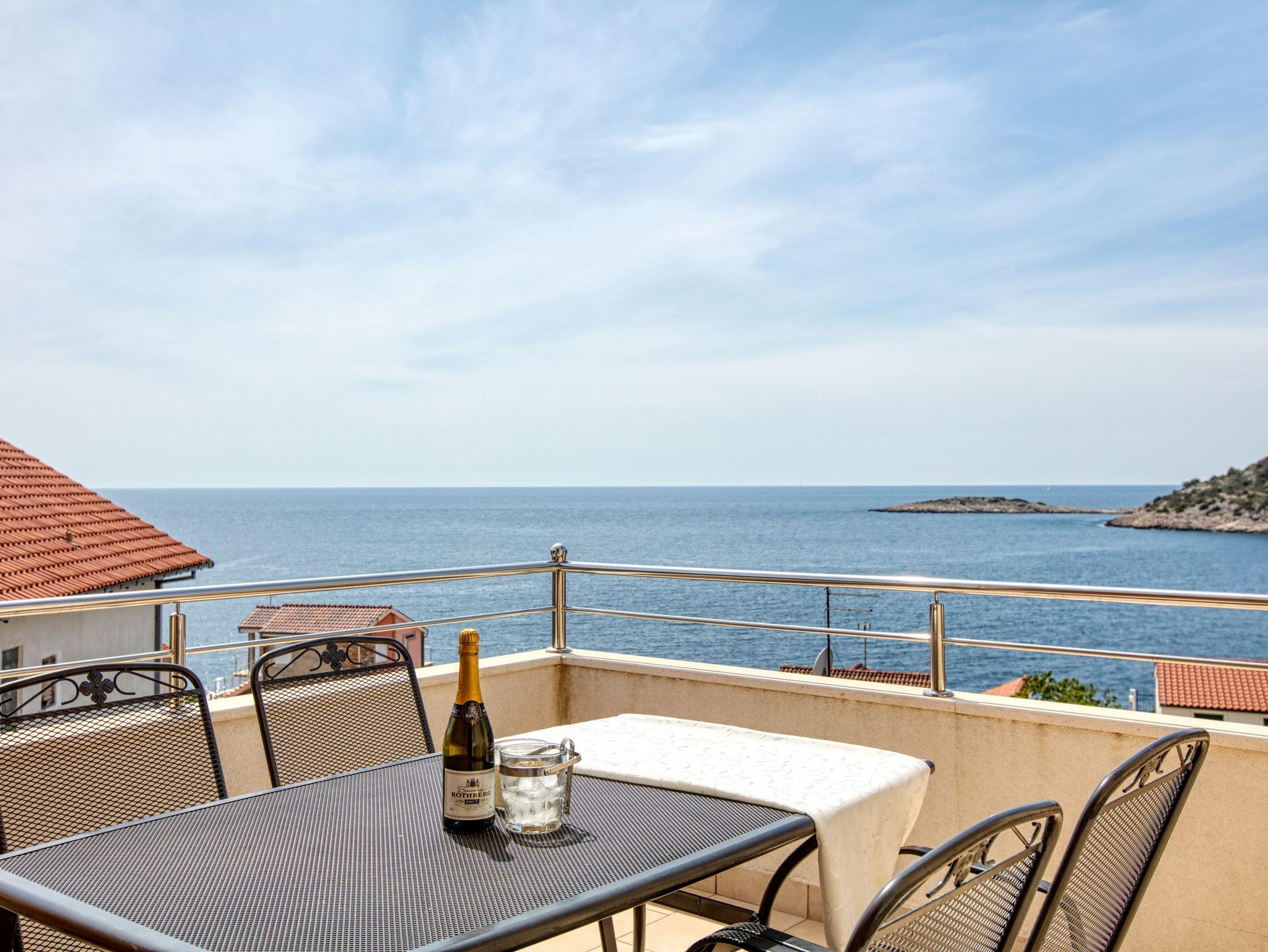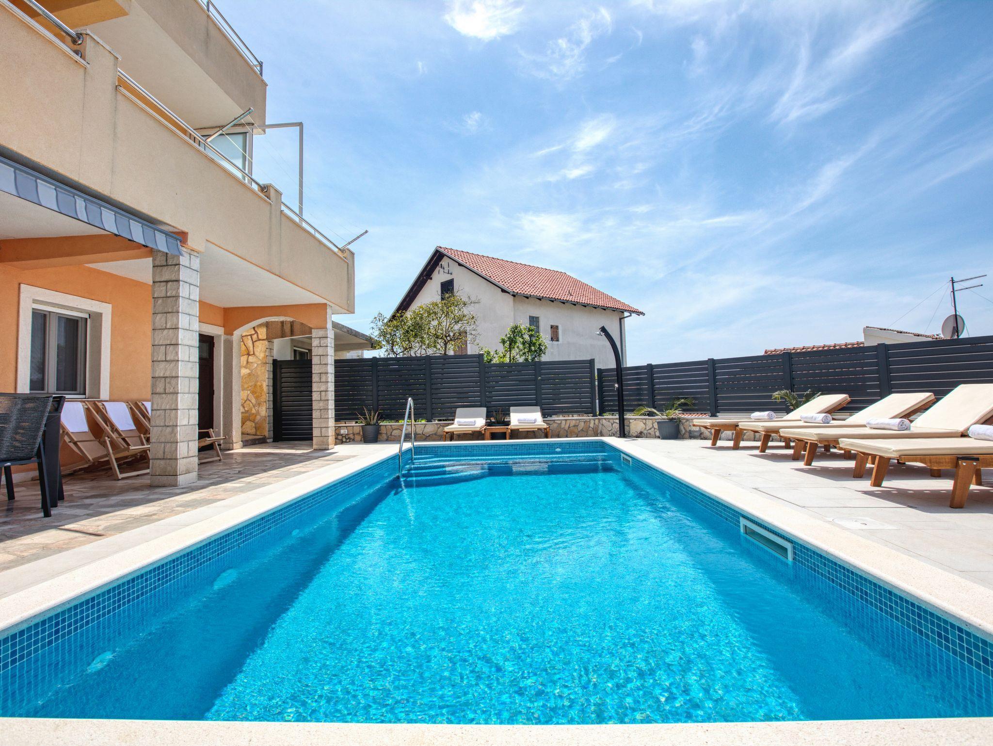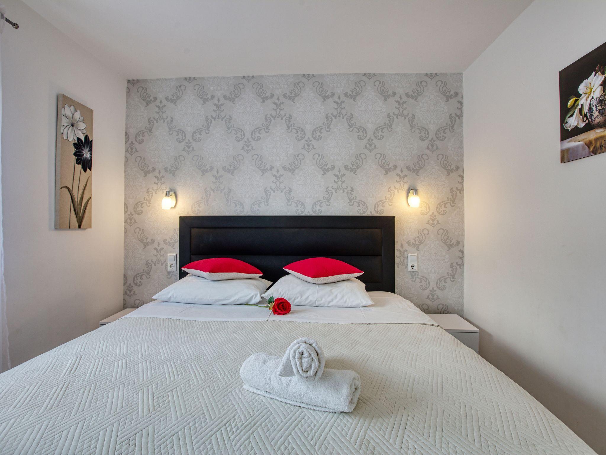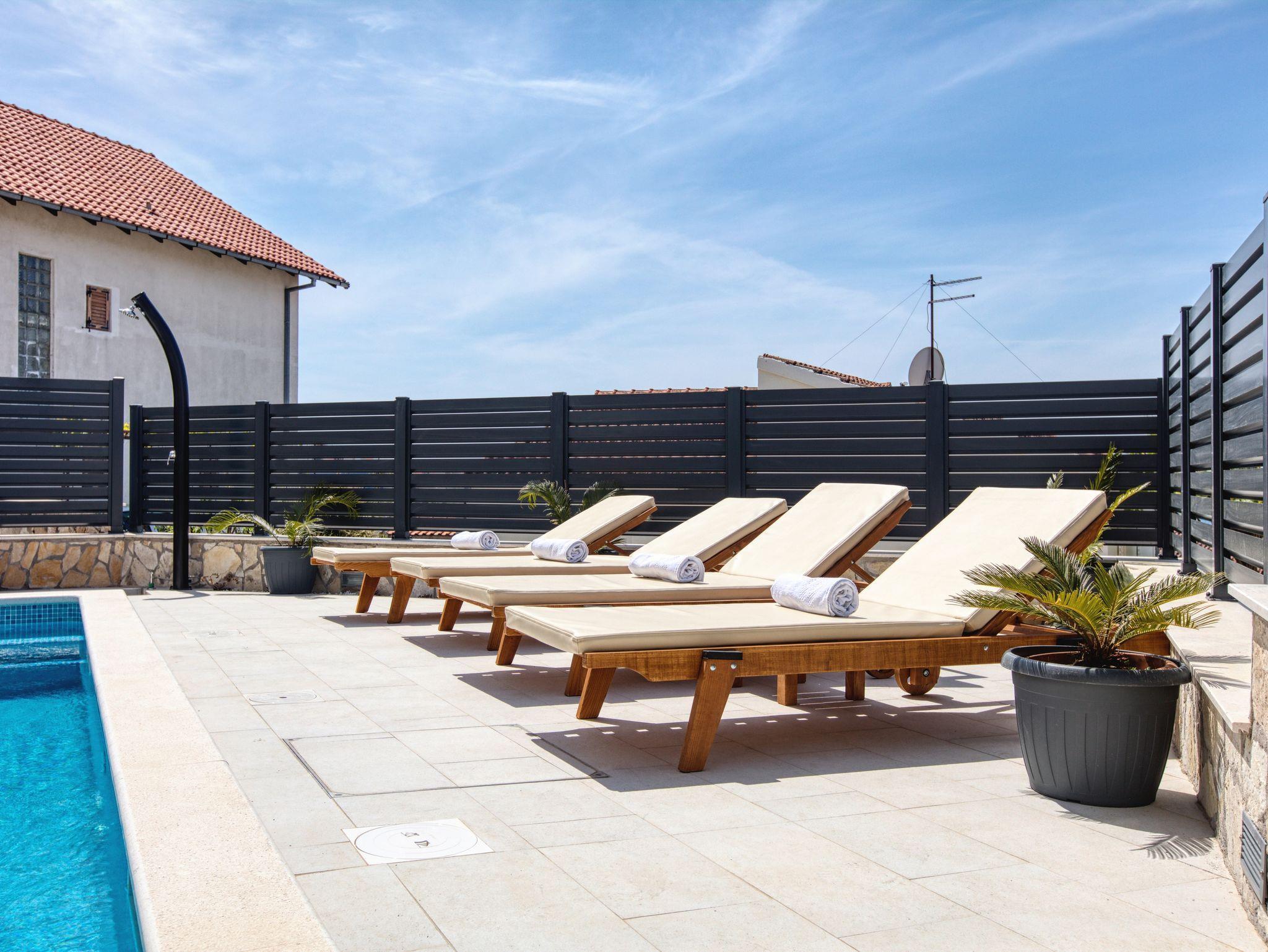 Haus bietet Platz für 10 Gäste. Die Betten sind in Schlafzimmern, die es 4 gibt, und in Wohnzimmer, innerhalb einer Gesamtfläche von 122m2, angeordnet. Die Gäste haben eine eigene Terrasse zur Verfügung, auf der sie in warmen Sommernächten genießen können. Das Haus bietet Meerblick. Für vollen Genuss und Entspannung gibt es einen privaten Grill für Gäste dieser Unterkunft. Während ihres Aufenthalts können sich Gäste im privaten Schwimmbad entspannen. IM PREIS INBEGRIFFEN: Kurtaxe, Endreinigung, Klimatisierung, Pool, Parkplatz, Internet, Kinderbett, Bügeleisen, Bügelbrett, Föhn, Sonnenschirm, Liegestühle. UNVERBINDLICHE ZUSÄTZLICHE KOSTEN: Bootsanlegeplatz (20,00 € pro Nacht). Die Verfügbarkeit zusätzlicher Dienstleistungen in Ihrem reservierten Termin und die Preise derselben (falls nicht aufgeführt) müssen im Voraus überprüft werden. Zusätzliche Dienstleistungen die in der Zahlungsaufforderung nicht aufgeführt sind werden direkt beim Vermieter bezahlt, angenommen der Gast nutzt auch diese. Ermäßigung auf den Grundpreis: Gratistag 14=13 (bei einem Aufenthalt von 14 Tagen oder mehr erhalten Sie einen Gratistag für den Aufenthalt bis 31.12.26).
