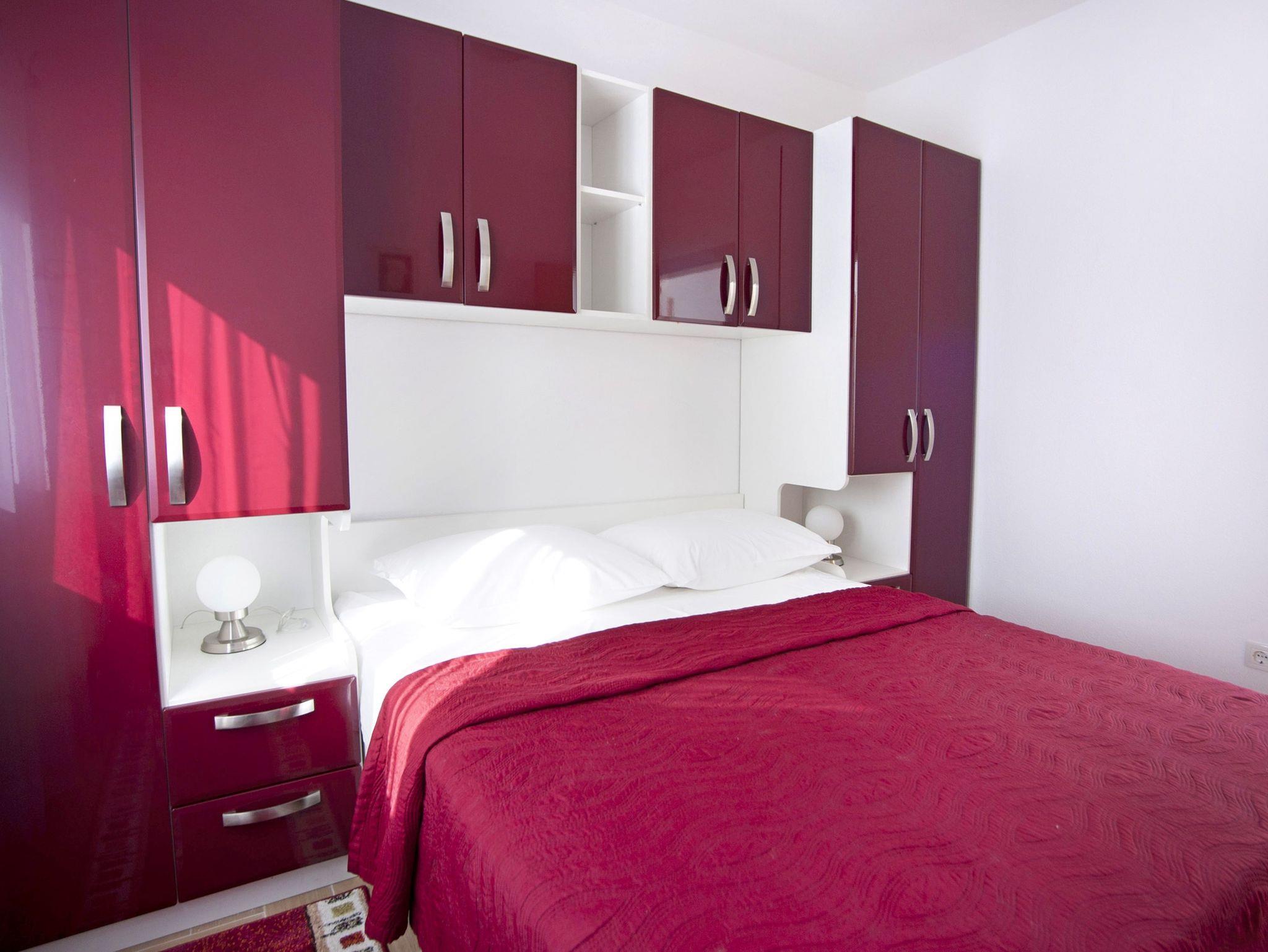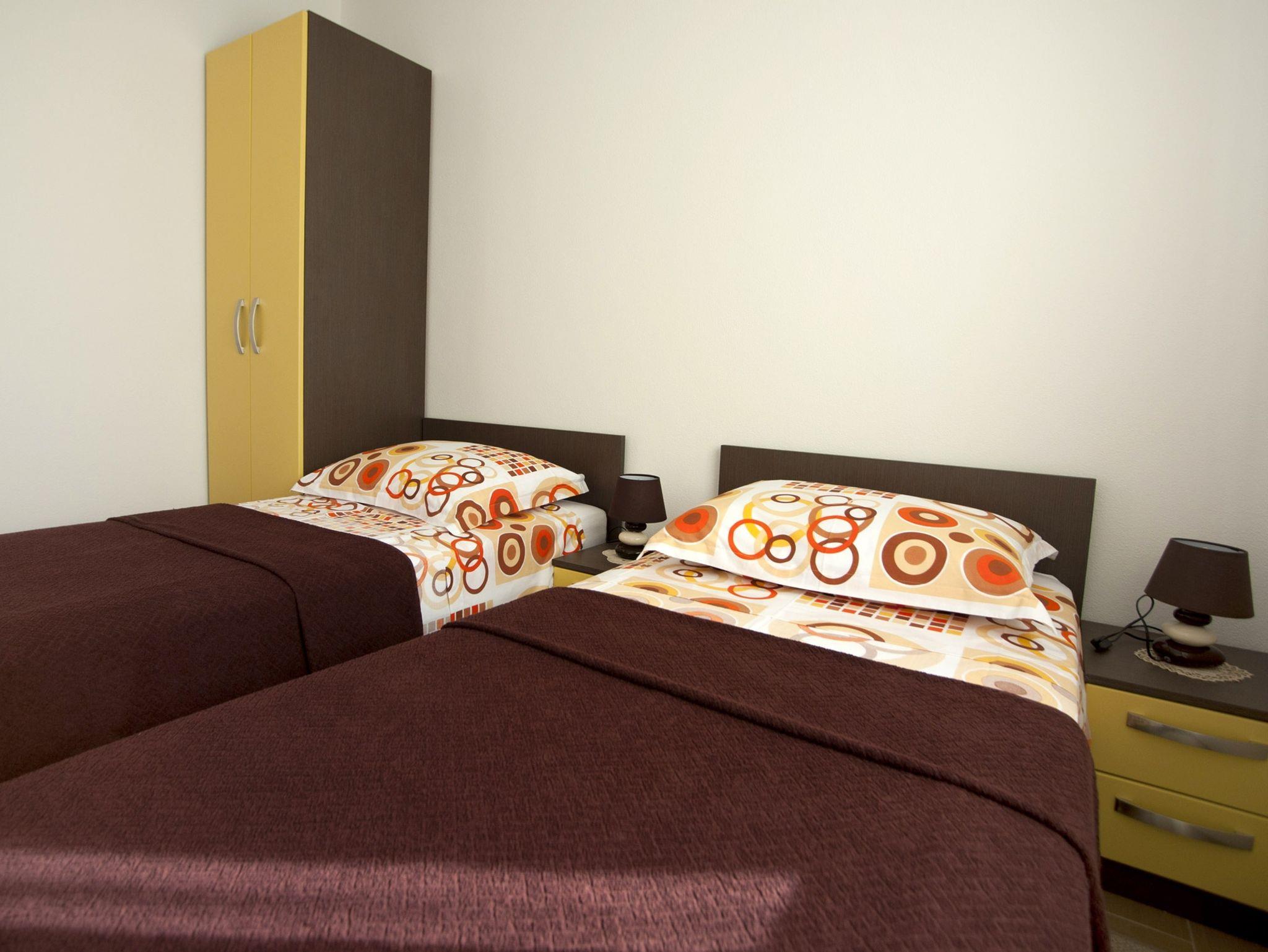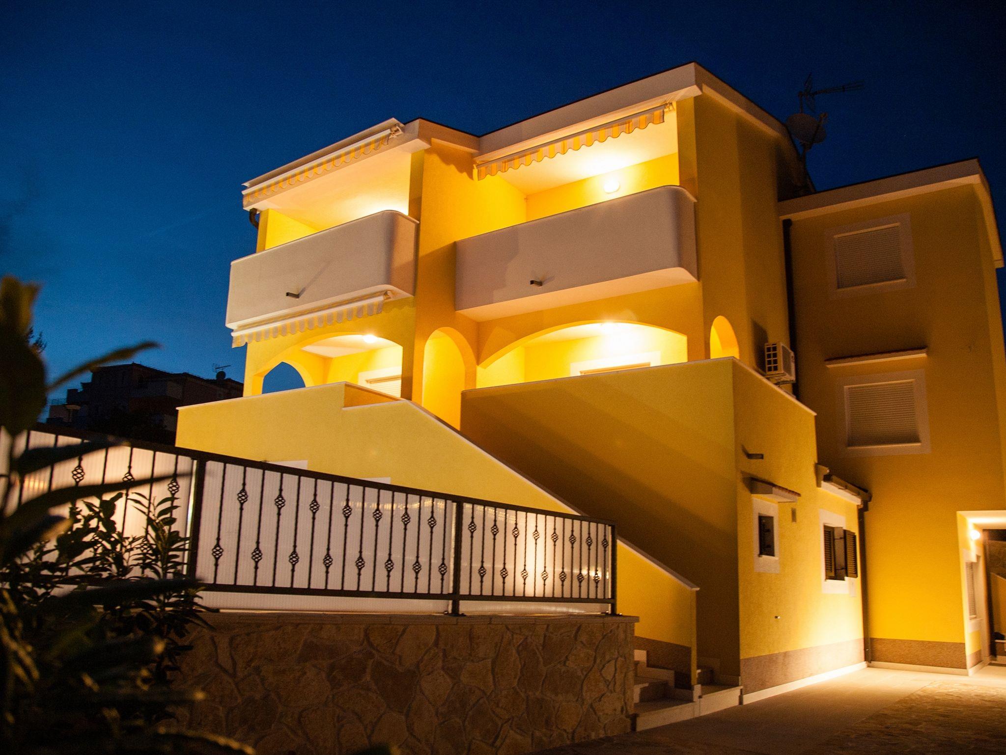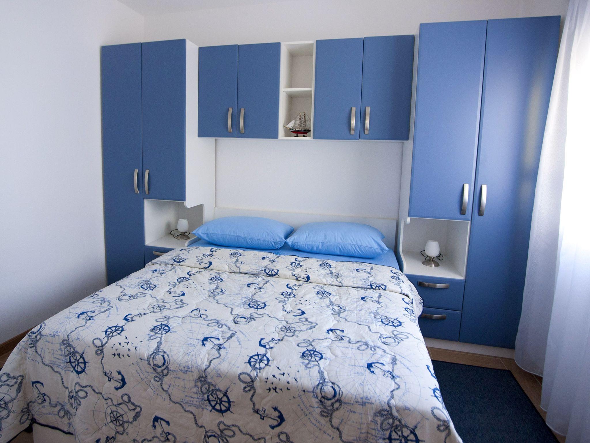 Ferienwohnung bietet Platz für 6 Gäste. Die Betten sind in Schlafzimmern, die es 3 gibt, innerhalb einer Gesamtfläche von 76m2, angeordnet. Die Gäste haben eine eigene Terrasse zur Verfügung, auf der sie in warmen Sommernächten genießen können. Das Apartment bietet Meerblick. Es ist erlaubt, Speisen auf dem Gemeinschafts-Grill vorzubereiten. Während ihres Aufenthalts können Gäste das gemeinsam zur Nutzung stehende Schwimmbad benutzen. IM PREIS INBEGRIFFEN: Kurtaxe, Endreinigung, Klimatisierung, Pool, Parkplatz, Internet, Bügeleisen, Föhn. VERBINDLICHE ZUSÄTZLICHE KOSTEN: Aufzahlung für Kurzaufenthalte (prozentualer Zuschlag pro Nächtigungsanzahl: 30% - 1, 20% - 2, 10% - 3). Die Verfügbarkeit zusätzlicher Dienstleistungen in Ihrem reservierten Termin und die Preise derselben (falls nicht aufgeführt) müssen im Voraus überprüft werden. Zusätzliche Dienstleistungen die in der Zahlungsaufforderung nicht aufgeführt sind werden direkt beim Vermieter bezahlt, angenommen der Gast nutzt auch diese.