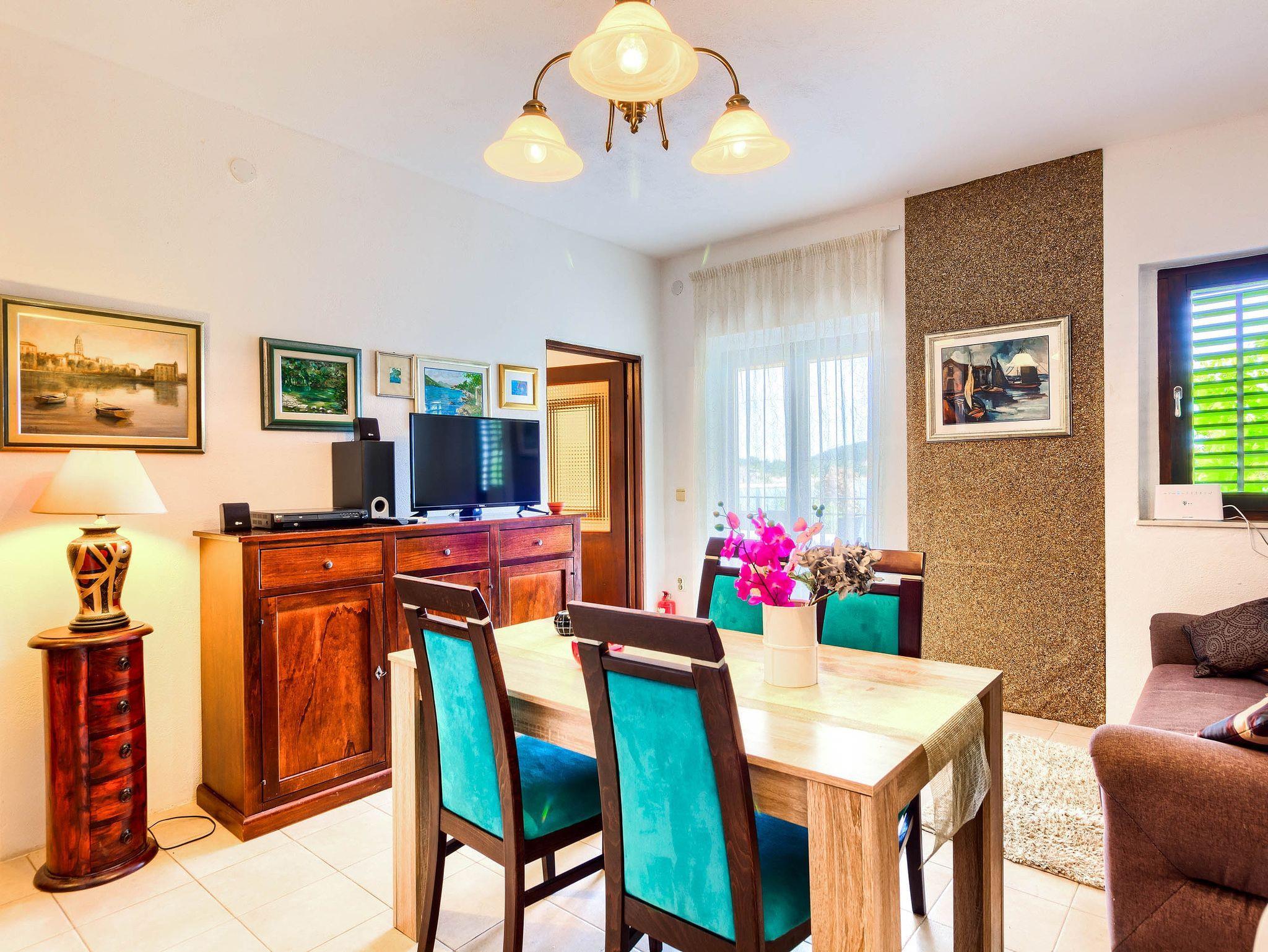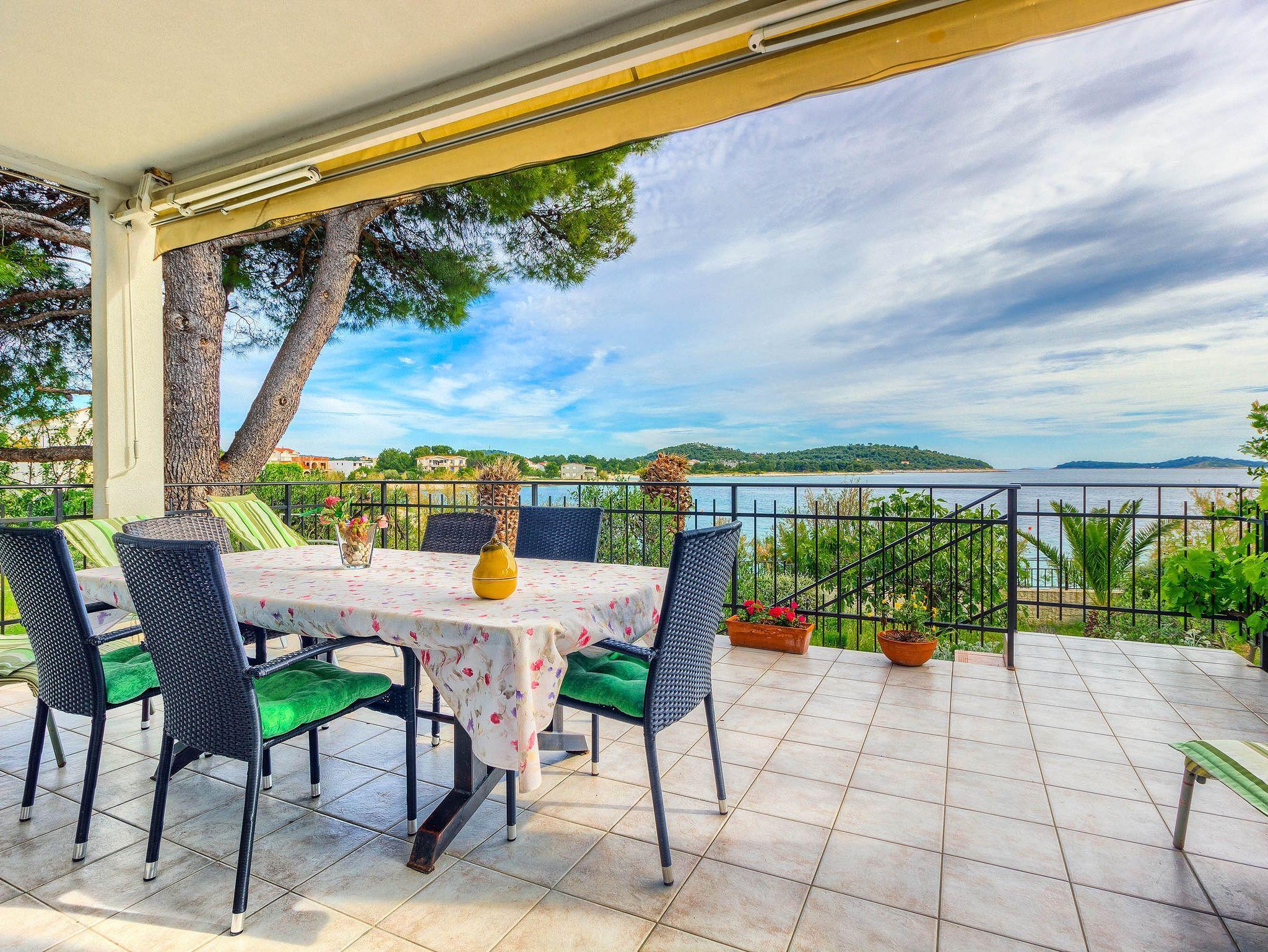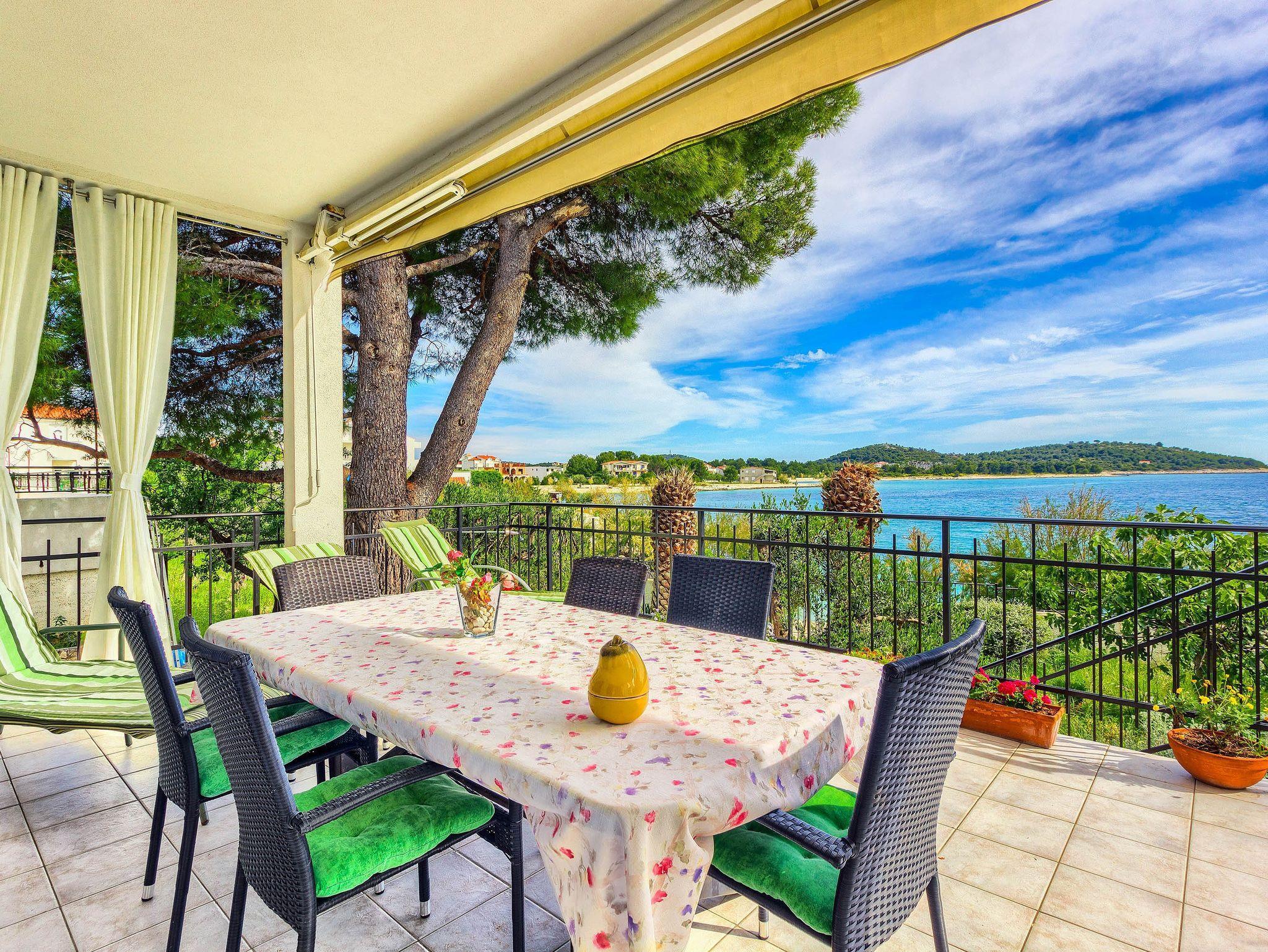 Ferienwohnung bietet Platz für 6 Gäste. Die Betten sind in Schlafzimmern, die es 2 gibt, und in Wohnzimmer, innerhalb einer Gesamtfläche von 45m2, angeordnet. Die Gäste haben eine eigene Terrasse zur Verfügung, auf der sie in warmen Sommernächten genießen können. Das Apartment bietet Meerblick. Es ist erlaubt, Speisen auf dem Gemeinschafts-Grill vorzubereiten. In der Unterkunftseinheit besteht die Möglichkeit des Mitbringens von Haustieren gegen Aufpreis. IM PREIS INBEGRIFFEN: Kurtaxe, Endreinigung, Klimatisierung, Parkplatz, Internet, Bootsanlegeplatz, Kinderbett, Bügeleisen, Bügelbrett, Föhn, tragbarer Grill, Sonnenschirm, Liegestühle. UNVERBINDLICHE ZUSÄTZLICHE KOSTEN: Haustiere (5,00 € pro Nacht). Die Verfügbarkeit zusätzlicher Dienstleistungen in Ihrem reservierten Termin und die Preise derselben (falls nicht aufgeführt) müssen im Voraus überprüft werden. Zusätzliche Dienstleistungen die in der Zahlungsaufforderung nicht aufgeführt sind werden direkt beim Vermieter bezahlt, angenommen der Gast nutzt auch diese. Ermäßigung auf den Grundpreis: Gratistag 14=13 (bei einem Aufenthalt von 14 Tagen oder mehr erhalten Sie einen Gratistag für den Aufenthalt bis 31.12.26).