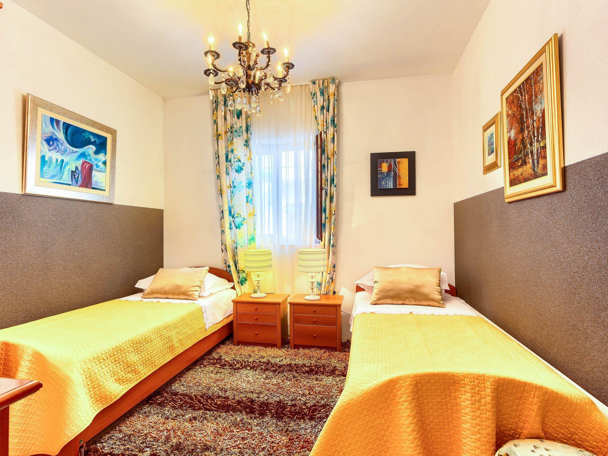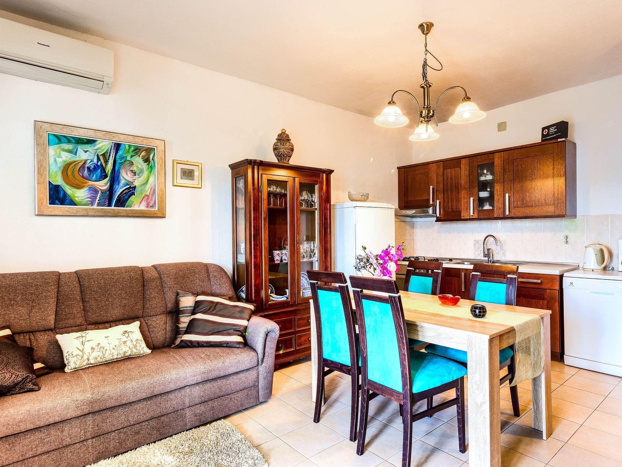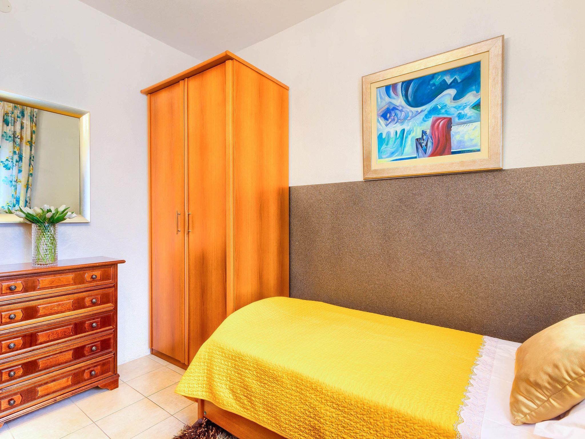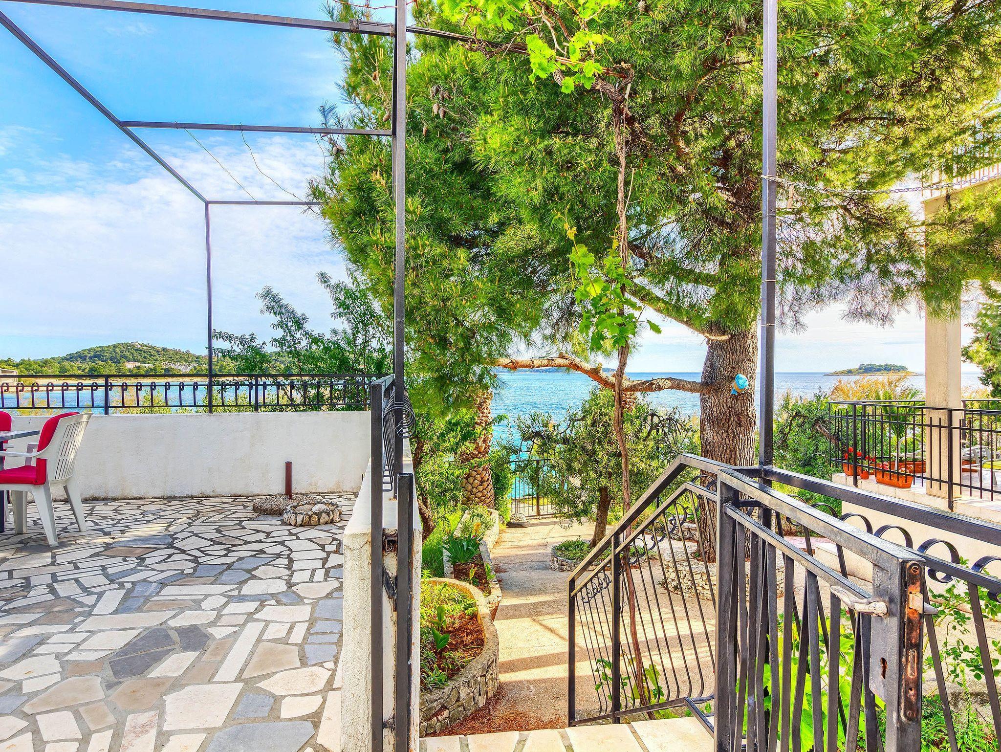 Ferienwohnung bietet Platz für 6 Gäste. Die Betten sind in Schlafzimmern, die es 2 gibt, und in Wohnzimmer, innerhalb einer Gesamtfläche von 45m2, angeordnet. Die Gäste haben eine eigene Terrasse zur Verfügung, auf der sie in warmen Sommernächten genießen können. Das Apartment bietet Meerblick. Es ist erlaubt, Speisen auf dem Gemeinschafts-Grill vorzubereiten. In der Unterkunftseinheit besteht die Möglichkeit des Mitbringens von Haustieren gegen Aufpreis. IM PREIS INBEGRIFFEN: Kurtaxe, Endreinigung, Klimatisierung, Parkplatz, Internet, Bootsanlegeplatz, Kinderbett, Bügeleisen, Bügelbrett, Föhn, tragbarer Grill, Sonnenschirm, Liegestühle. UNVERBINDLICHE ZUSÄTZLICHE KOSTEN: Haustiere (5,00 € pro Nacht). Die Verfügbarkeit zusätzlicher Dienstleistungen in Ihrem reservierten Termin und die Preise derselben (falls nicht aufgeführt) müssen im Voraus überprüft werden. Zusätzliche Dienstleistungen die in der Zahlungsaufforderung nicht aufgeführt sind werden direkt beim Vermieter bezahlt, angenommen der Gast nutzt auch diese. Ermäßigung auf den Grundpreis: Gratistag 14=13 (bei einem Aufenthalt von 14 Tagen oder mehr erhalten Sie einen Gratistag für den Aufenthalt bis 31.12.26).