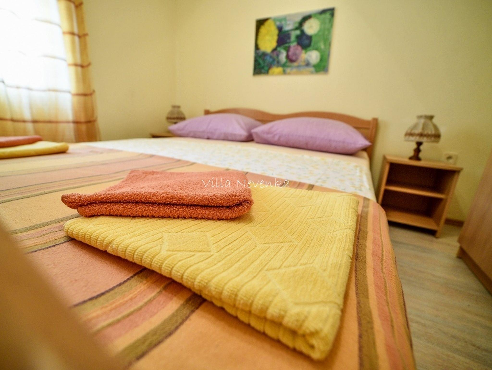 Ferienwohnung bietet Platz für 10 Gäste. Die Betten sind in Schlafzimmern, die es 4 gibt, und in Wohnzimmer, innerhalb einer Gesamtfläche von 76m2, angeordnet. Die Gäste haben eine eigene Terrasse zur Verfügung, auf der sie in warmen Sommernächten genießen können. Das Apartment bietet Meerblick. Es ist erlaubt, Speisen auf dem Gemeinschafts-Grill vorzubereiten. In der Unterkunftseinheit besteht die Möglichkeit des Mitbringens von Haustieren gegen Aufpreis. IM PREIS INBEGRIFFEN: Kurtaxe, Endreinigung, Klimatisierung, Parkplatz, Internet, Wäschewaschen, Kinderbett, Föhn. UNVERBINDLICHE ZUSÄTZLICHE KOSTEN: Haustiere (10,00 € pro Nacht). Die Verfügbarkeit zusätzlicher Dienstleistungen in Ihrem reservierten Termin und die Preise derselben (falls nicht aufgeführt) müssen im Voraus überprüft werden. Zusätzliche Dienstleistungen die in der Zahlungsaufforderung nicht aufgeführt sind werden direkt beim Vermieter bezahlt, angenommen der Gast nutzt auch diese.
