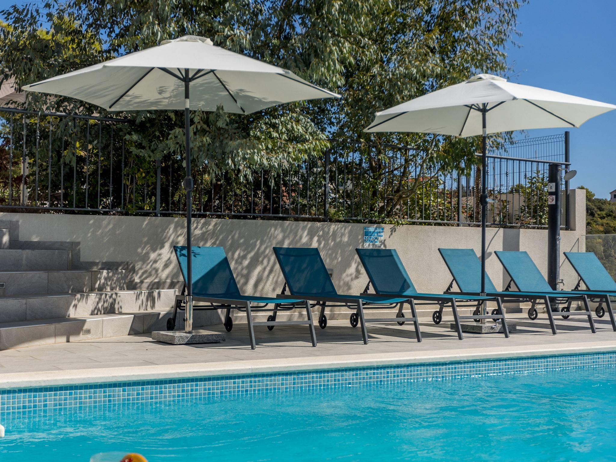 Haus bietet Platz für 14 Gäste. Die Betten sind in Schlafzimmern, die es 6 gibt, und in Wohnzimmer, innerhalb einer Gesamtfläche von 143m2, angeordnet. Die Gäste haben eine eigene Terrasse zur Verfügung, auf der sie in warmen Sommernächten genießen können. Das Haus bietet Meerblick. Für vollen Genuss und Entspannung gibt es einen privaten Grill für Gäste dieser Unterkunft. Während ihres Aufenthalts können sich Gäste im privaten Schwimmbad entspannen. In der gebuchten Unterkunftseinheit zahlt man am Ort ein Depositum ( der Preis ist an der Internetseite angeführt ). IM PREIS INBEGRIFFEN: Kurtaxe, Endreinigung, Klimatisierung, Pool, Parkplatz, Internet, Kinderbett, Zusatzbett, Bügeleisen, Bügelbrett, Föhn, Liegestühle. VERBINDLICHE ZUSÄTZLICHE KOSTEN: Kaution (700,00 € Einmalzahlung). Die Verfügbarkeit zusätzlicher Dienstleistungen in Ihrem reservierten Termin und die Preise derselben (falls nicht aufgeführt) müssen im Voraus überprüft werden. Zusätzliche Dienstleistungen die in der Zahlungsaufforderung nicht aufgeführt sind werden direkt beim Vermieter bezahlt, angenommen der Gast nutzt auch diese.