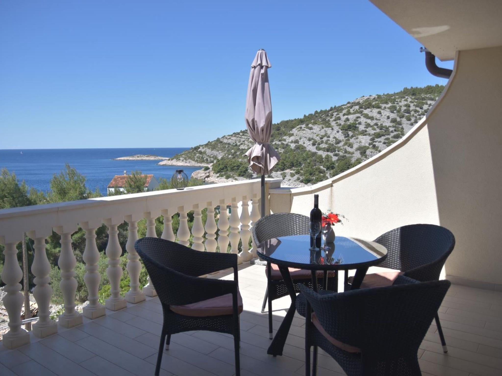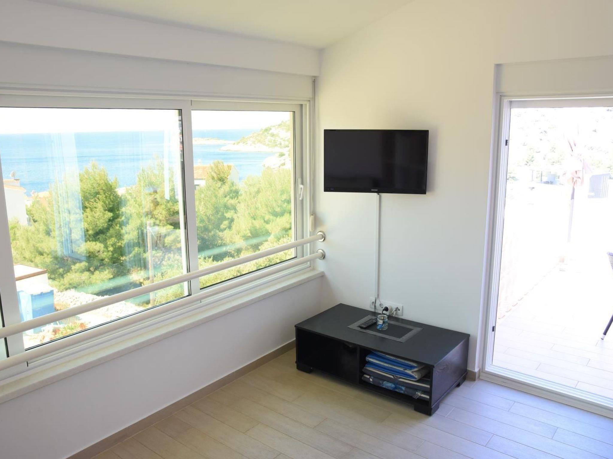 Sowohl vom Schlafzimmer, als auch vom Wohnraum aus gelangen Sie auf die geräumige Terrasse. Da die Villa alle Häuser in der Umgebung überragt, ist die Aussicht von der Hochterrasse aus beeindruckend. Das Loft bietet damit den besten Blick aufs Meer als auch auf die Bucht.