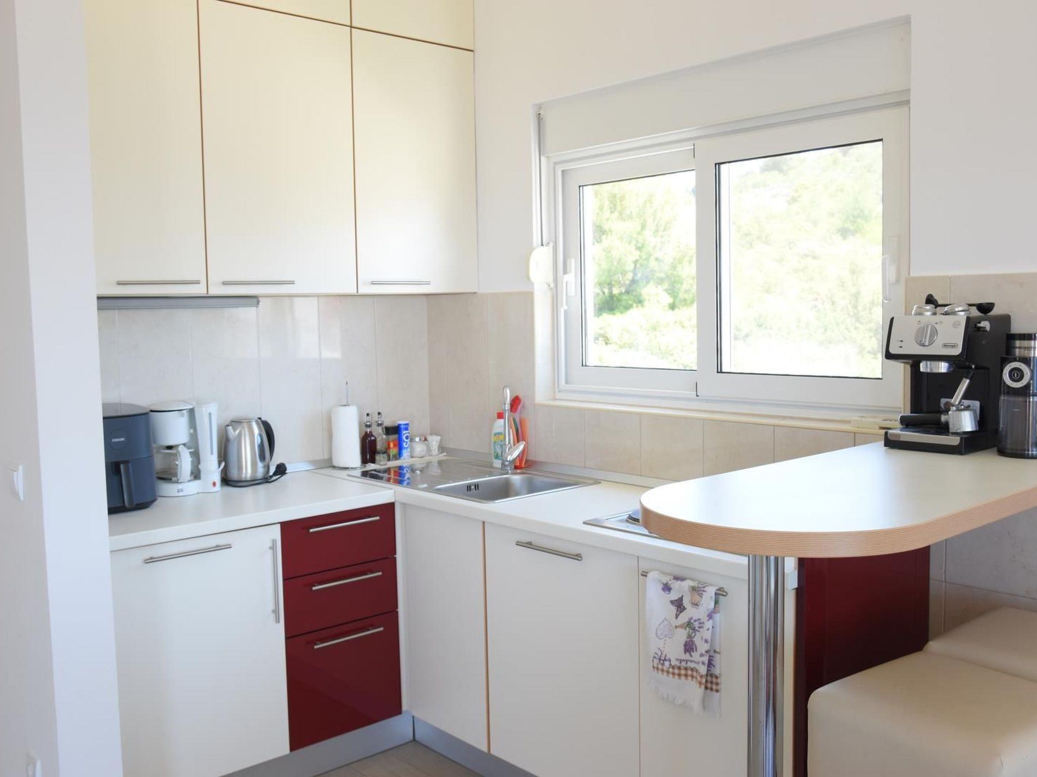 Vom Haus aus sind es 150 m bis zum Strand. Der Strand direkt am Haus geht relativ steil ins Meer, deswegen sind Leitern angebracht. Auf der anderen Seite der Bucht (5 min zu Fuß) befindet sich noch ein Strand (Kiesel), der flach ins Wasser führt. Dieser ist für kleinere Kinder und Nichtschwimmer geeignet.
