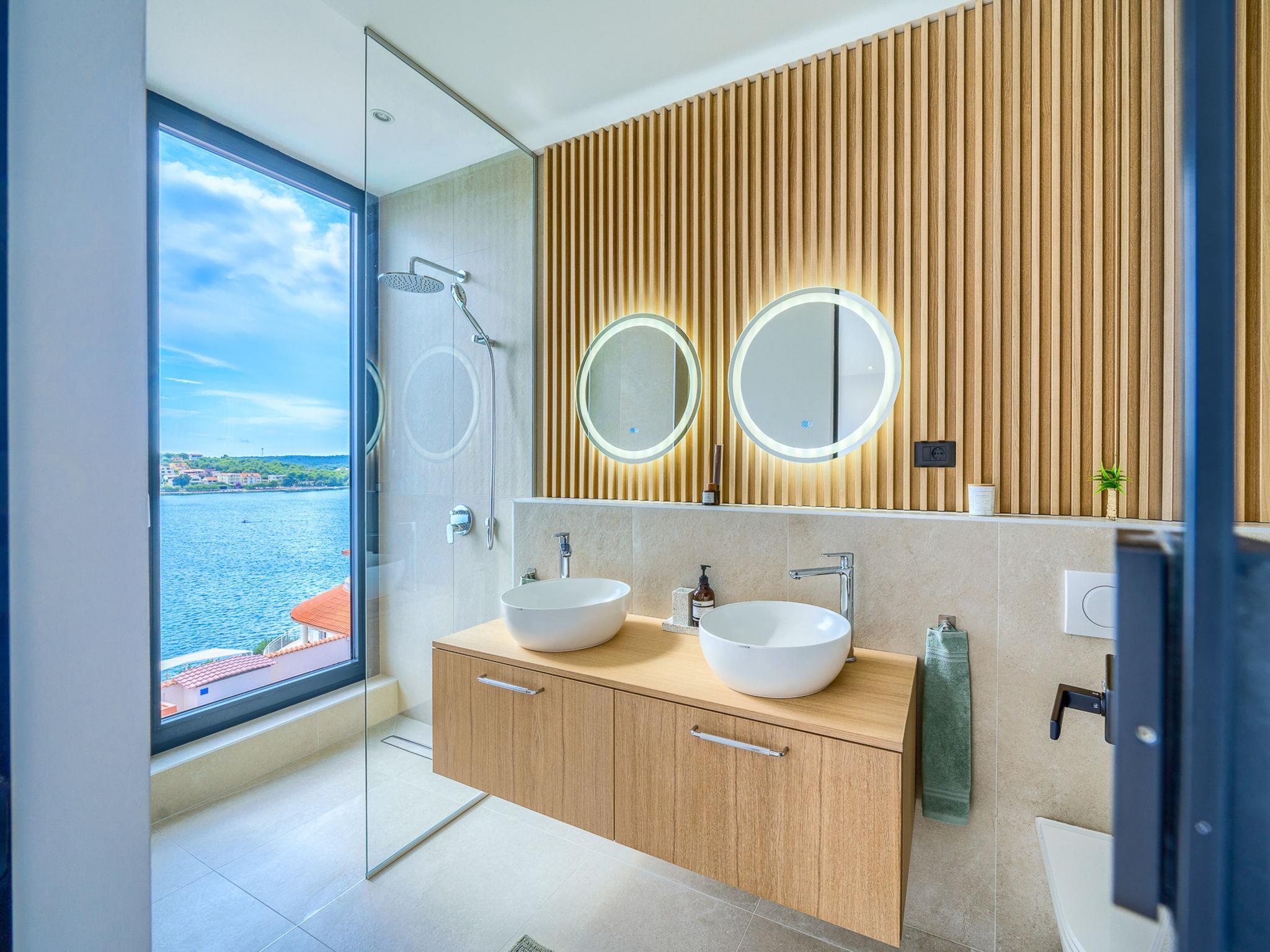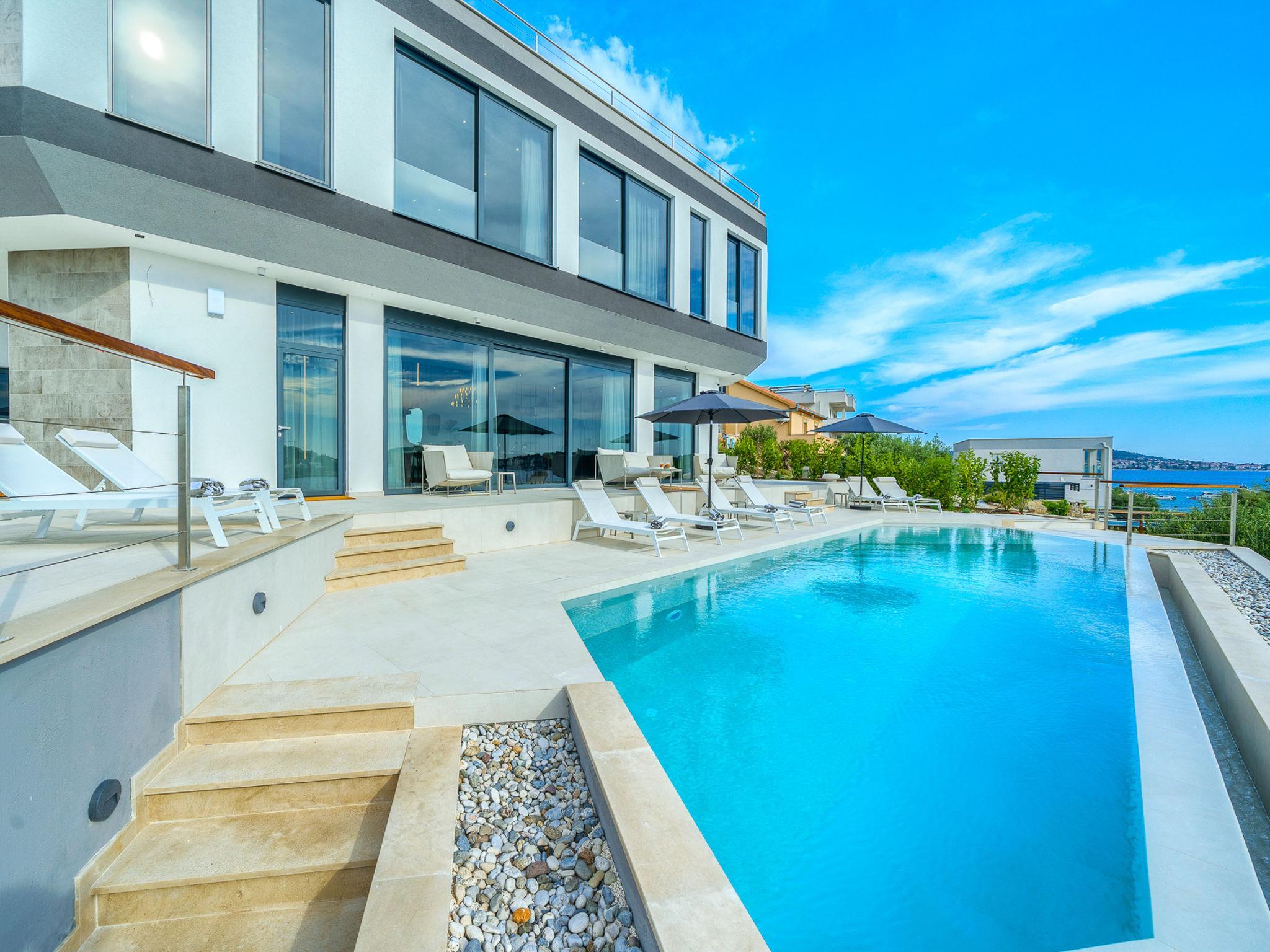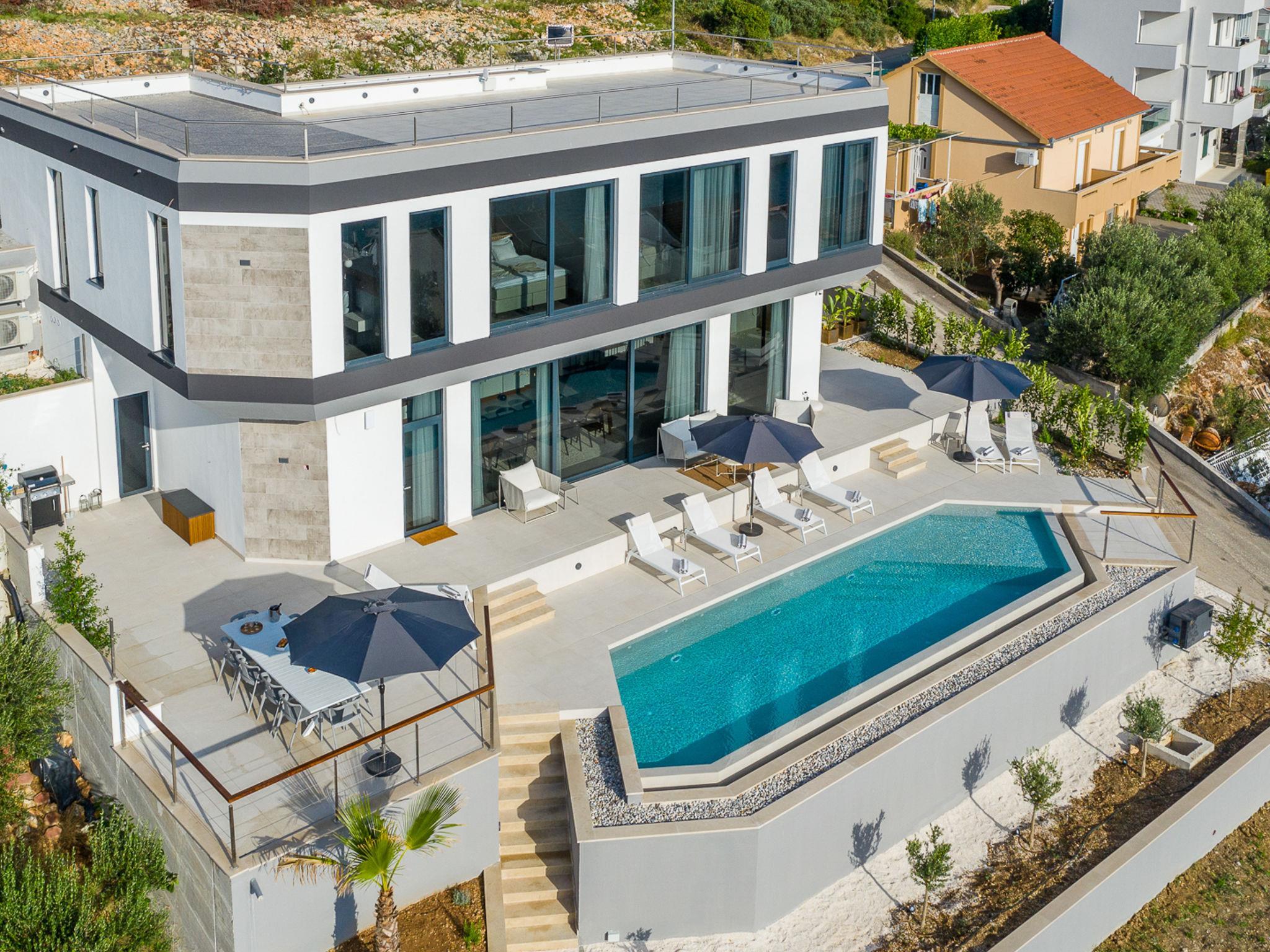 Freistehende Villa "Allina", auf 2 Stockwerken. Zatoglav, 5 km vom Zentrum von Rogoznica, ruhige, sonnige, erhöhte Lage, 50 m vom Meer, 180 m vom Strand, Richtung Westen. Zur Alleinbenutzung: Grundstück 750 m2, Schwimmbad eckig (50 m2, 150 cm tief, saisonale Verfügbarkeit: 01.Mai. - 01.Okt.). Aussendusche, Terrasse (15 m2), Grill. Im Hause: Internetzugang, Wireless LAN, Waschmaschine, Wäschetrockner. Parkplatz (für 3 Autos) beim Haus auf dem Grundstück. Einkaufsgeschäft 4 km, Restaurant 5 km, Bäckerei 4 km, Bushaltestelle 1.5 km, Felsstrand 180 m. Jacht-Hafen 5 km.