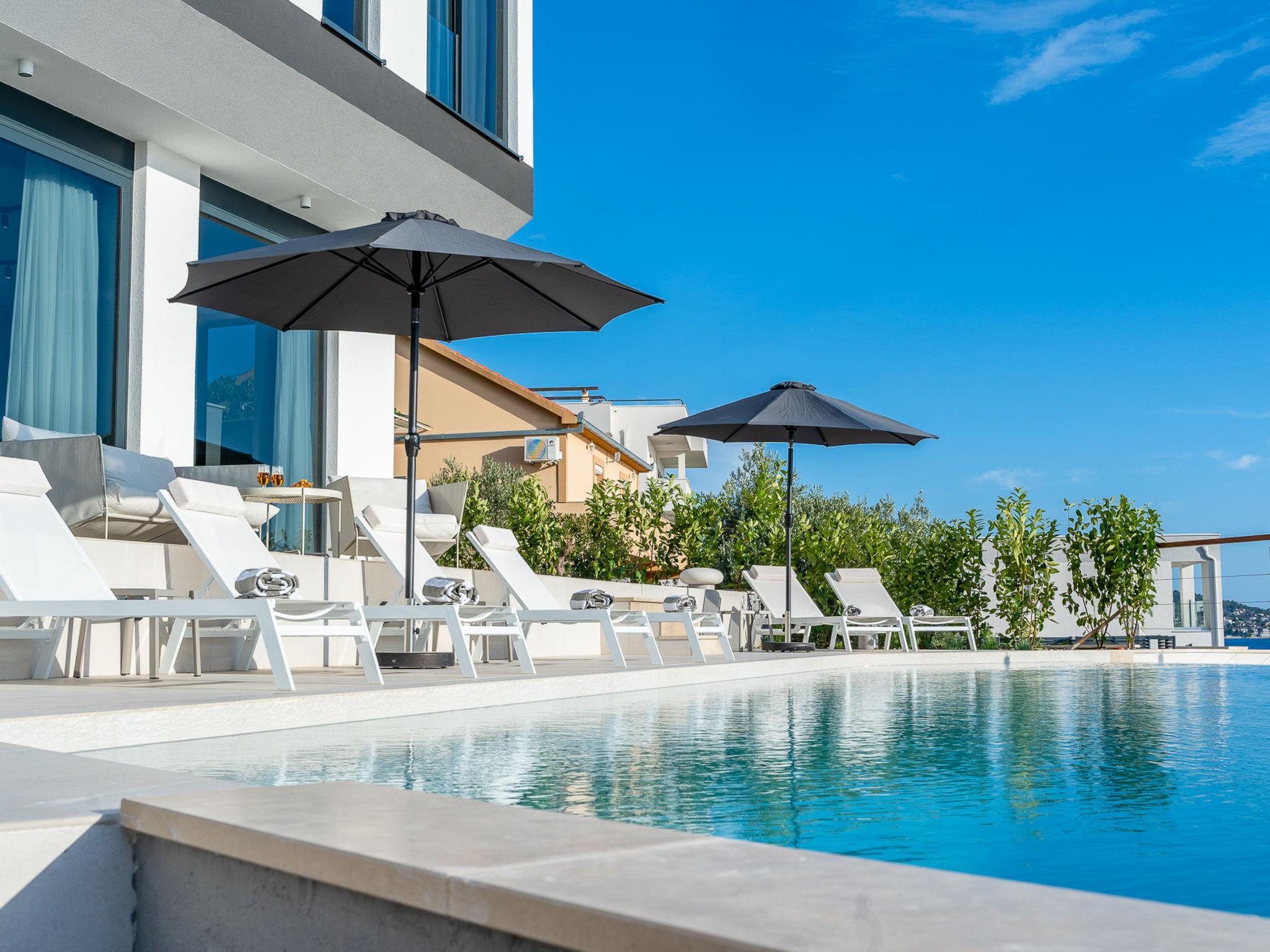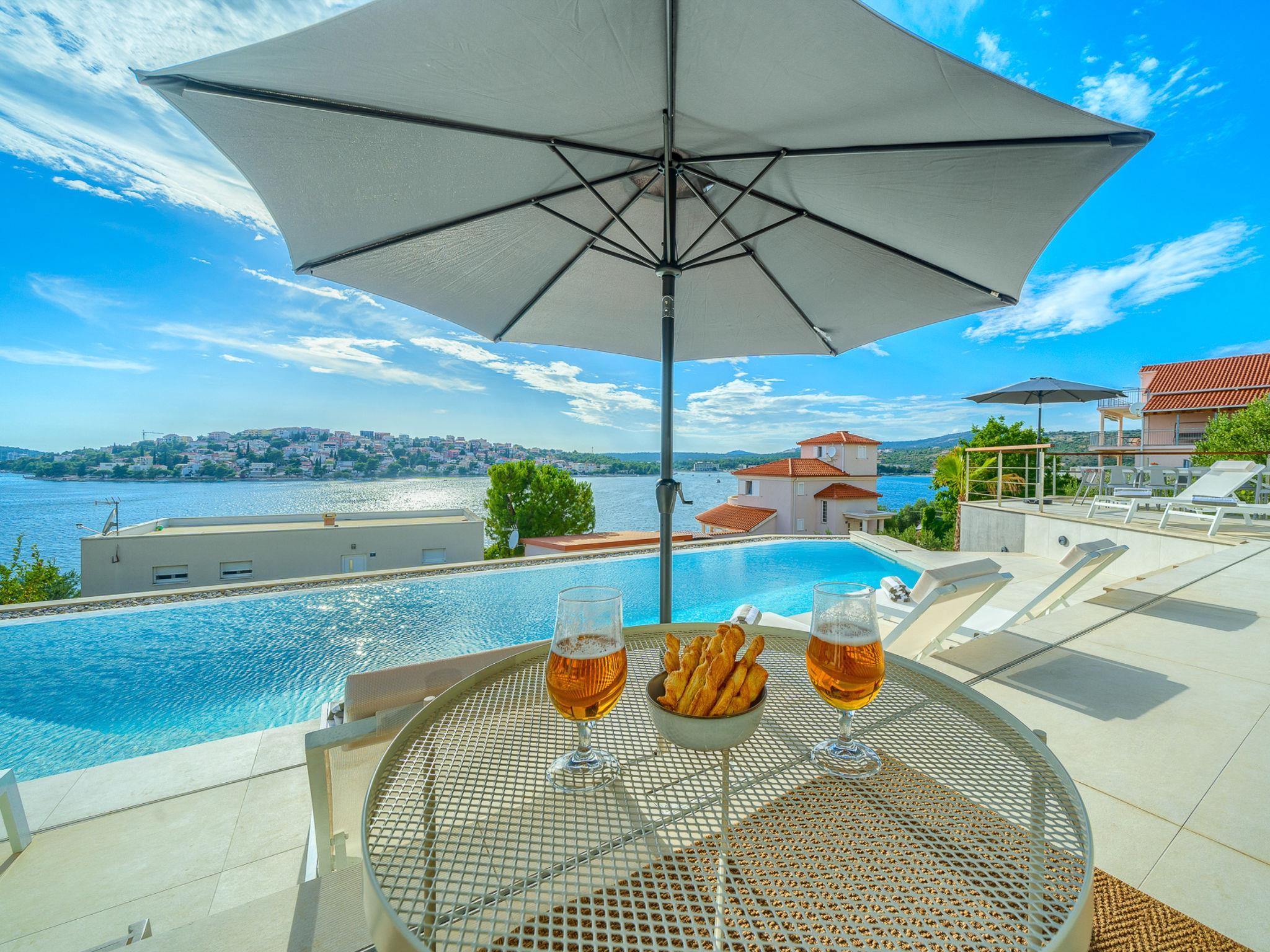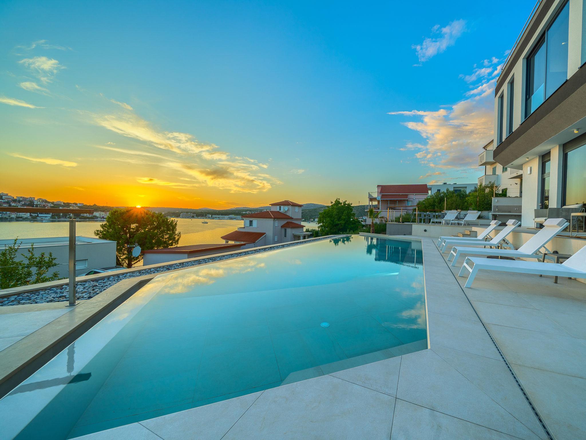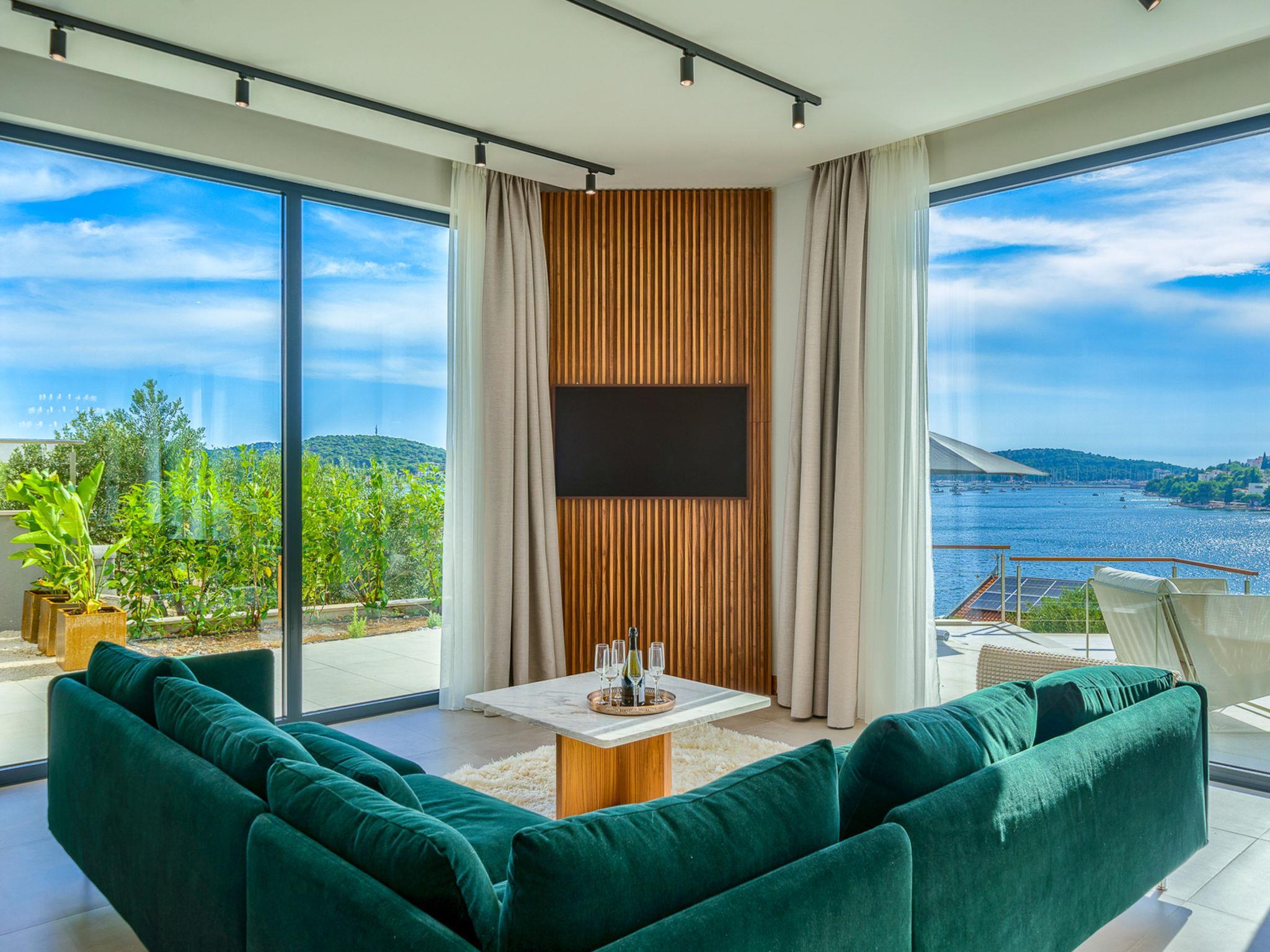 Freistehende Villa "Allina", auf 2 Stockwerken. Zatoglav, 5 km vom Zentrum von Rogoznica, ruhige, sonnige, erhöhte Lage, 50 m vom Meer, 180 m vom Strand, Richtung Westen. Zur Alleinbenutzung: Grundstück 750 m2, Schwimmbad eckig (50 m2, 150 cm tief, saisonale Verfügbarkeit: 01.Mai. - 01.Okt.). Aussendusche, Terrasse (15 m2), Grill. Im Hause: Internetzugang, Wireless LAN, Waschmaschine, Wäschetrockner. Parkplatz (für 3 Autos) beim Haus auf dem Grundstück. Einkaufsgeschäft 4 km, Restaurant 5 km, Bäckerei 4 km, Bushaltestelle 1.5 km, Felsstrand 180 m. Jacht-Hafen 5 km.