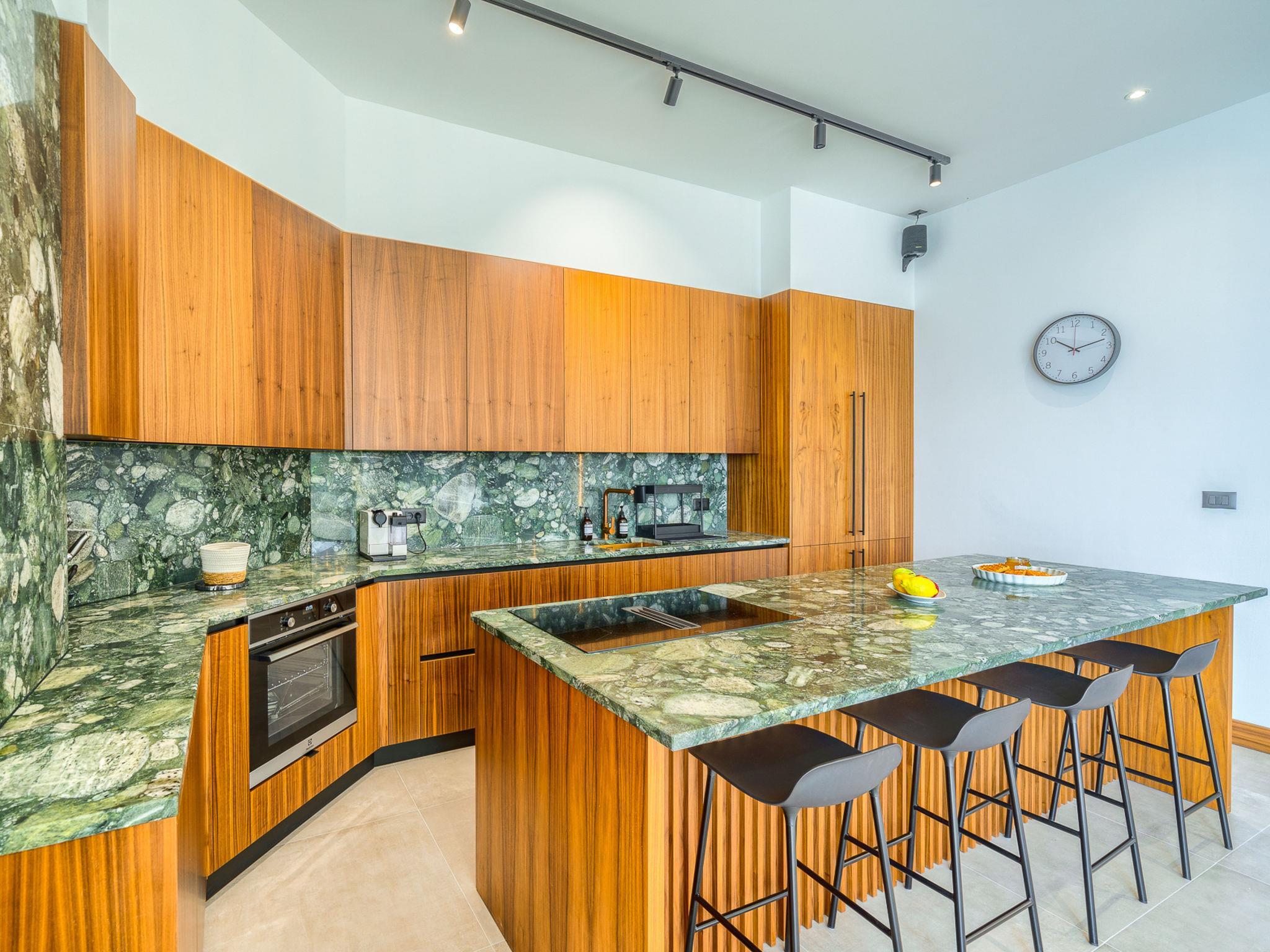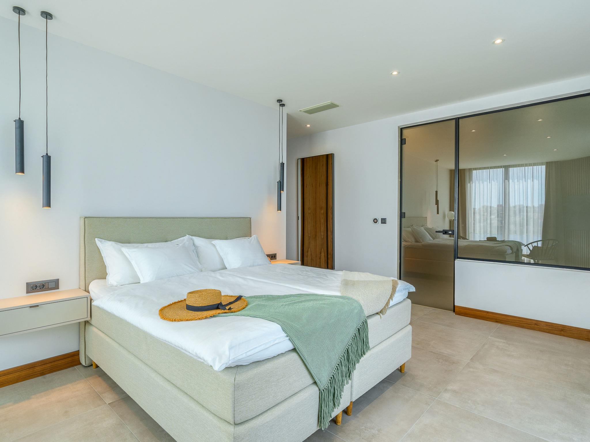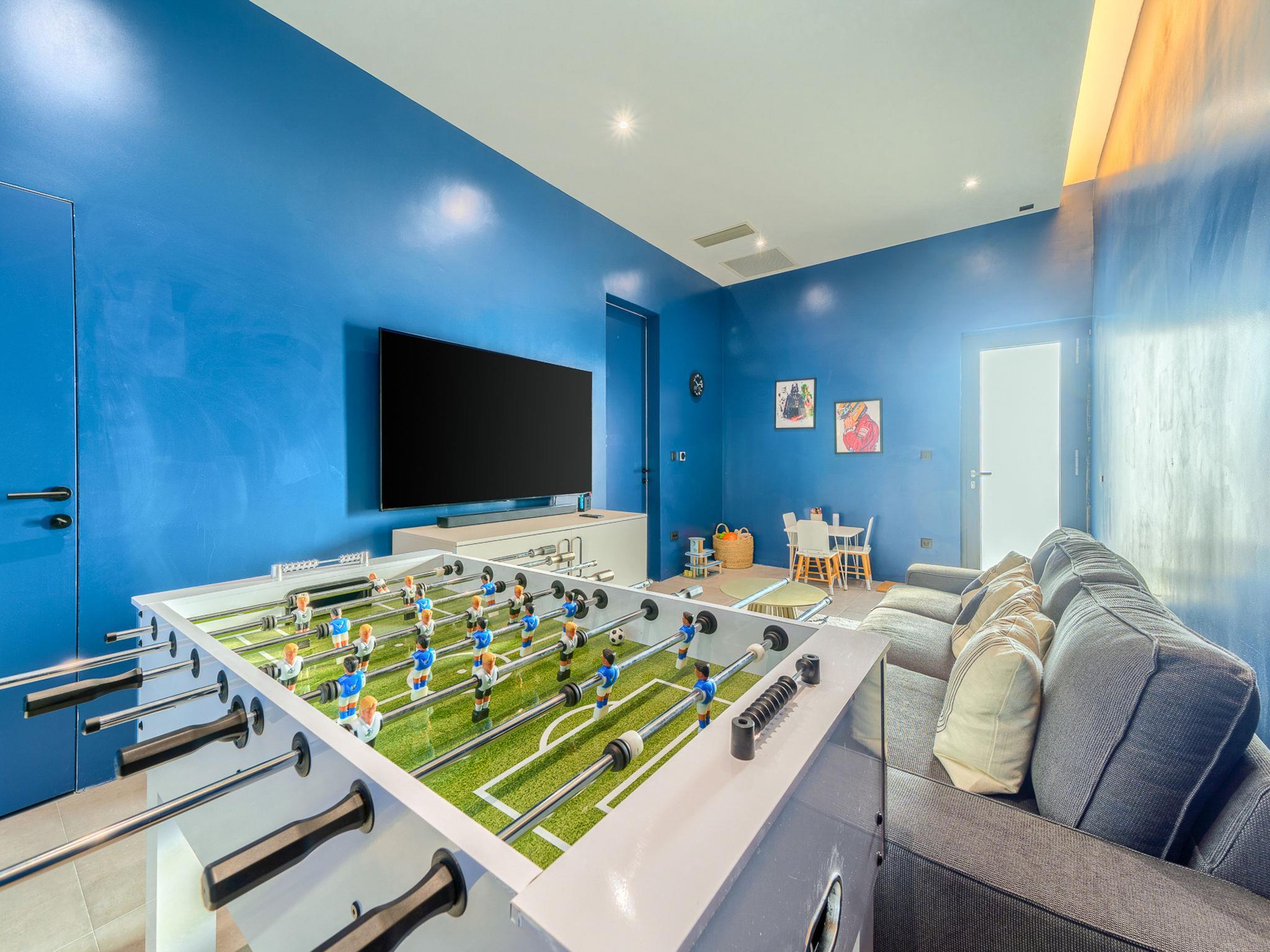 7-Zimmer-Villa 340 m2 auf 2 Stockwerken. Schön und stilvoll eingerichtet: Wohn-/Esszimmer mit Sat-TV (Flachbildschirm), Klimaanlage. Ausgang zur Terrasse, zum Schwimmbad. (180 cm, Länge 200 cm). Offene Küche (Backofen, Geschirrspüler, 4 Glaskeramikplatten, Toaster, Wasserkocher, Mikrowelle, Tiefkühler, elektrische Kaffeemaschine). Dusche/WC. Obergeschoss: 2 Zimmer, jedes Zimmer mit 1 franz. Bett (180 cm, Länge 200 cm), Sat-TV (Flachbildschirm), Klimaanlage. 2 Zimmer, jedes Zimmer mit 1 franz. Bett (180 cm, Länge 200 cm), Dusche/WC, Doppelwaschbecken und Sat-TV (Flachbildschirm), Klimaanlage. 2 Zimmer, jedes Zimmer mit 1 franz. Bett (180 cm, Länge 200 cm), Bad/Dusche/WC und Sat-TV (Flachbildschirm), Klimaanlage. Spielzimmer mit Sat-TV (Flachbildschirm), Klimaanlage. Dusche/WC. Terrasse 15 m2. Liegestühle (10). Schöne Sicht auf das Meer. Zur Verfügung: Waschmaschine, Safe, Kinderhochstuhl, Haartrockner. Internet (WLAN, gratis).