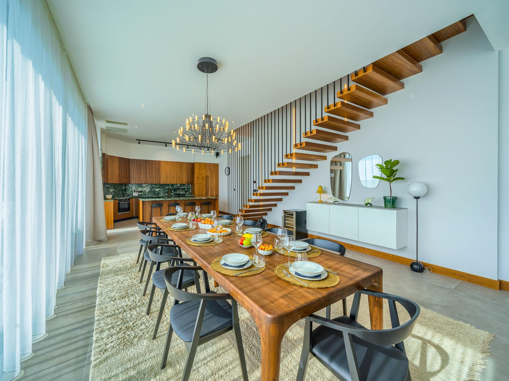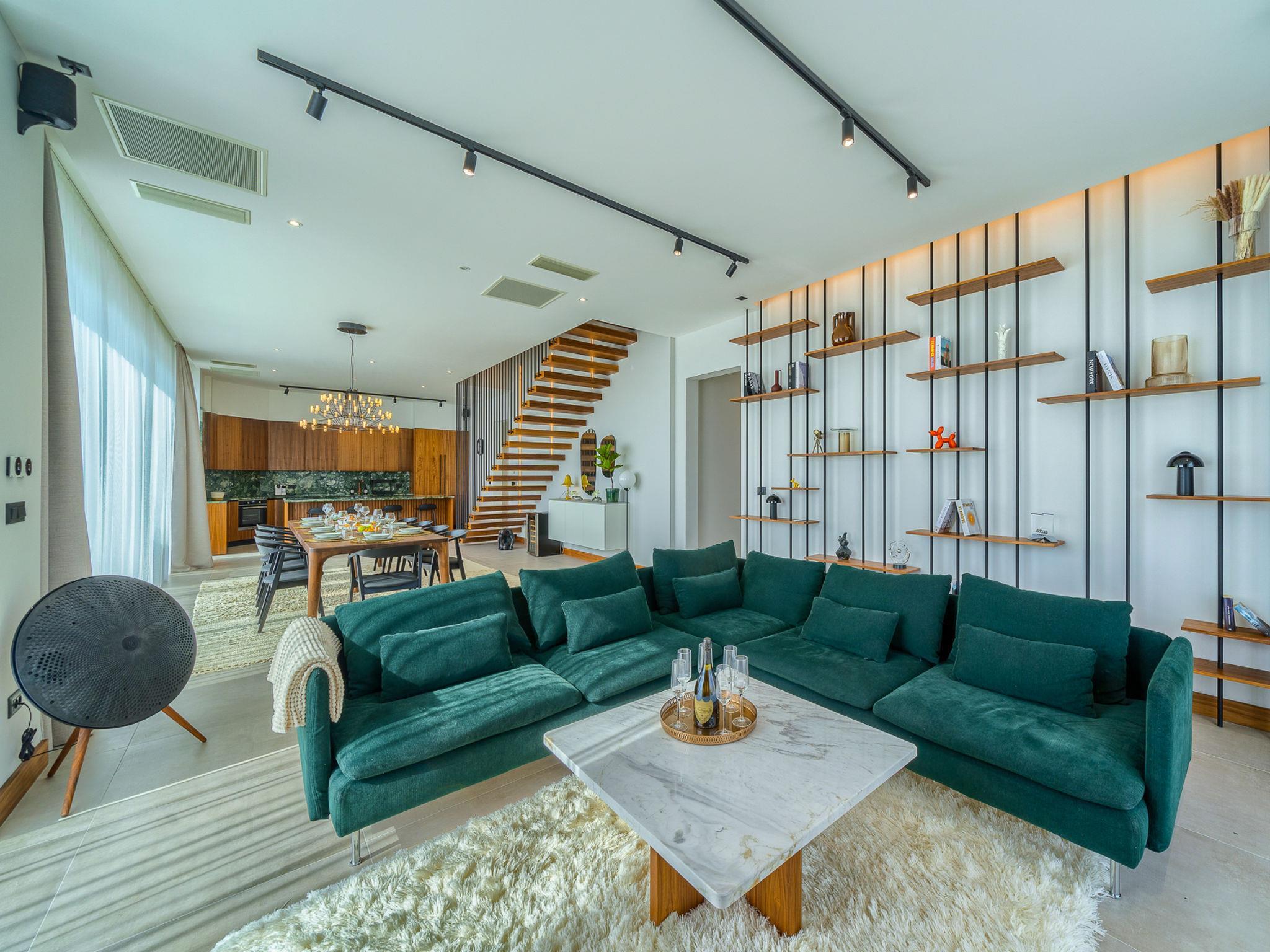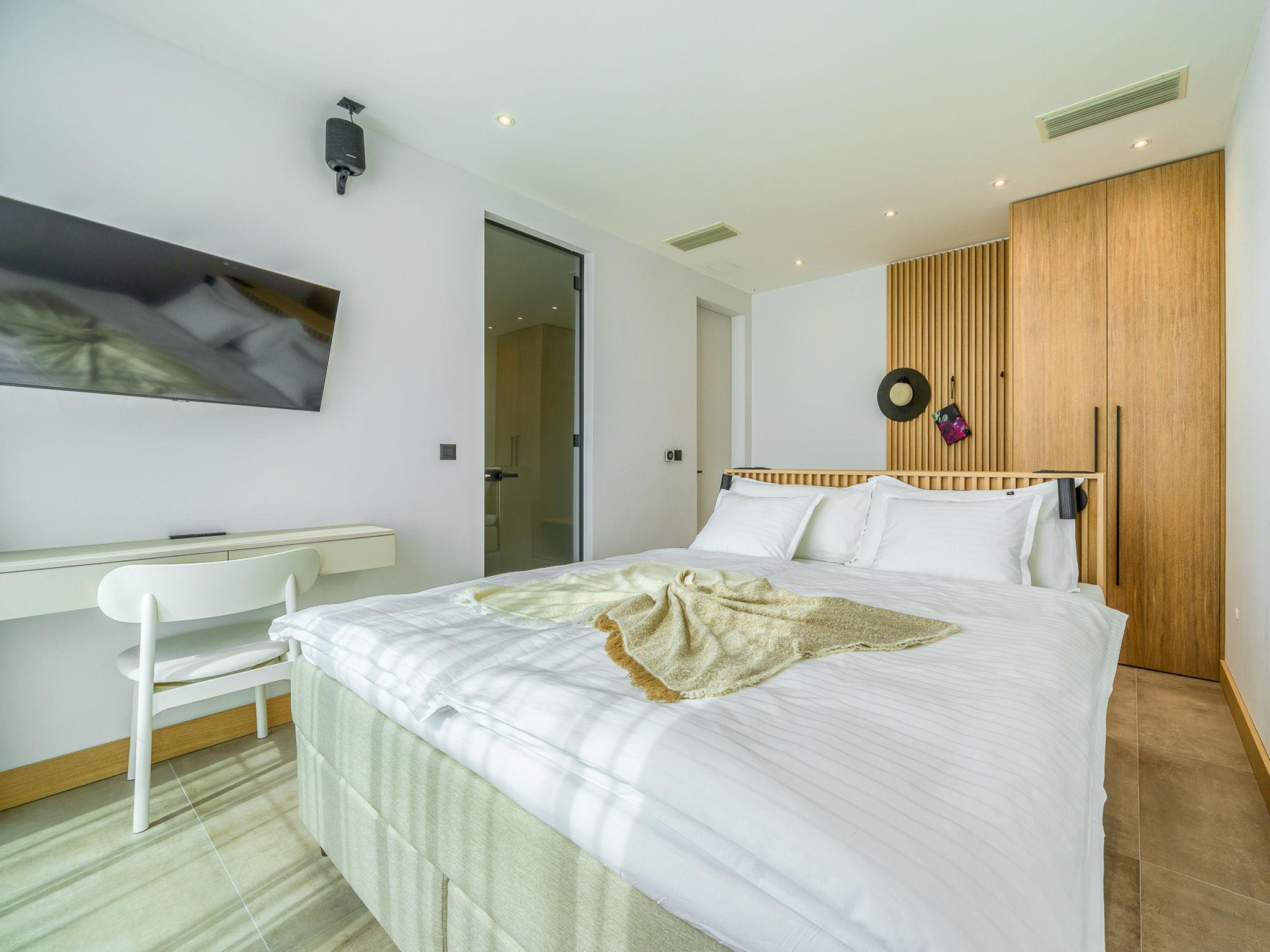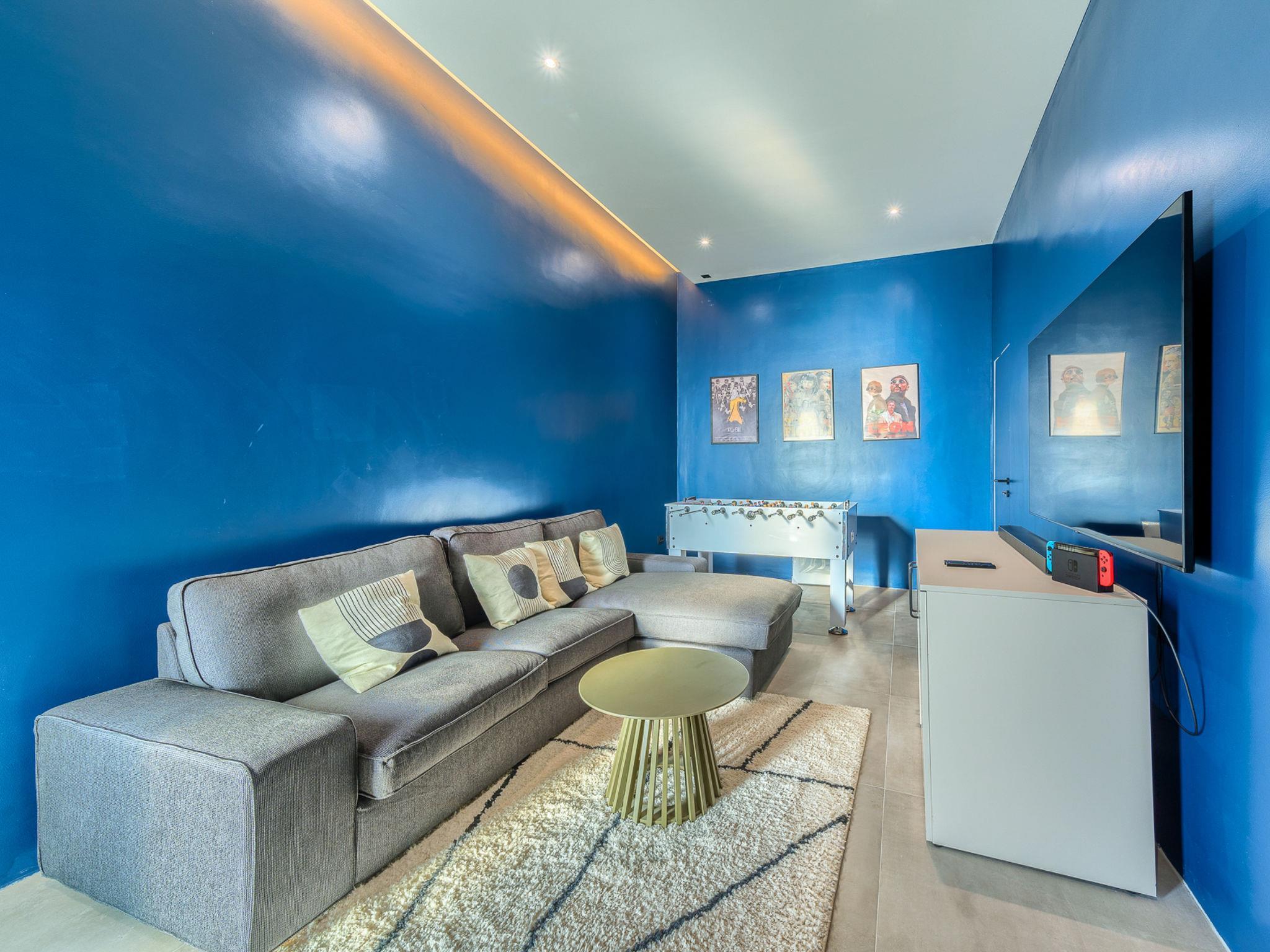 7-Zimmer-Villa 340 m2 auf 2 Stockwerken. Schön und stilvoll eingerichtet: Wohn-/Esszimmer mit Sat-TV (Flachbildschirm), Klimaanlage. Ausgang zur Terrasse, zum Schwimmbad. (180 cm, Länge 200 cm). Offene Küche (Backofen, Geschirrspüler, 4 Glaskeramikplatten, Toaster, Wasserkocher, Mikrowelle, Tiefkühler, elektrische Kaffeemaschine). Dusche/WC. Obergeschoss: 2 Zimmer, jedes Zimmer mit 1 franz. Bett (180 cm, Länge 200 cm), Sat-TV (Flachbildschirm), Klimaanlage. 2 Zimmer, jedes Zimmer mit 1 franz. Bett (180 cm, Länge 200 cm), Dusche/WC, Doppelwaschbecken und Sat-TV (Flachbildschirm), Klimaanlage. 2 Zimmer, jedes Zimmer mit 1 franz. Bett (180 cm, Länge 200 cm), Bad/Dusche/WC und Sat-TV (Flachbildschirm), Klimaanlage. Spielzimmer mit Sat-TV (Flachbildschirm), Klimaanlage. Dusche/WC. Terrasse 15 m2. Liegestühle (10). Schöne Sicht auf das Meer. Zur Verfügung: Waschmaschine, Safe, Kinderhochstuhl, Haartrockner. Internet (WLAN, gratis).