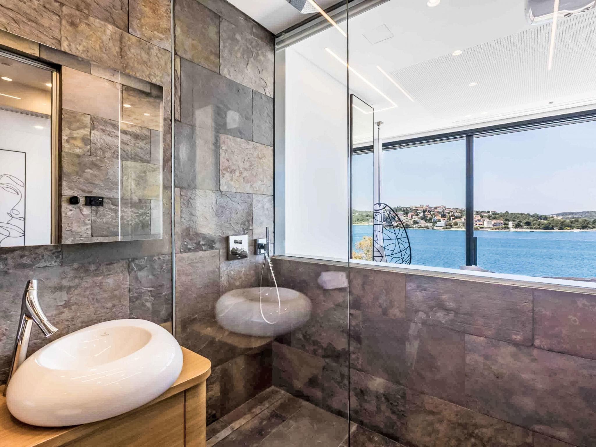 Freistehende Villa "Vista I", auf 2 Stockwerken. Zatoglav, 5 km vom Zentrum von Rogoznica, ruhige, sonnige, erhöhte Lage, 50 m vom Meer, 70 m vom Strand, Richtung Westen. Zur Mitbenutzung: Privatstrand, Sprudelbad, Gartenmöbel. Zur Alleinbenutzung: Grundstück 500 m2, Schwimmbad eckig (50 m2, 150 cm tief, saisonale Verfügbarkeit: 01.Mai. - 01.Okt.). Aussendusche, Terrasse (15 m2), Grill. Im Hause: Internetzugang, Wireless LAN, Waschmaschine, Wäschetrockner. Parkplatz (für 3 Autos) beim Haus auf dem Grundstück. Einkaufsgeschäft 4 km, Restaurant 5 km, Bäckerei 4 km, Bushaltestelle 1.5 km, Felsstrand 180 m. Jacht-Hafen 5 km.