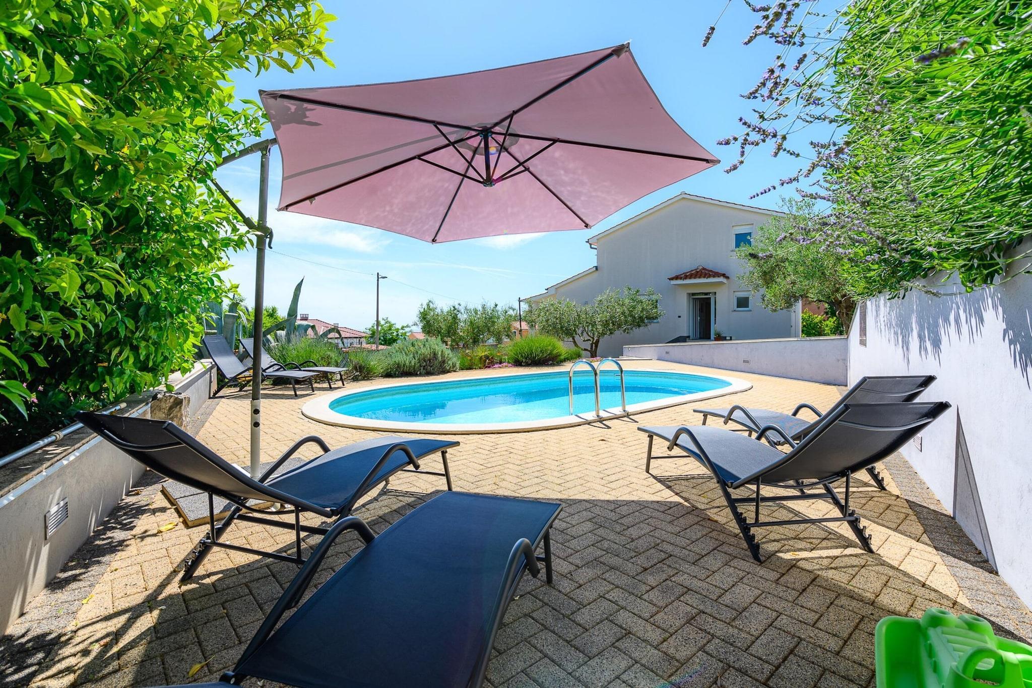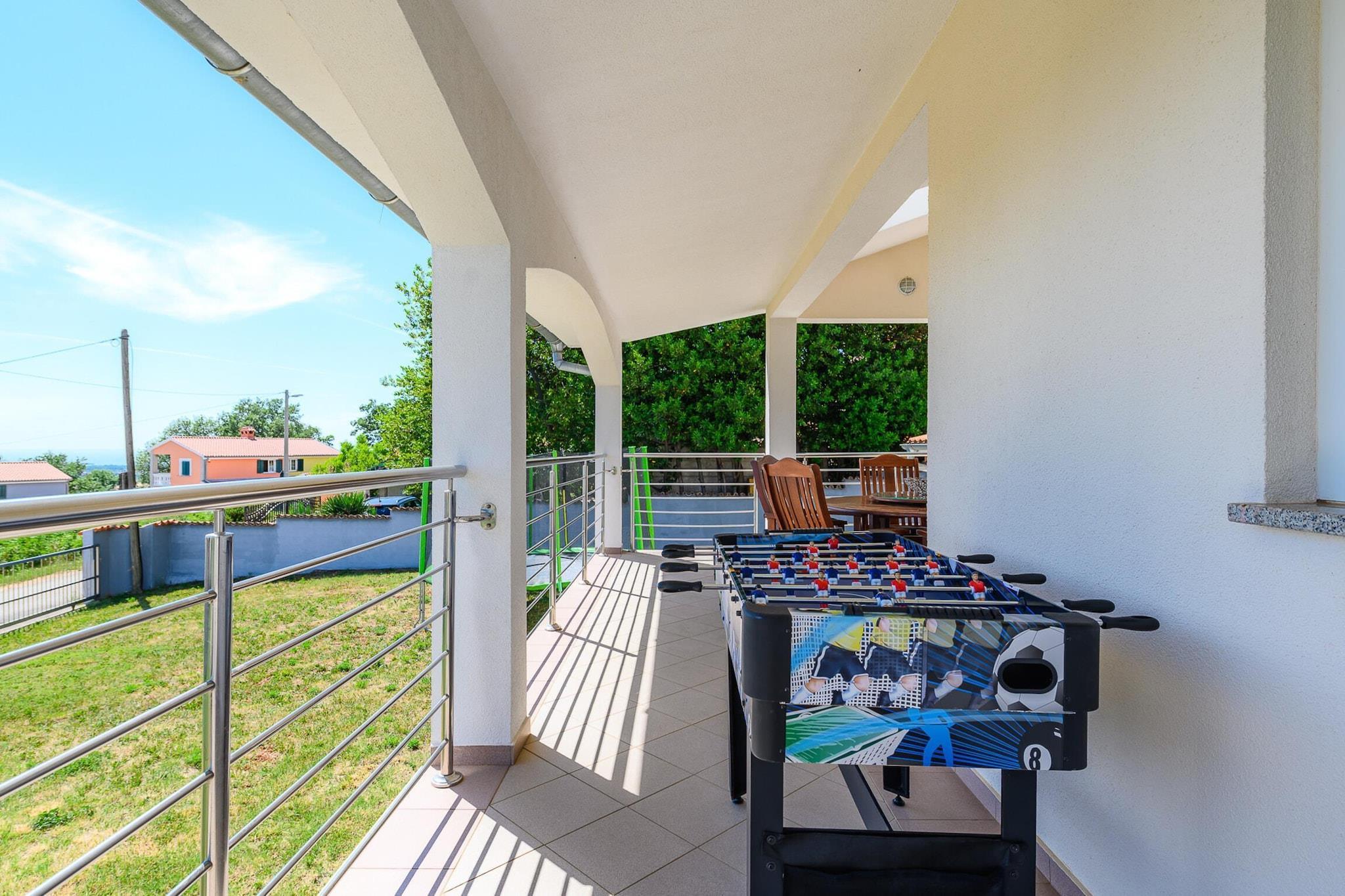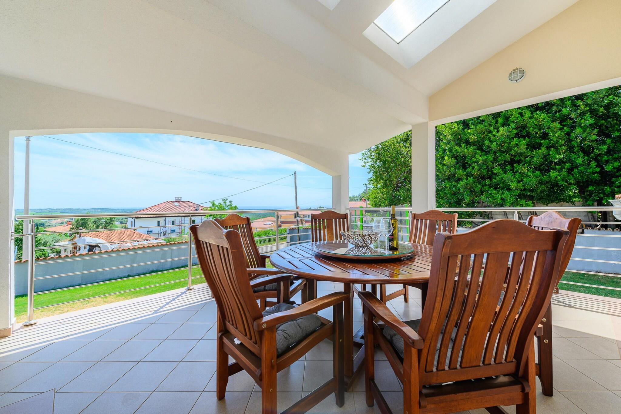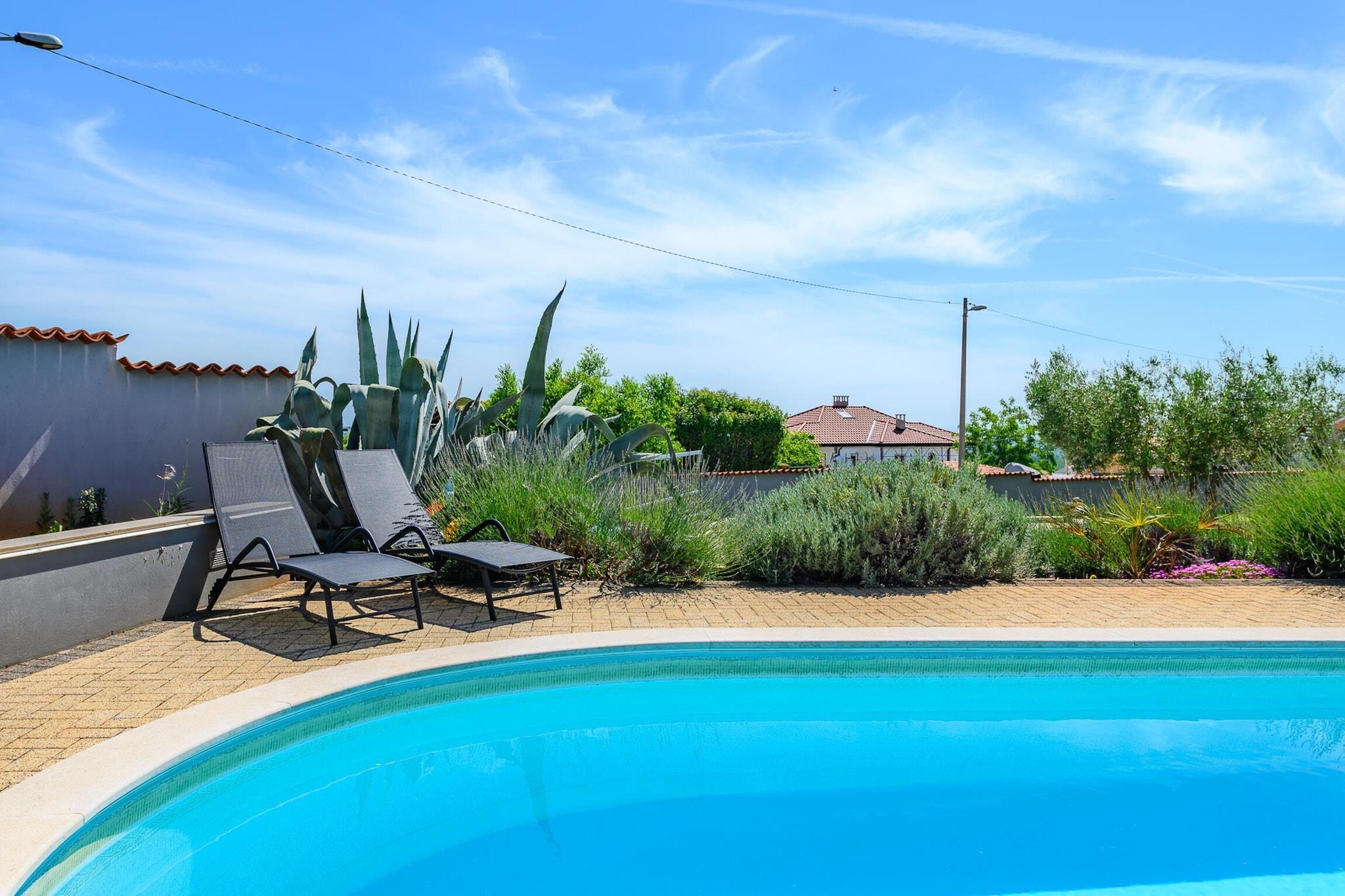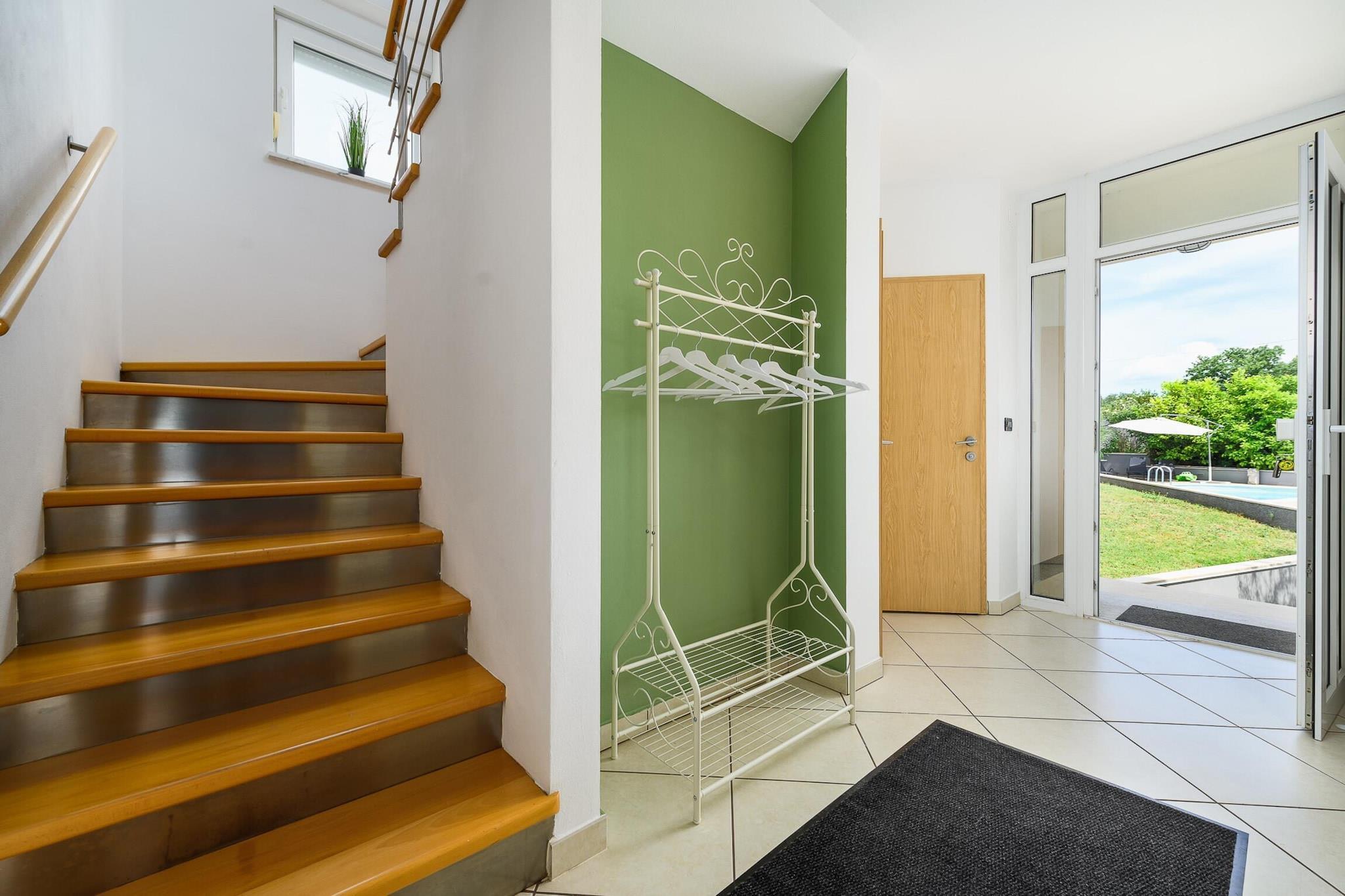 Die Villa Elisa erwartet Sie in einem weitläufigen Grundstück von über 1.000 m² mit großem mediterranem Garten in dem Zitronen- und Olivenbäume, Agaven, Palmen, Wein, Lavendelpflanzen u.v.m. zu finden sind; mit einem separaten großzügigen Pool. Auf dem komplett eingefriedeten Grundstück finden Sie Ruhe und Individualität. Das Grundstück bietet weiterhin Platz für mindestens zwei Autos, Abstellmöglichkeiten für Fahrräder, einen kleinen Grillplatz sowie einem Trampolin und einem kleinen Kicker. Villa Elisa findet sich bei feriehaus Kastelir, wo Sie eine Ruhige Zeit haben können. Villa Elisa wurde als Ganzjahreshaus konzipiert und verfügt im kompletten Haus über eine Fußbodenheizung und kann daher ganzjährig bewohnt werden. Daher auch für Überwinterer und Fahrradtouristen ganzjährig bzw. außerhalb der Saison gut geeignet. Die klimatisierte Unterkunft liegt ca. 18 km von der Stadt Porec entfernt. Bis zum Meer sind es ca. 7 km. Die Villa befindet sich im ruhig gelegenen Ortsteil Rojci. Gute Gastronomie findet man fußläufig mehrfach im Umkreis von 300 m. Kleiner Einkaufsmarkt im Ort; größere Einkaufszentren sind in Tar und Porec. Die Villa verfügt über 4 Schlafzimmer, davon 3 mit Bockspringbetten, TV und Meerblick, 2 Badezimmer, einem Hauswirtschaftsraum mit Waschmaschine, einen großzügigen Wohn- und Essbereich mit überdachter Terrasse und weitläufigem Blick über die Bucht, einer voll ausgestatteten Küche inkl. Herd, Mikrowelle, Geschirrspüler, Kühl- und Gefrierschrank, 4 x Sat-TV, WLAN, Bettwäsche und Handtücher, Kinderstuhl und Kinderbettchen mit Bettwäsche. Portorož liegt 25 km von der Villa Elisa entfernt und Opatija erreichen Sie nach 49 km. Der nächstgelegene Flughafen ist der 49 km von der Unterkunft entfernte Flughafen Pula. Villa Elisa heißt Booking.com-Gäste nach Neueröffnung mit Landeskategorie 3 Sterne seit 10. Juni 2022 willkommen.