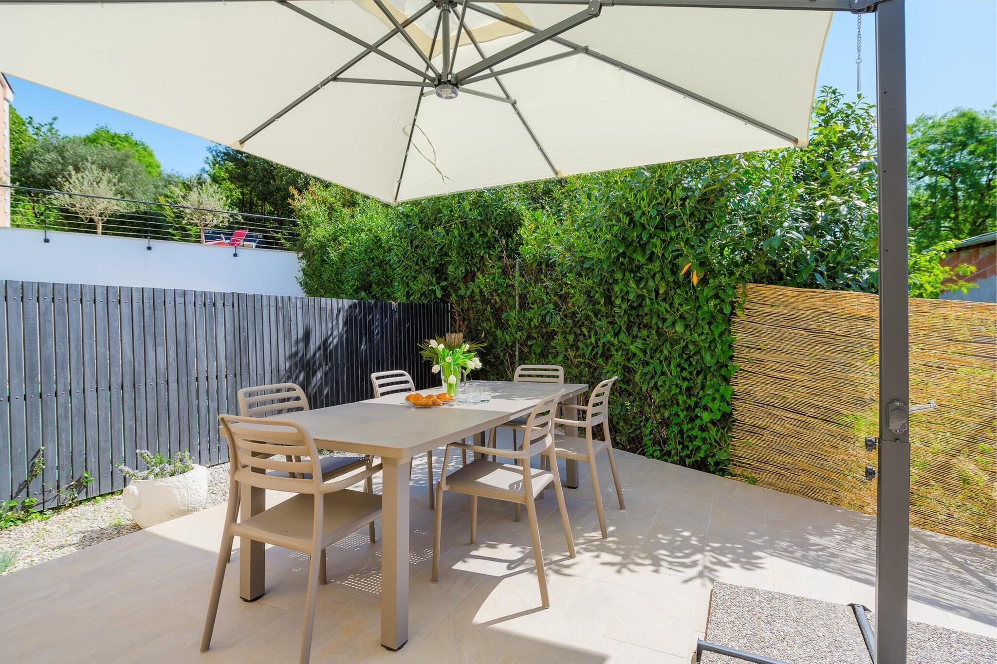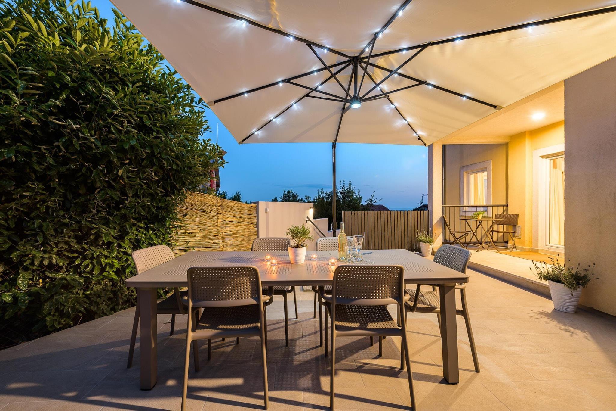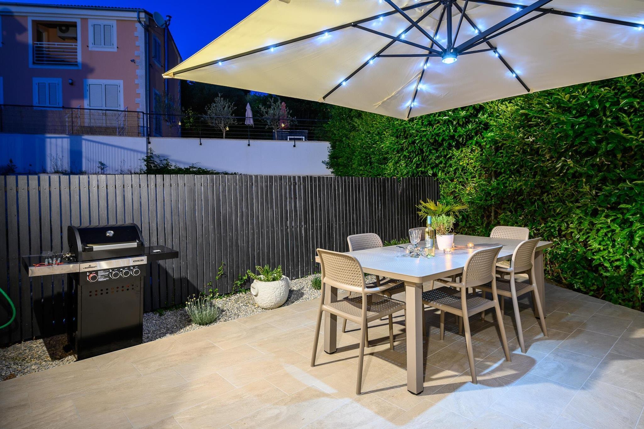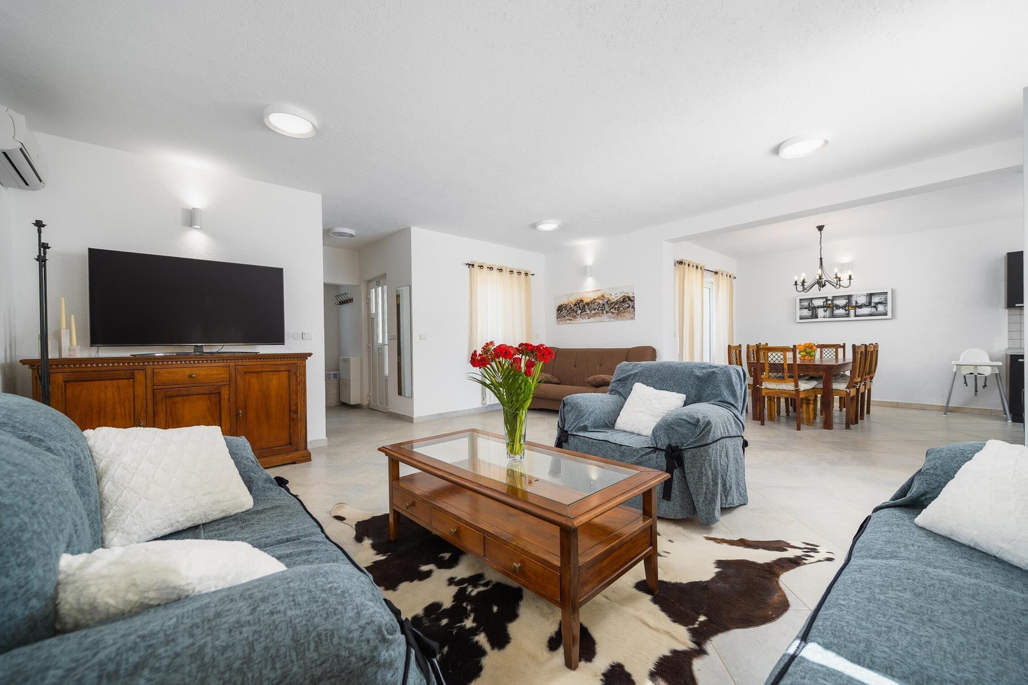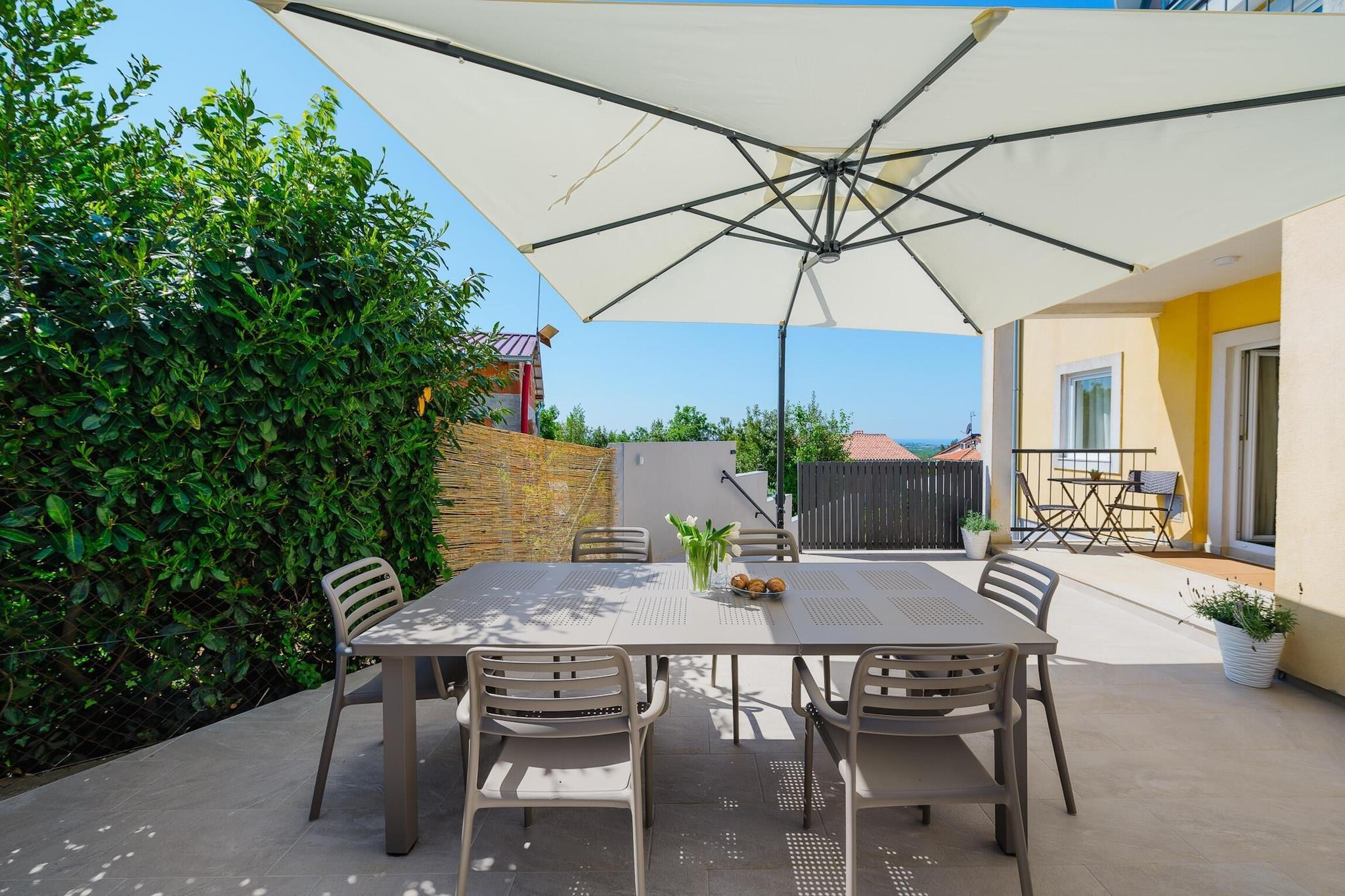 Villa Zaza ist eine charmante Villa mit zwei Schlafzimmern, Pool und Meerblick. Es bietet Platz für 4+2 Personen; Im Wohnbereich befindet sich ein Schlafsofa. Die Villa verfügt über einen offenen Wohn- und Küchenbereich mit Ausgang zur Terrasse, ideal für das morgendliche Frühstück oder Abendessen im Freien. Die Treppe führt zum Loungebereich in der Nähe des Pools. Es gibt auch eine Außendusche. Die Villa hat 2 Schlafzimmer im ersten Stock; ein Schlafzimmer mit Doppelbett und ein Schlafzimmer mit zwei Einzelbetten mit einem großen Balkon mit Couchtisch und einem Sofa. Die beiden Schlafzimmer teilen sich ein Badezimmer mit Dusche. Unten gibt es eine Toilette. Am Eingang der Villa gibt es einen Parkplatz für 2 Autos. Das Dorf ist sehr beliebt bei Reisenden, es gibt Restaurants zu Fuß erreichbar, Lebensmittelgeschäfte, Cafés. Die Strände sind ca. 10 Minuten mit dem Auto entfernt, Lanterna Strand oder Porec Strand.