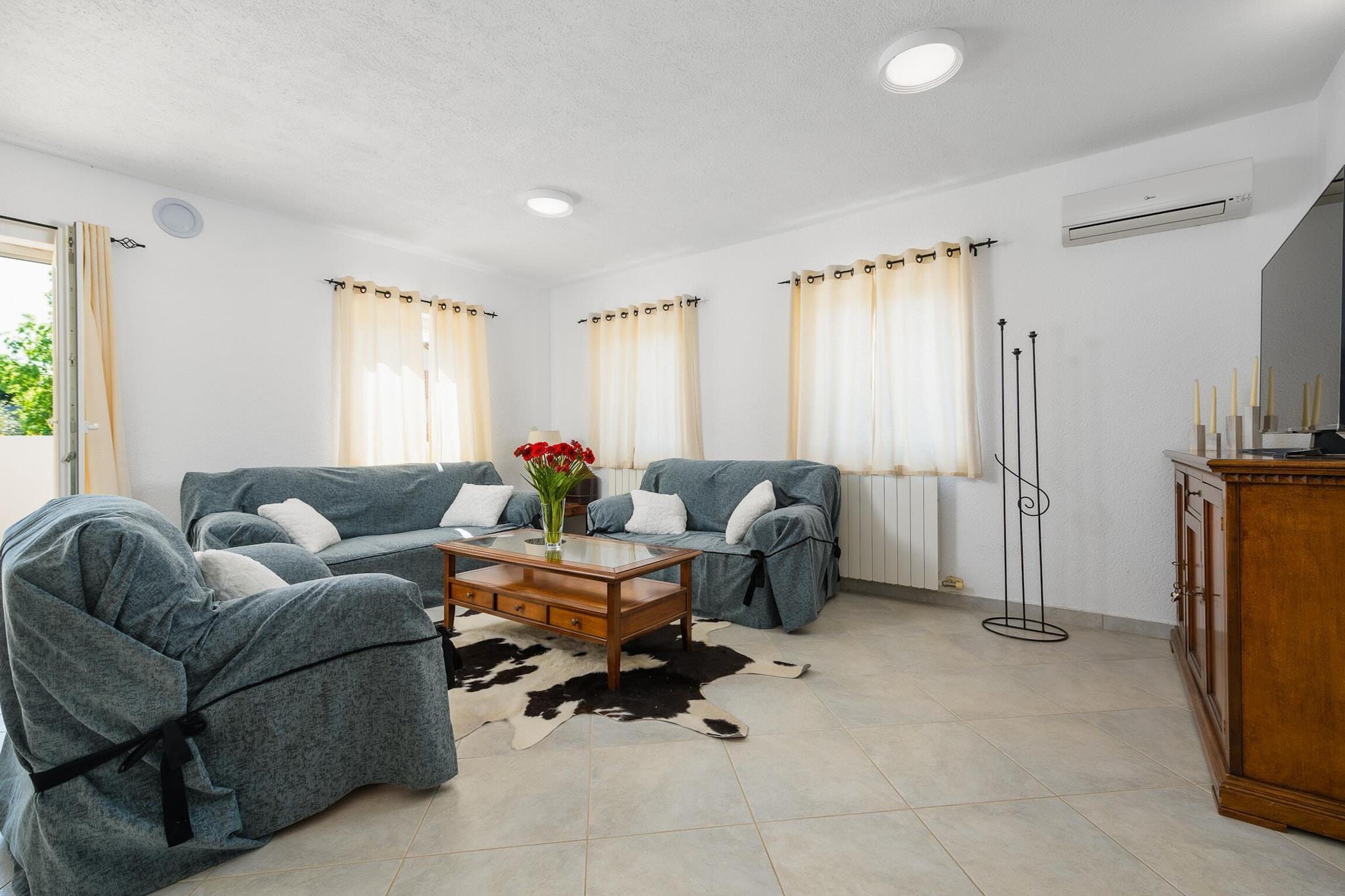 Parterre: (offene Küche(Wasserkocher, Toaster, Kaffeemaschine, Backofen, Mikrowelle, Spülmaschine, Kühlschrank, Tiefkühlschrank, ()), Wohn/Esszimmer(Doppelschlafcouch, TV(Satellit), Radio), Toilette(Toilette), Internet) In der 1. Etage: (Schlafzimmer(Doppelbett), Schlafzimmer(Einzelbett, Einzelbett, TV(Satellit), Balkon), Badezimmer(Dusche, Waschbecken, Toilette, Föhn)) Dusche(im Garten), Waschmaschine, Balkon, Klimaanlage, Terrasse(20 m2), Garten(umzäunt), Gartenmöbel, Grill, Parkplatz, Pool(alleinige Nutzung), Bügeleisen