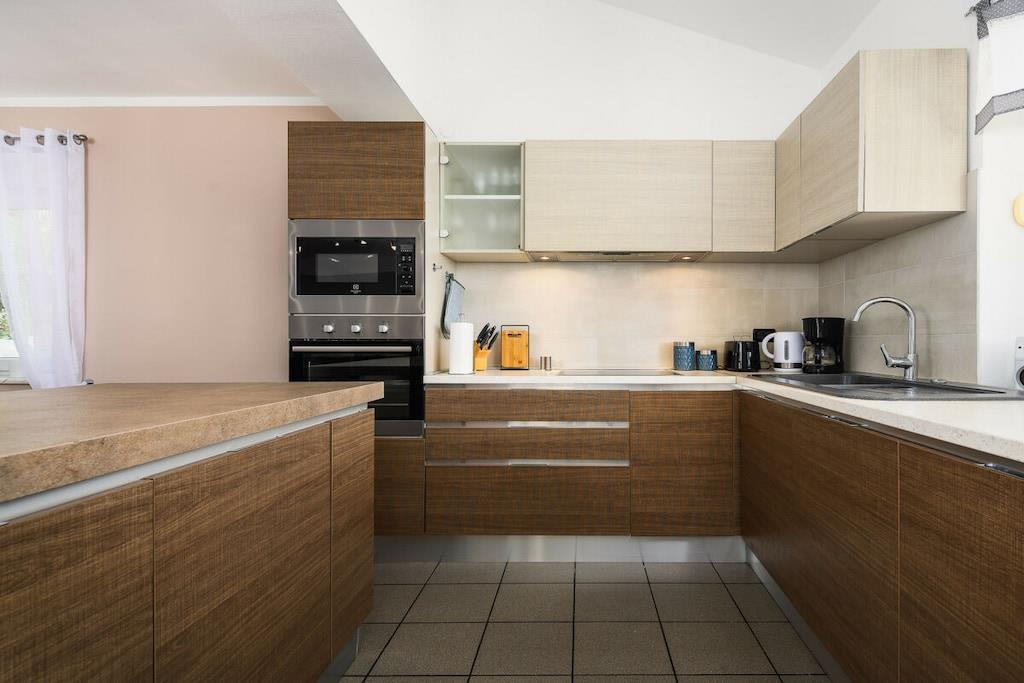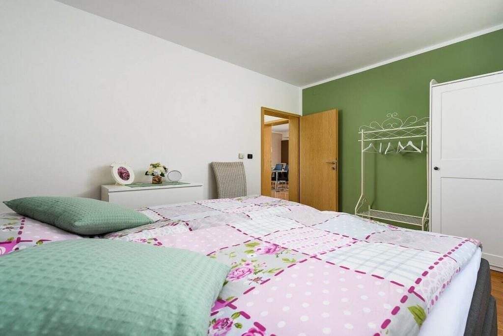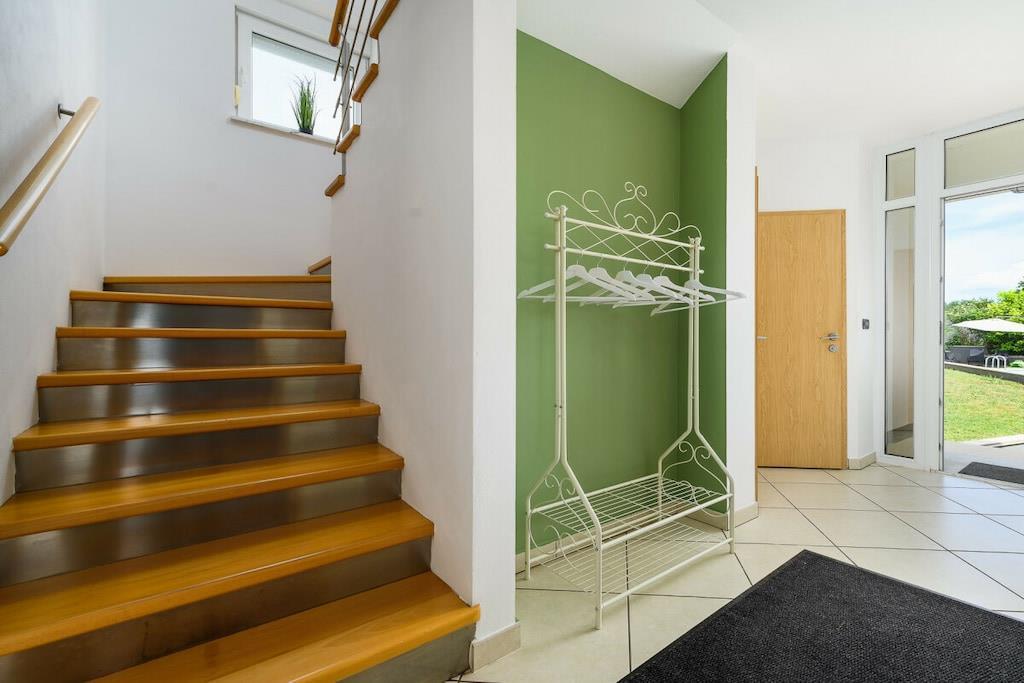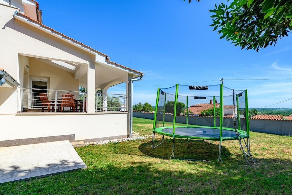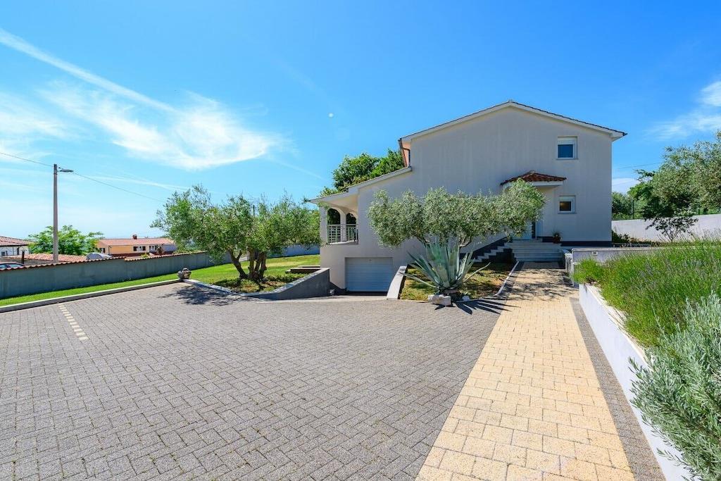 Die Villa Elisa erwartet Sie in einem weitläufigen Grundstück von über 1.000 m² mit großem mediterranem Garten in dem Zitronen- und Olivenbäume, Agaven, Palmen, Wein, Lavendelpflanzen u.v.m. zu finden sind; mit einem separaten großzügigen Pool. Auf dem komplett eingefriedeten Grundstück finden Sie Ruhe und Individualität. Das Grundstück bietet weiterhin Platz für mindestens zwei Autos, Abstellmöglichkeiten für Fahrräder, einen kleinen Grillplatz sowie einem Trampolin und einem kleinen Kicker. Villa Elisa findet sich bei feriehaus Kastelir, wo Sie eine Ruhige Zeit haben können. Villa Elisa wurde als Ganzjahreshaus konzipiert und verfügt im kompletten Haus über eine Fußbodenheizung und kann daher ganzjährig bewohnt werden. Daher auch für Überwinterer und Fahrradtouristen ganzjährig bzw. außerhalb der Saison gut geeignet. Die klimatisierte Unterkunft liegt ca. 18 km von der Stadt Porec entfernt. Bis zum Meer sind es ca. 7 km. Die Villa befindet sich im ruhig gelegenen Ortsteil Rojci. Gute Gastronomie findet man fußläufig mehrfach im Umkreis von 300 m. Kleiner Einkaufsmarkt im Ort; größere Einkaufszentren sind in Tar und Porec. Die Villa verfügt über 4 Schlafzimmer, davon 3 mit Bockspringbetten, TV und Meerblick, 2 Badezimmer, einem Hauswirtschaftsraum mit Waschmaschine, einen großzügigen Wohn- und Essbereich mit überdachter Terrasse und weitläufigem Blick über die Bucht, einer voll ausgestatteten Küche inkl. Herd, Mikrowelle, Geschirrspüler, Kühl- und Gefrierschrank, 4 x Sat-TV, WLAN, Bettwäsche und Handtücher, Kinderstuhl und Kinderbettchen mit Bettwäsche. Portorož liegt 25 km von der Villa Elisa entfernt und Opatija erreichen Sie nach 49 km. Der nächstgelegene Flughafen ist der 49 km von der Unterkunft entfernte Flughafen Pula. Villa Elisa heißt Booking.com-Gäste nach Neueröffnung mit Landeskategorie 3 Sterne seit 10. Juni 2022 willkommen.