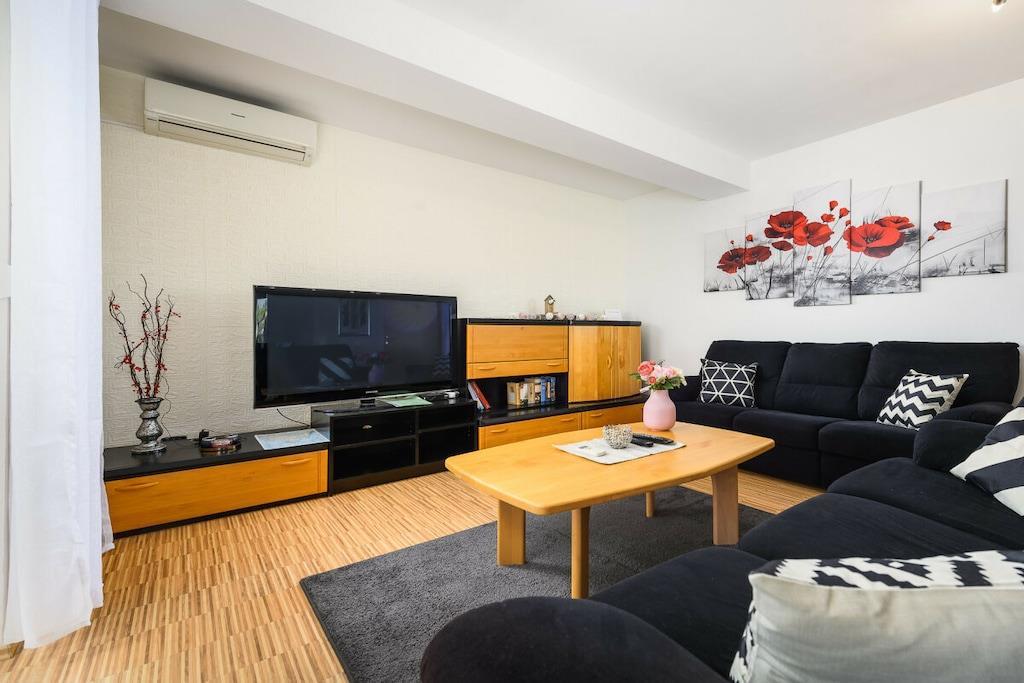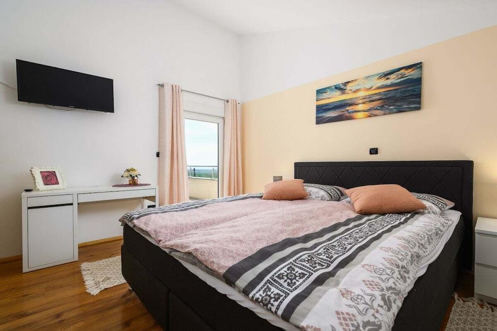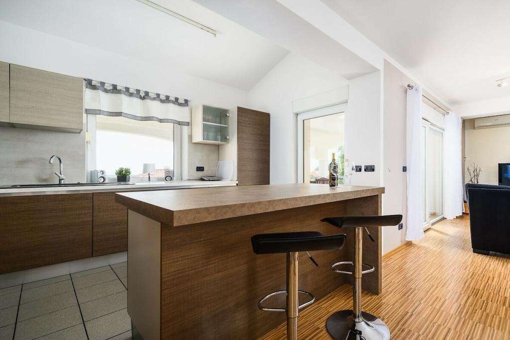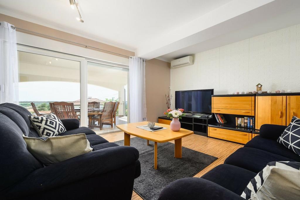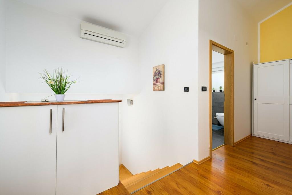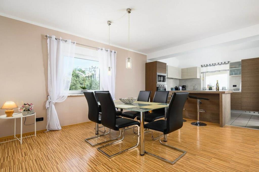 Die Villa Elisa erwartet Sie in einem weitläufigen Grundstück von über 1.000 m² mit großem mediterranem Garten in dem Zitronen- und Olivenbäume, Agaven, Palmen, Wein, Lavendelpflanzen u.v.m. zu finden sind; mit einem separaten großzügigen Pool. Auf dem komplett eingefriedeten Grundstück finden Sie Ruhe und Individualität. Das Grundstück bietet weiterhin Platz für mindestens zwei Autos, Abstellmöglichkeiten für Fahrräder, einen kleinen Grillplatz sowie einem Trampolin und einem kleinen Kicker. Villa Elisa findet sich bei feriehaus Kastelir, wo Sie eine Ruhige Zeit haben können. Villa Elisa wurde als Ganzjahreshaus konzipiert und verfügt im kompletten Haus über eine Fußbodenheizung und kann daher ganzjährig bewohnt werden. Daher auch für Überwinterer und Fahrradtouristen ganzjährig bzw. außerhalb der Saison gut geeignet. Die klimatisierte Unterkunft liegt ca. 18 km von der Stadt Porec entfernt. Bis zum Meer sind es ca. 7 km. Die Villa befindet sich im ruhig gelegenen Ortsteil Rojci. Gute Gastronomie findet man fußläufig mehrfach im Umkreis von 300 m. Kleiner Einkaufsmarkt im Ort; größere Einkaufszentren sind in Tar und Porec. Die Villa verfügt über 4 Schlafzimmer, davon 3 mit Bockspringbetten, TV und Meerblick, 2 Badezimmer, einem Hauswirtschaftsraum mit Waschmaschine, einen großzügigen Wohn- und Essbereich mit überdachter Terrasse und weitläufigem Blick über die Bucht, einer voll ausgestatteten Küche inkl. Herd, Mikrowelle, Geschirrspüler, Kühl- und Gefrierschrank, 4 x Sat-TV, WLAN, Bettwäsche und Handtücher, Kinderstuhl und Kinderbettchen mit Bettwäsche. Portorož liegt 25 km von der Villa Elisa entfernt und Opatija erreichen Sie nach 49 km. Der nächstgelegene Flughafen ist der 49 km von der Unterkunft entfernte Flughafen Pula. Villa Elisa heißt Booking.com-Gäste nach Neueröffnung mit Landeskategorie 3 Sterne seit 10. Juni 2022 willkommen.