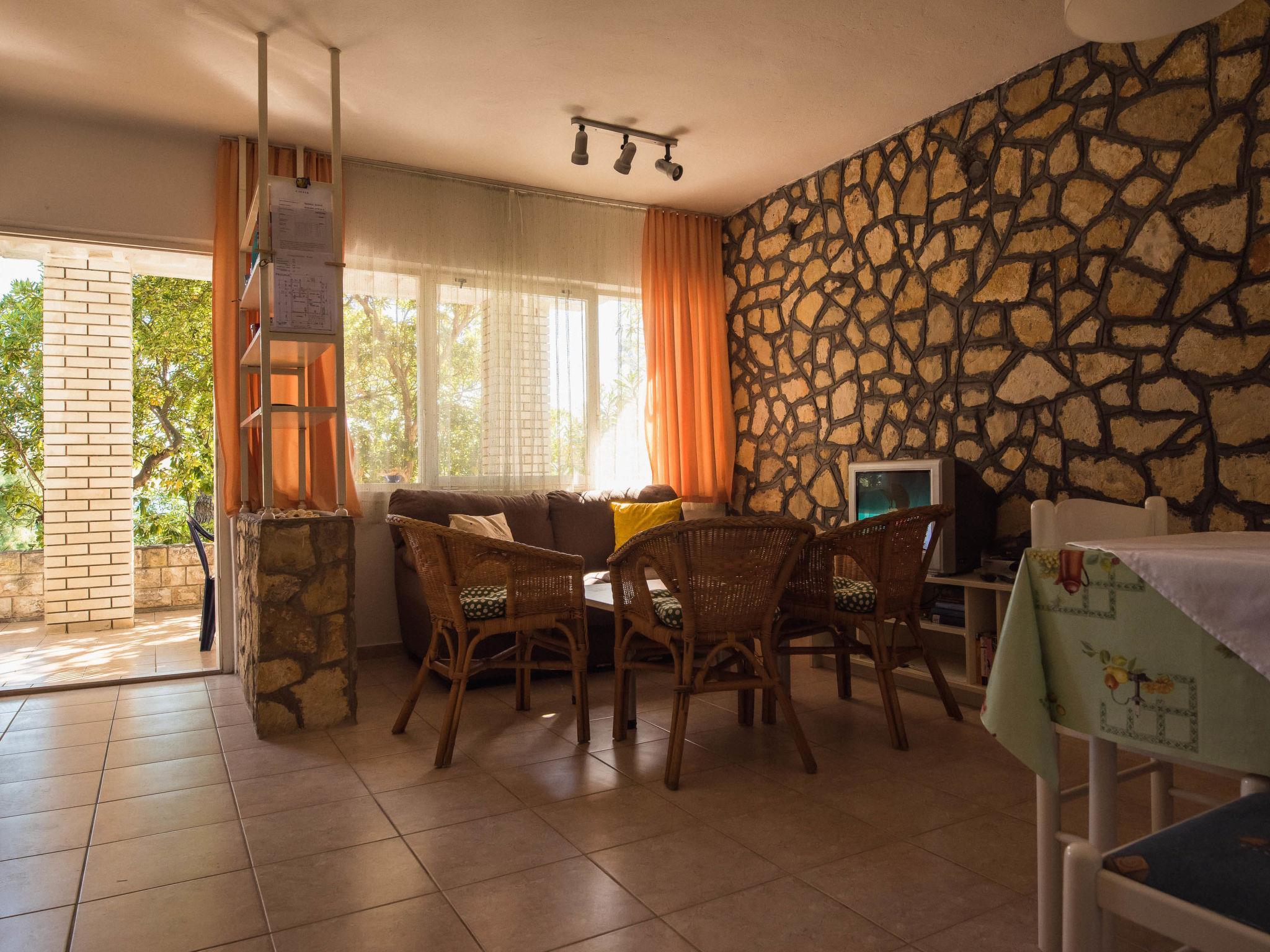 Einfamilienhaus "Dada", umgeben von Bäumen. 15 m vom Meer, Strasse zu überqueren, an einer Strasse, im Grünen. Zur Alleinbenutzung: Grundstück 400 m2 (eingezäunt) mit Pflanzen und Bäumen, Naturgarten. Aussendusche. Im Hause: Internetzugang. Parkplatz beim Haus auf dem Grundstück. Einkaufsgeschäft, Restaurant 300 m, Bushaltestelle 450 m, Steinstrand, Felsstrand 15 m.