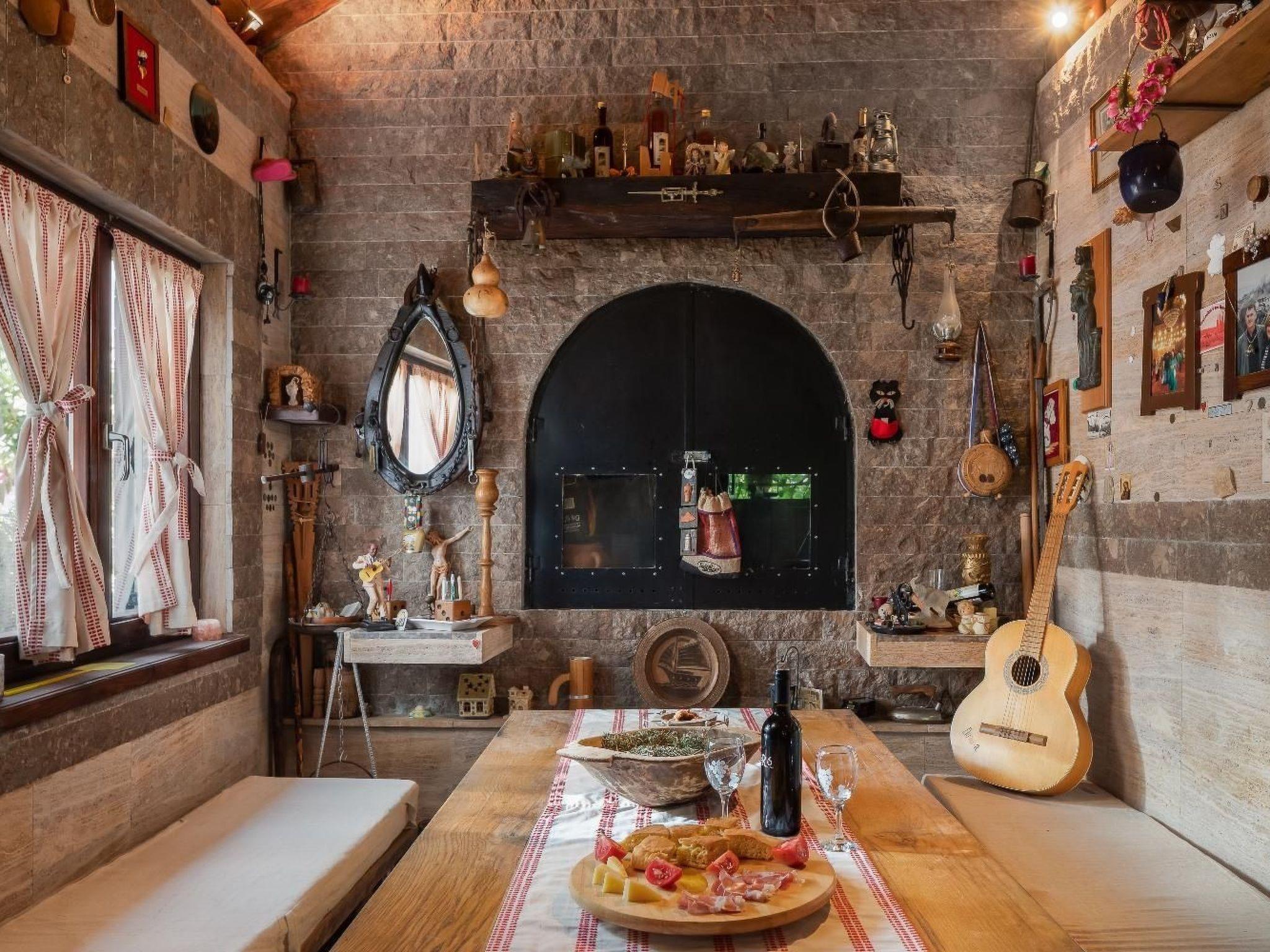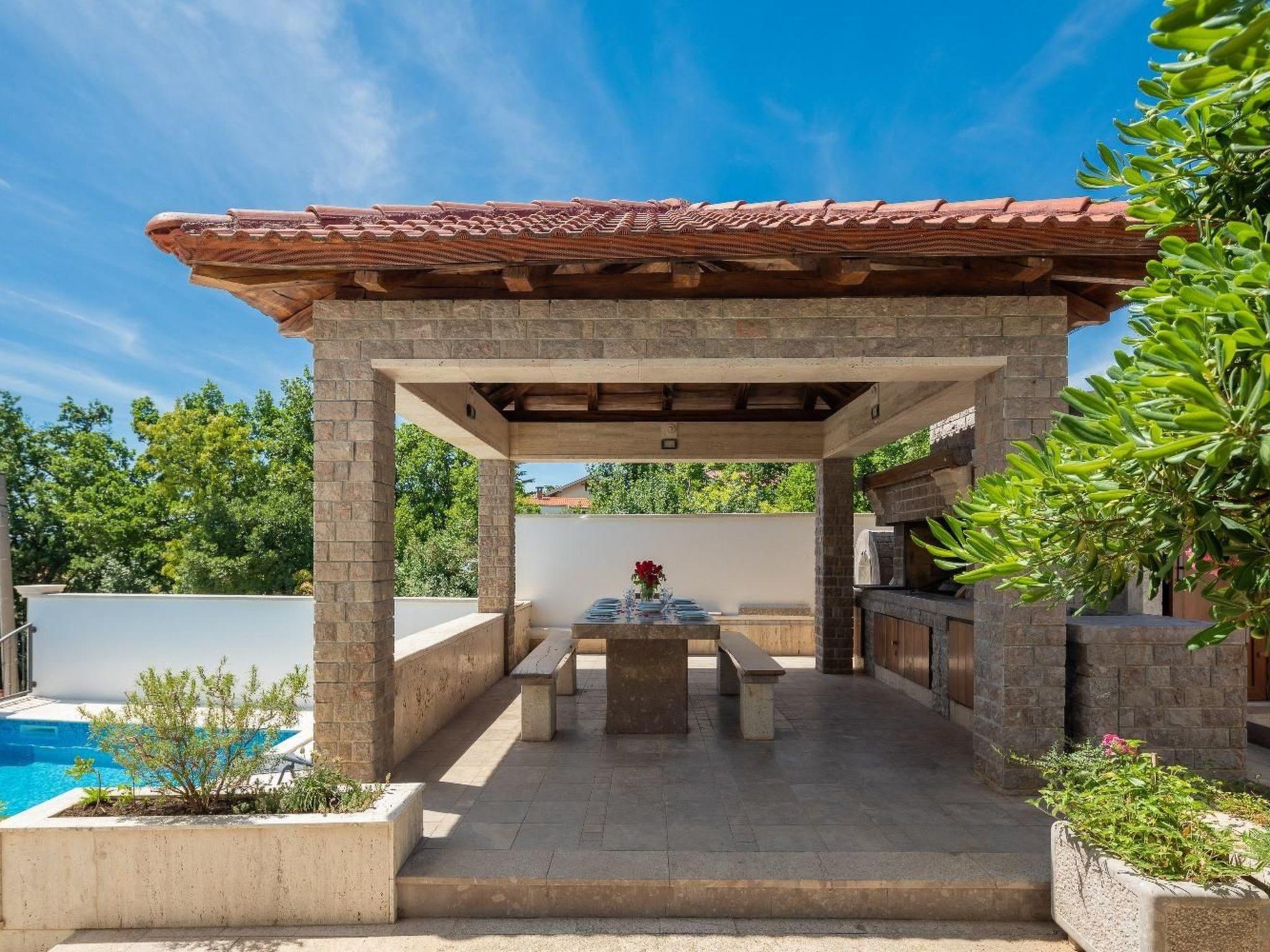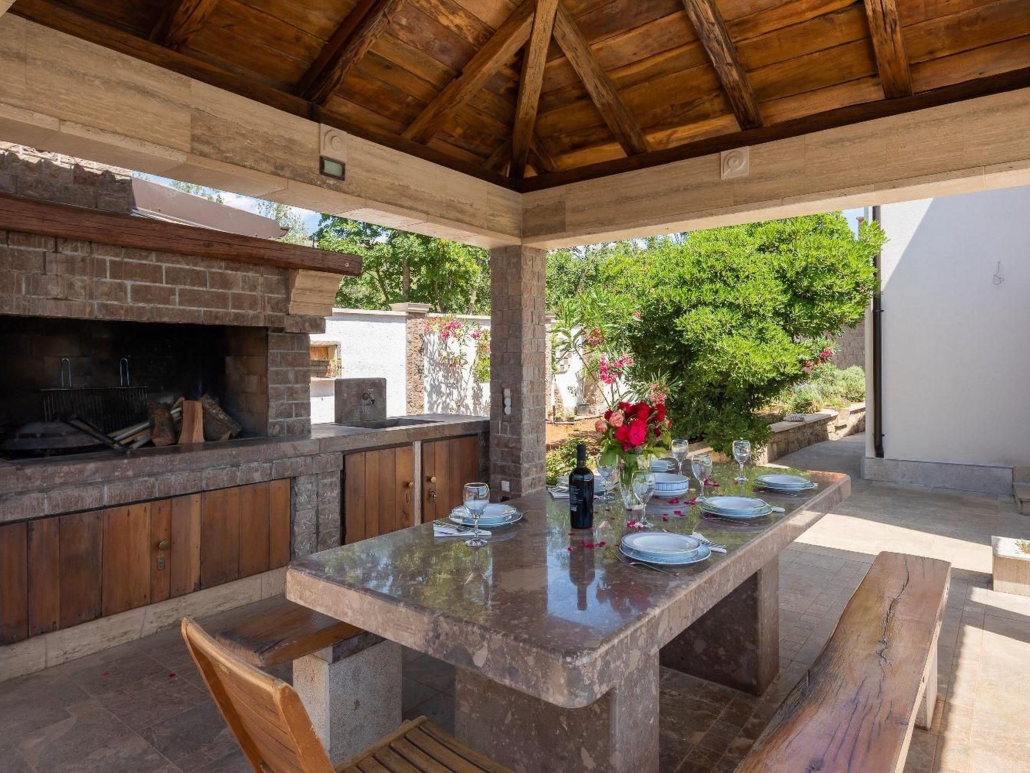 Der Essbereich im Freien ist etwas, worüber man reden kann. Das rustikale Design folgt dem echten mediterranen Gefühl und der Marmortisch setzt ein noch stärkeres Statement. Und das Steinhaus mit Kamin ist nur ein Sahnehäubchen. Darüber hinaus gibt es für das Kochen im Freien eine Außenküche.