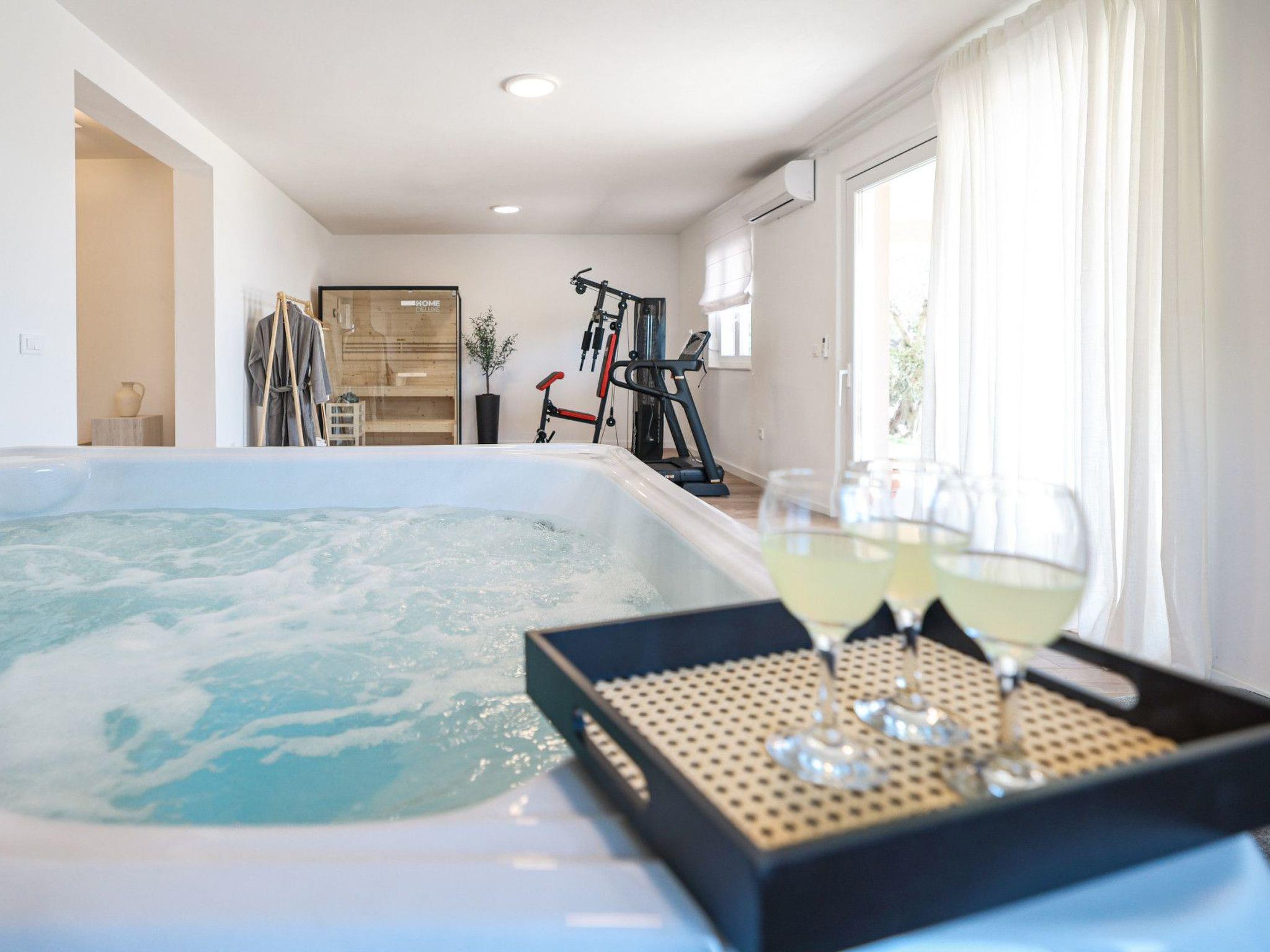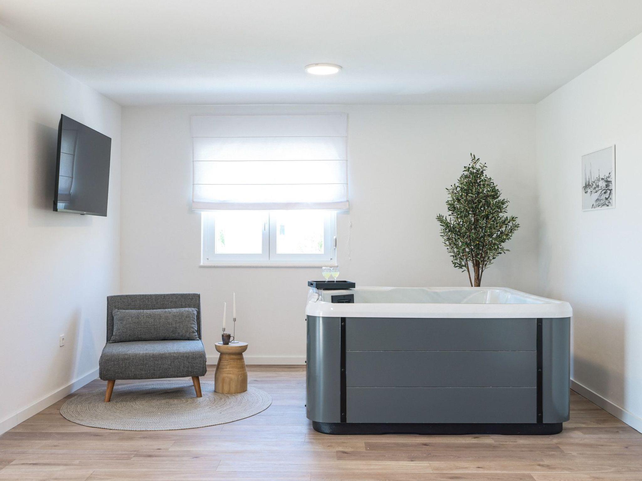 Das Äußere der Villa Grota ist ebenso einladend wie ihr Inneres. Ein privater Pool lädt zu entspannten Badetagen in der Sonne ein, und auf der Terrasse kann man sich entspannen oder im Freien speisen. Der Balkon ist ein weiterer Ort der Entspannung, von dem aus man einen Blick auf die Umgebung werfen kann. Die Villa befindet sich in ihrem eigenen Garten, der eine abgeschiedene und ruhige Umgebung bietet, in der man wirklich abschalten und sich inmitten der Natur erholen kann.