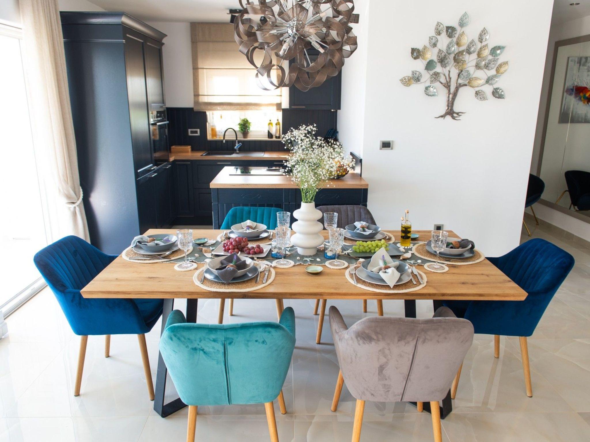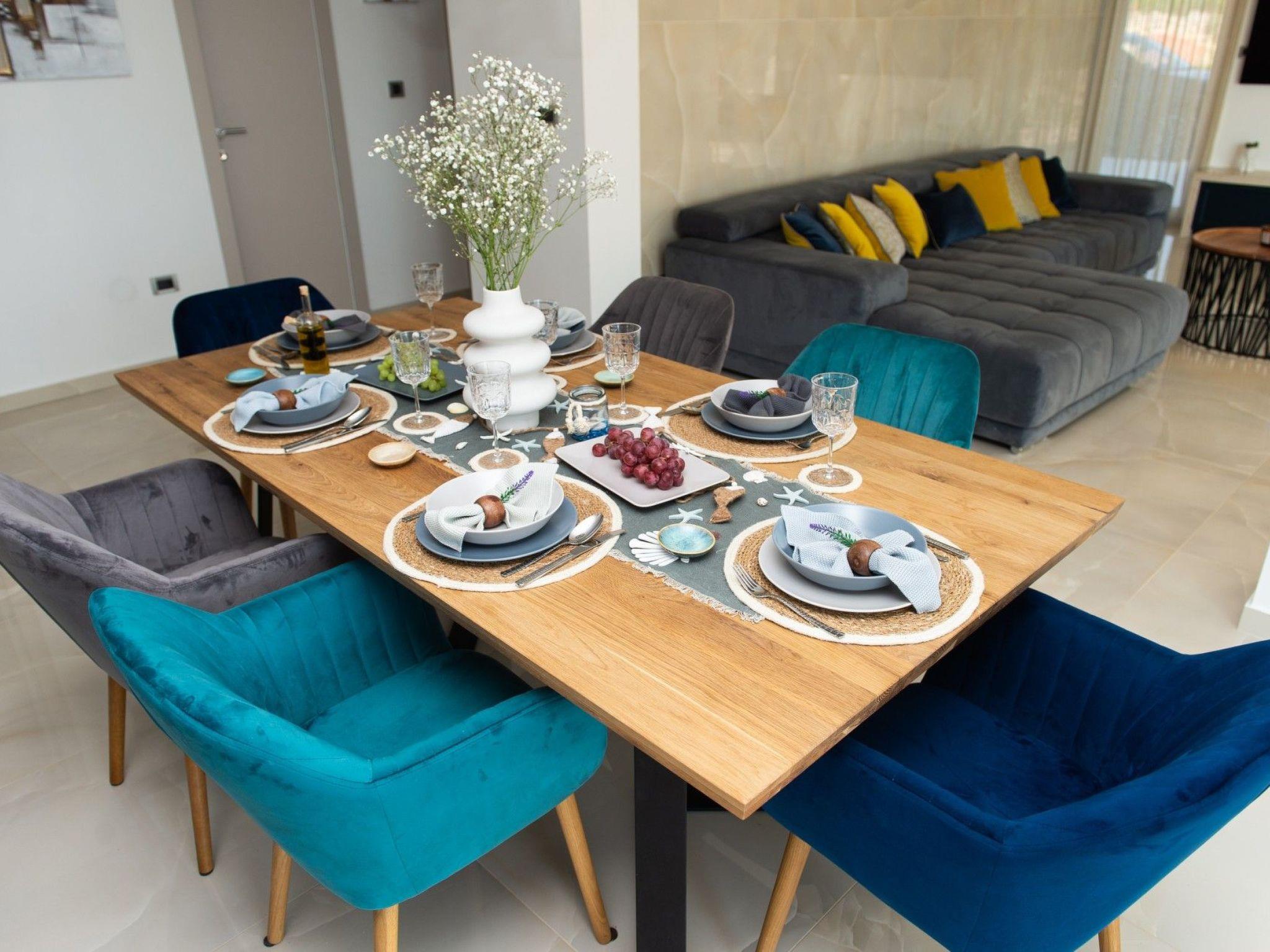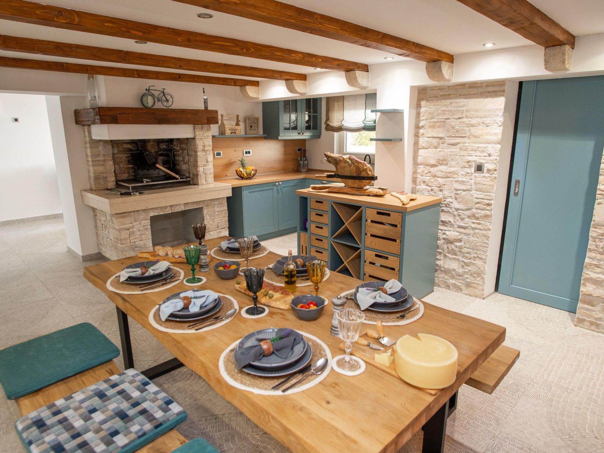 Das Innere der Villa Anka ist komfortabel und gemütlich eingerichtet. Jedes der vier Doppelschlafzimmer ist mit einem eigenen Bad ausgestattet und bietet allen Gästen Privatsphäre und Komfort. Ein Babybett und drei Zusatzbetten machen die Villa auch für größere Familien oder Gruppen geeignet. Für alle, die gerne kochen, ist die Küche komplett mit modernen Geräten ausgestattet, darunter ein Geschirrspüler, eine Kaffeemaschine, ein Wasserkocher und alle notwendigen Utensilien für die Zubereitung einer köstlichen Mahlzeit. Zusammen mit dem angrenzenden Esszimmer ist dies der perfekte Ort für gesellige Zusammenkünfte.