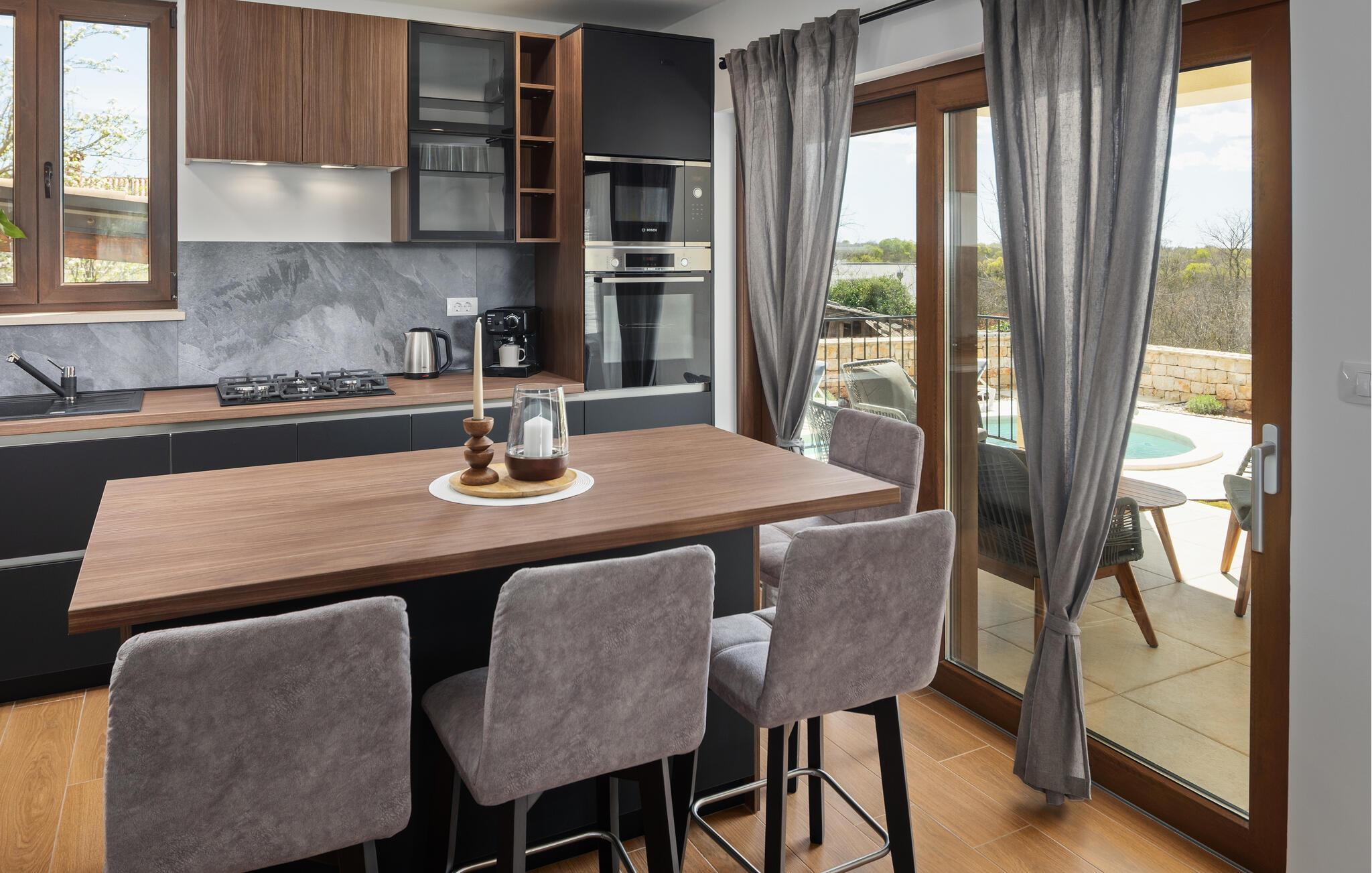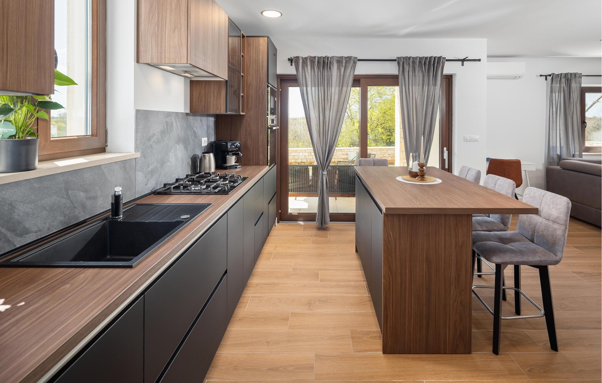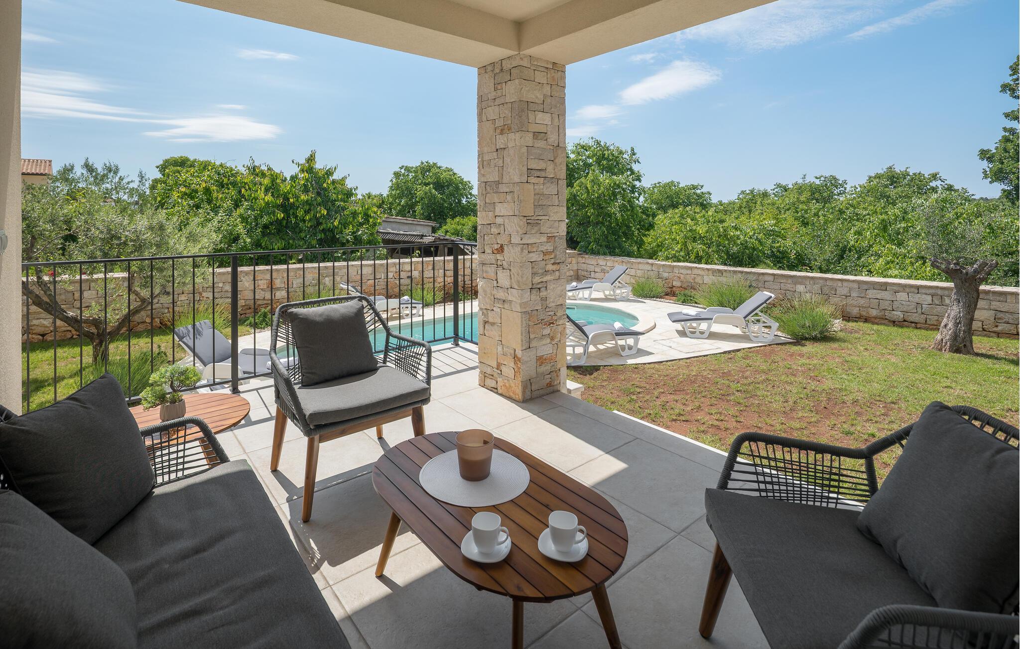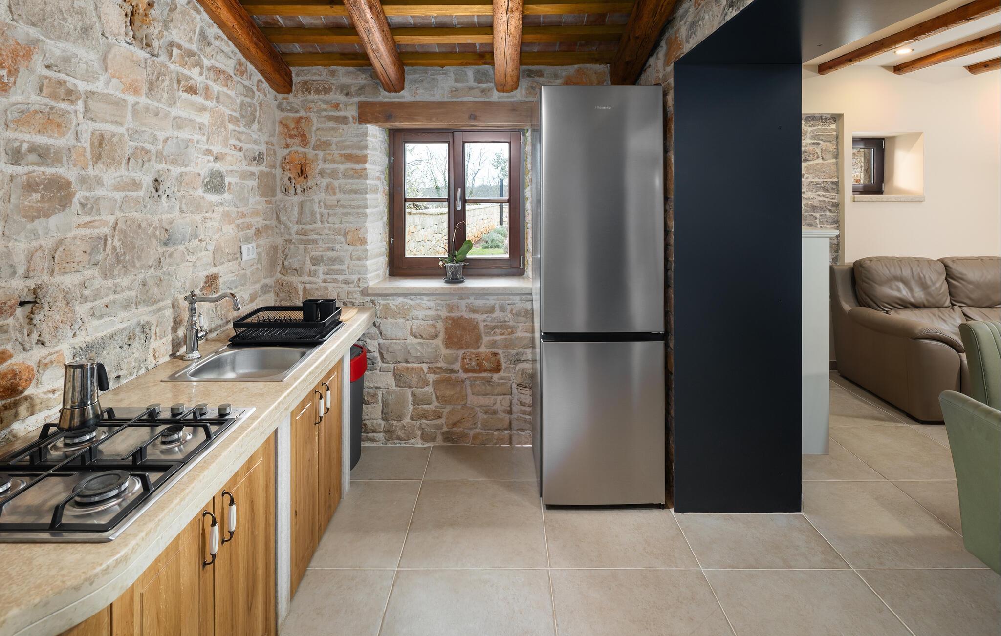 Dieses große Ferienhaus besticht durch seinen rustikalen Stil mit gemauerten Steinwänden und einer charmanten Küche mit offenem Grillofen. Die komfortable Einrichtung sorgt dafür, dass Sie und Ihre Familie sich hier sofort wohlfühlen. Im Außenbereich laden zwei überdachte Terrassen dazu ein, die Zeit im Schatten zu genießen, während der private Pool für Erfrischung sorgt. Ob gemeinsames Grillen, entspannte Stunden auf der Terrasse oder ein Sprung ins kühle Nass – hier können Sie die Seele baumeln lassen.
